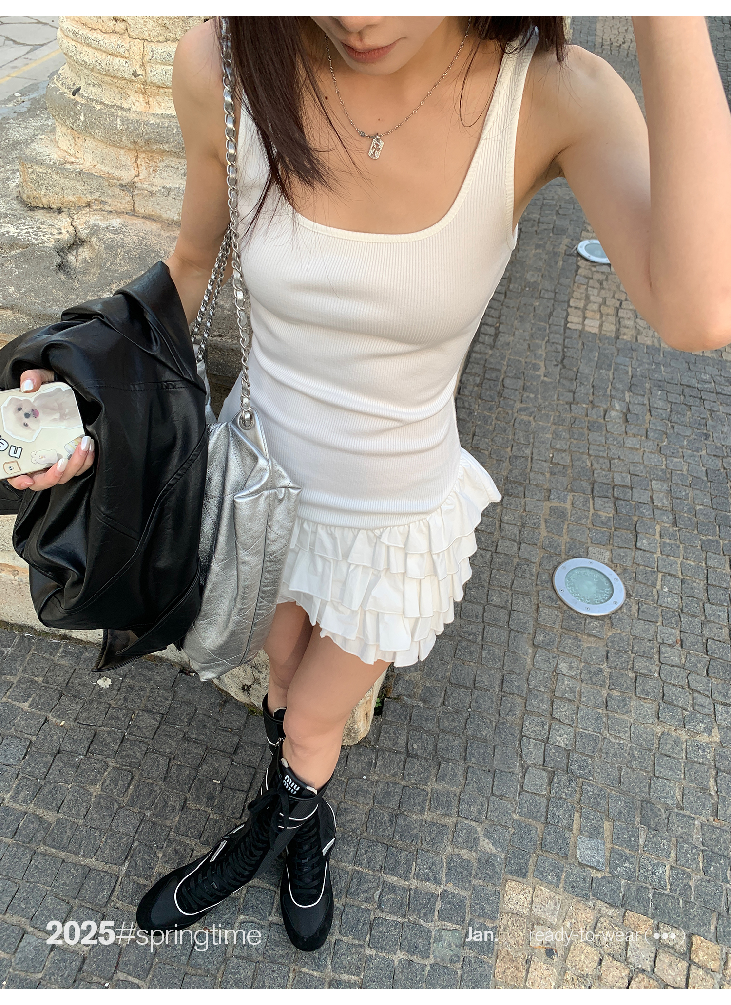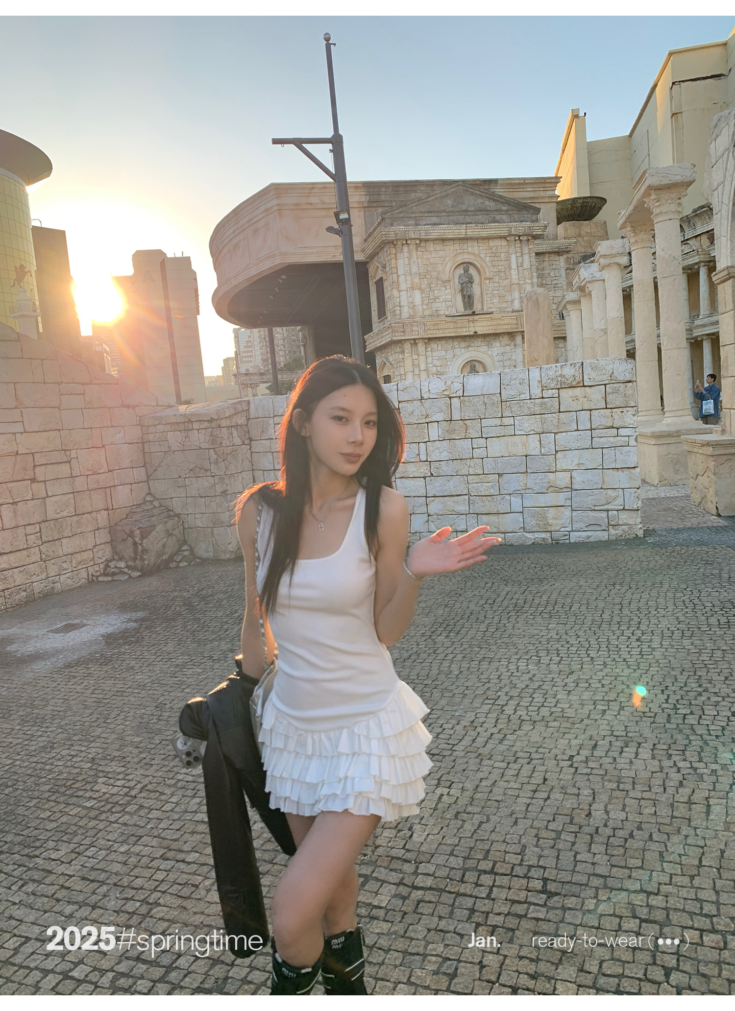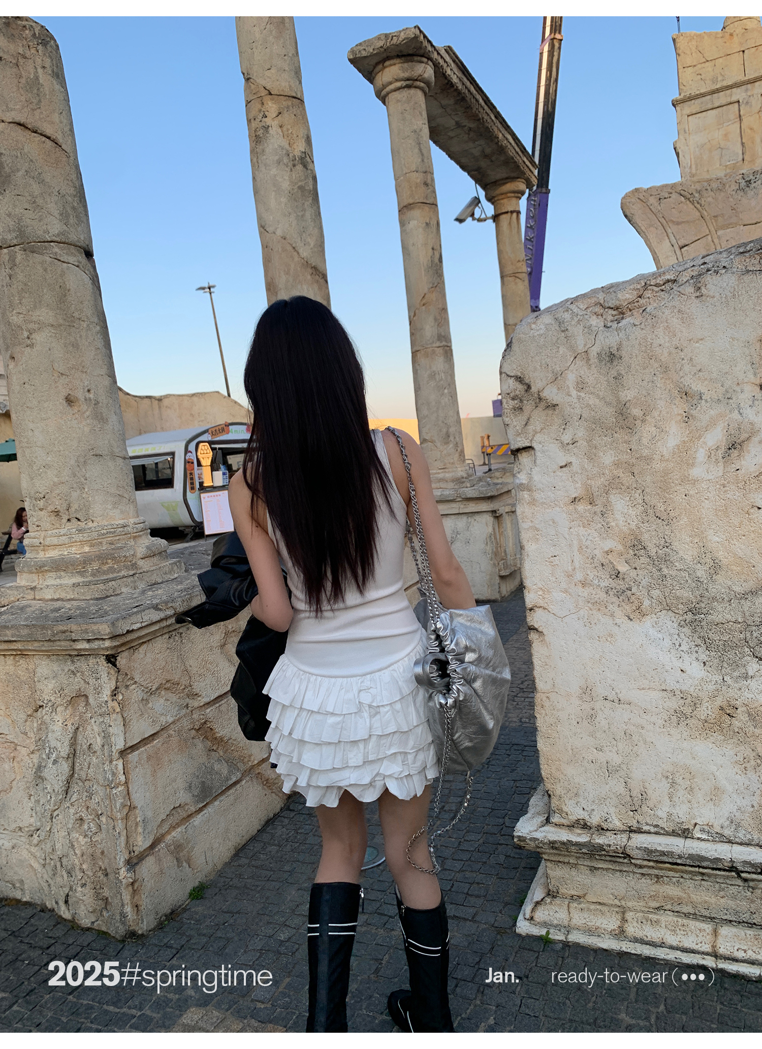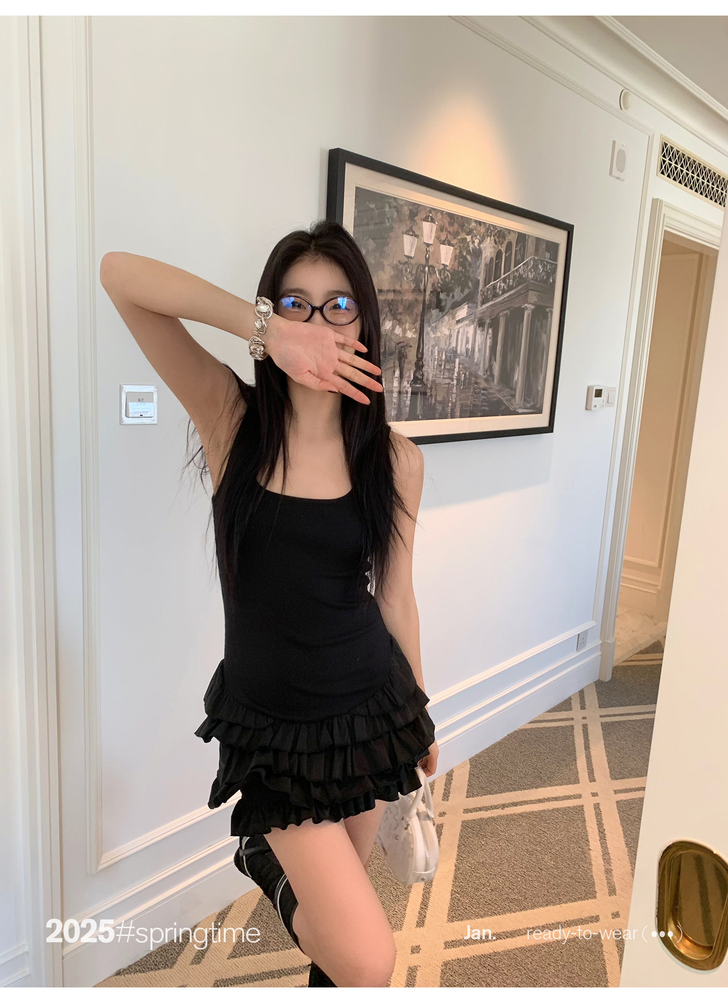Sunoneone White Spicy Girl Dress Women's Summer New Slim-Fit Tiered Dress Waist-Cinching Spaghetti Strap Short Dress