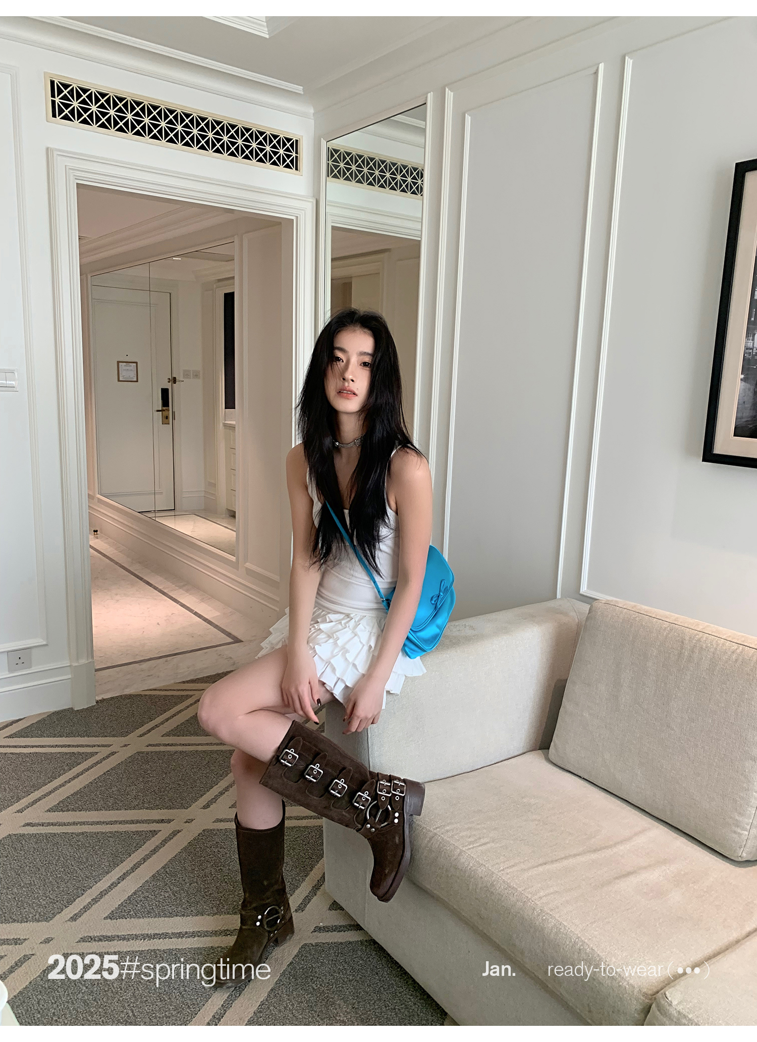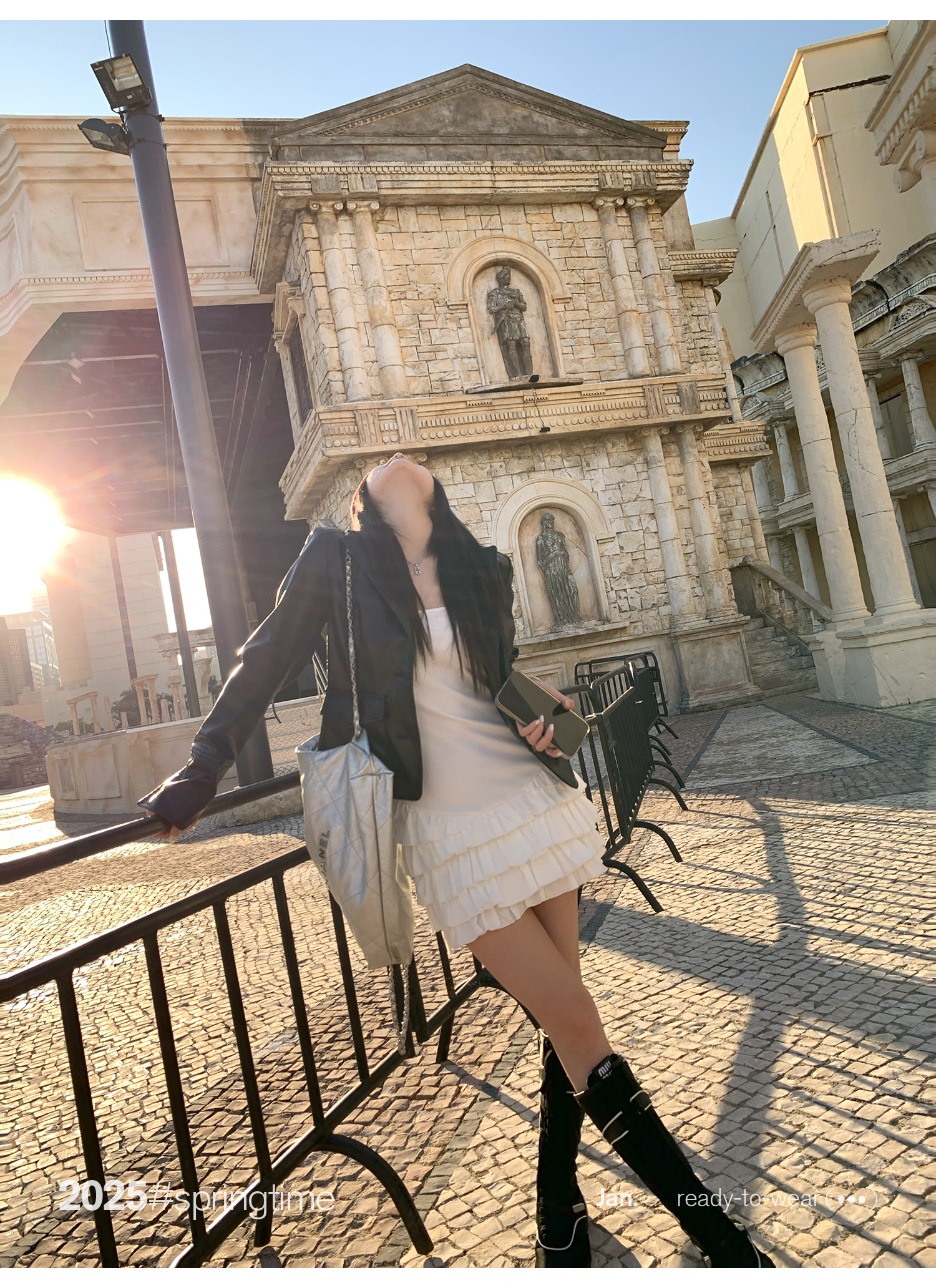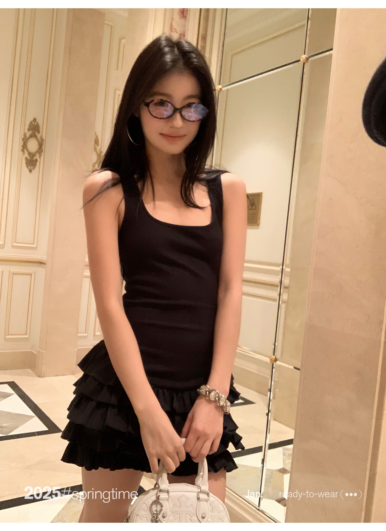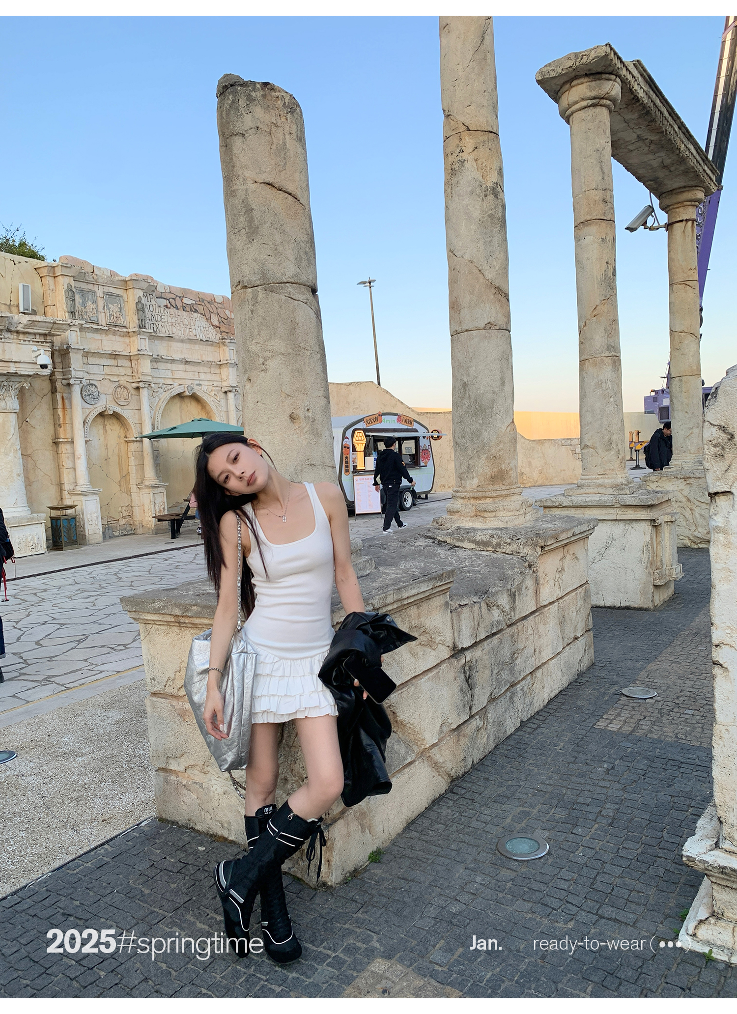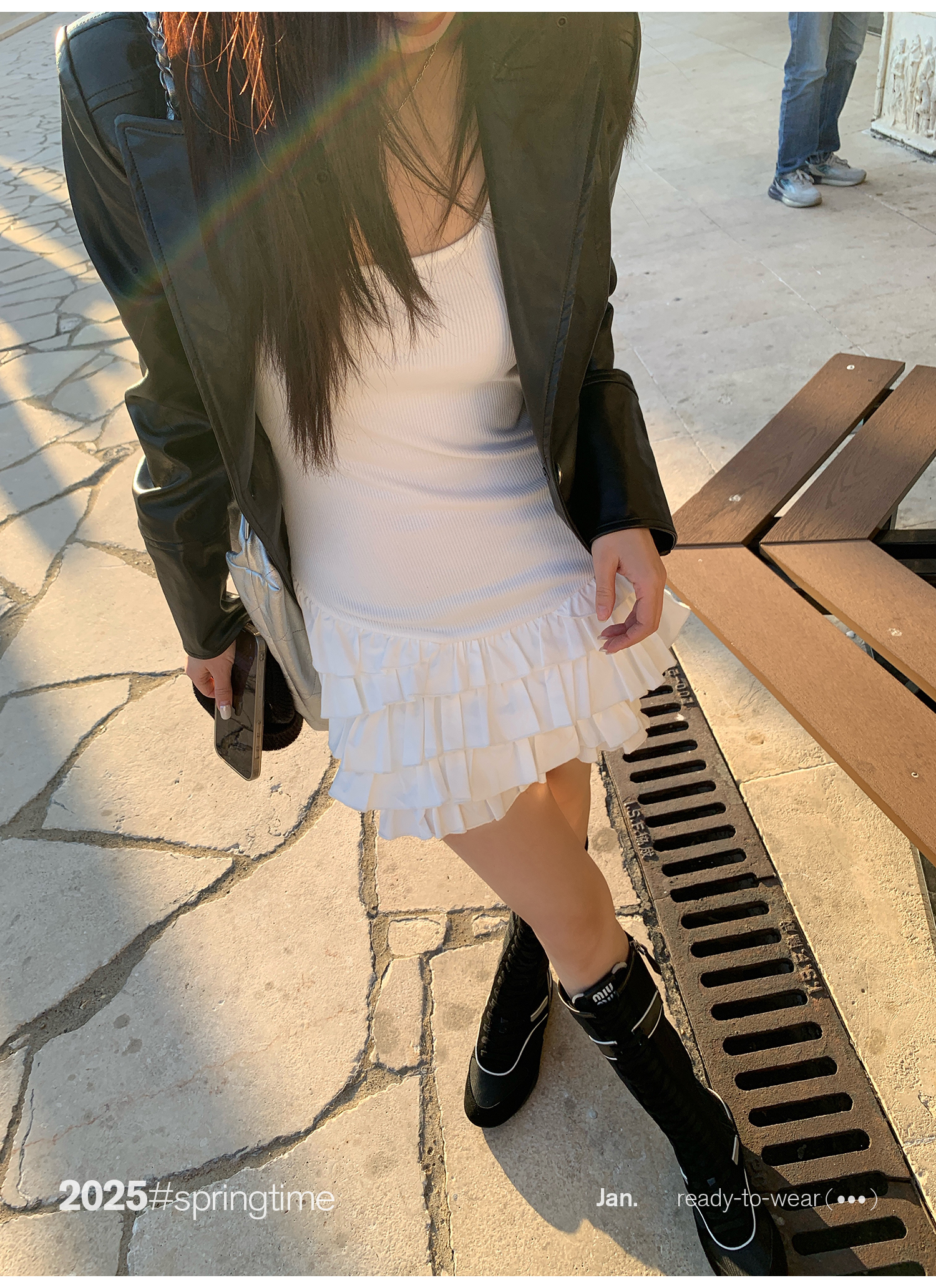 Sunoneone White Spicy Girl Dress Women's Summer New Slim-Fit Tiered Dress Waist-Cinching Spaghetti Strap Short Dress