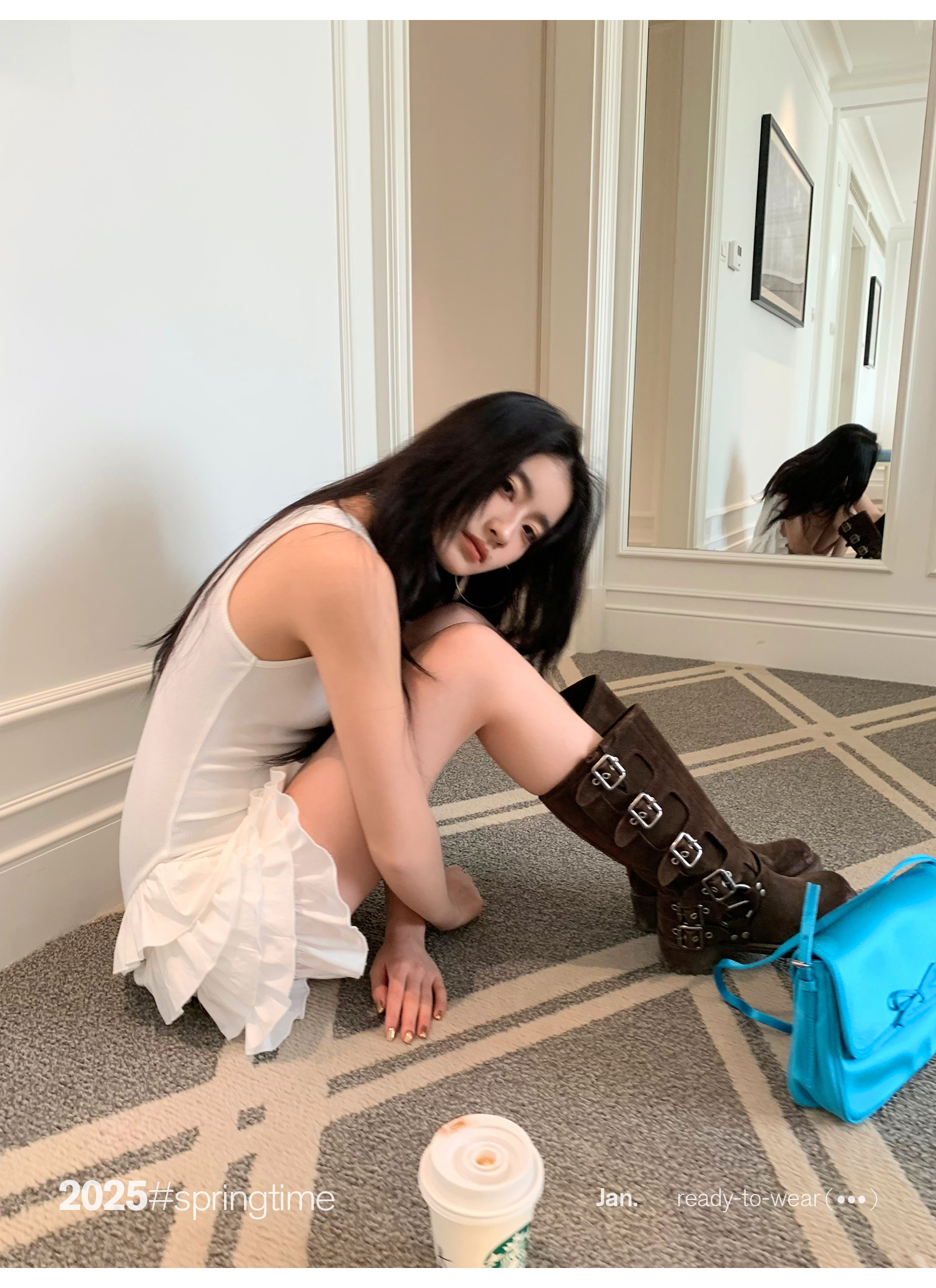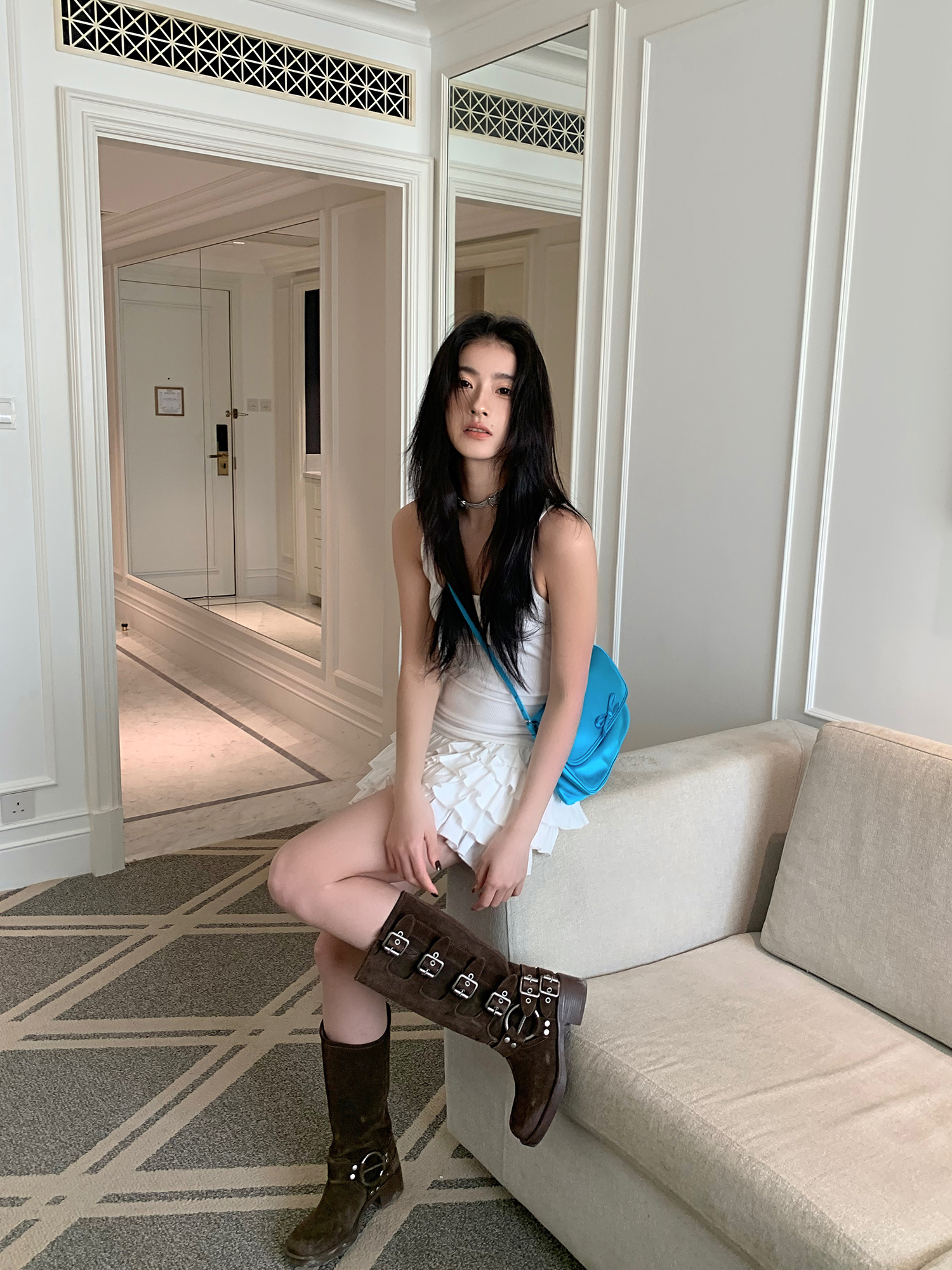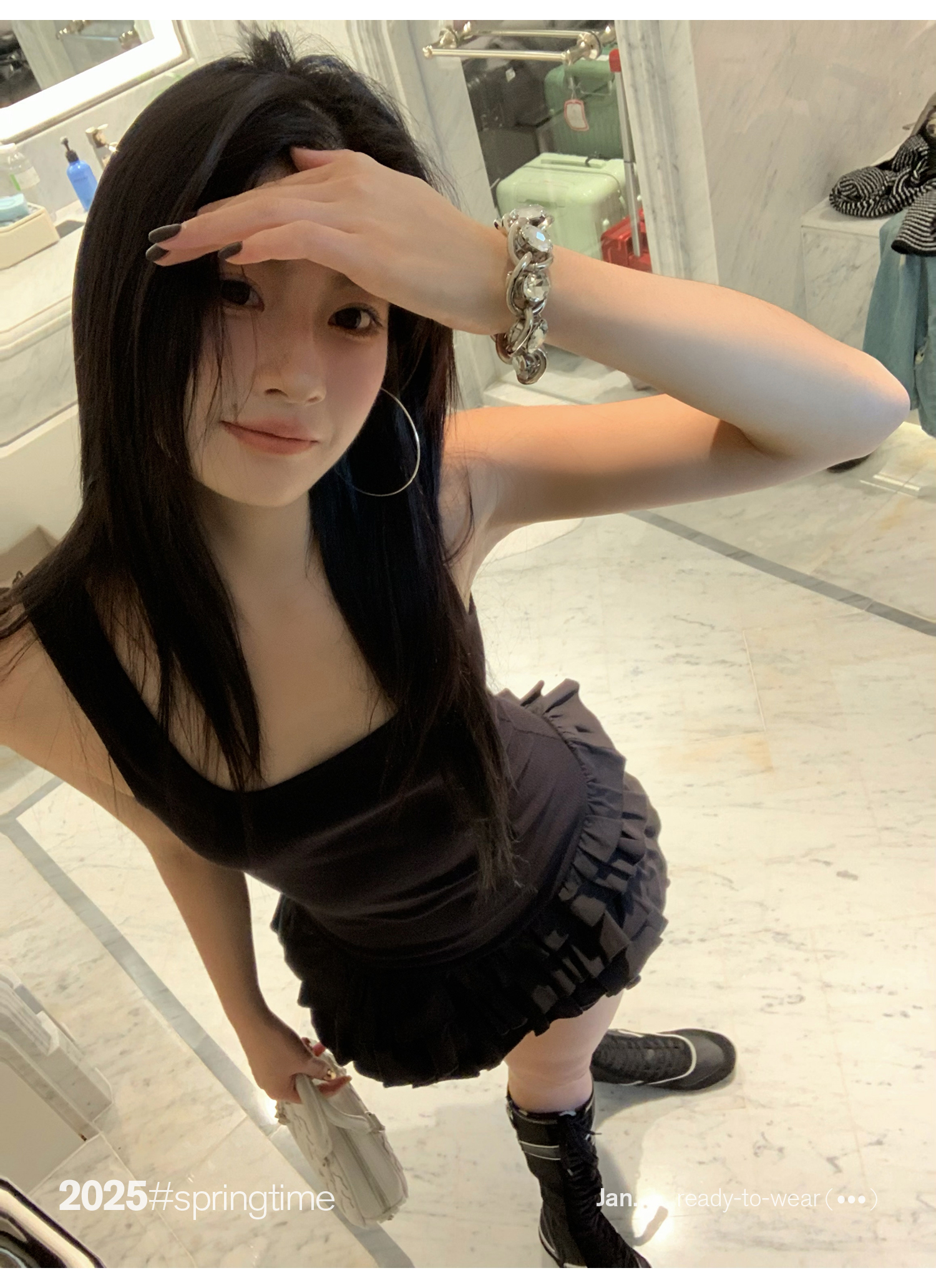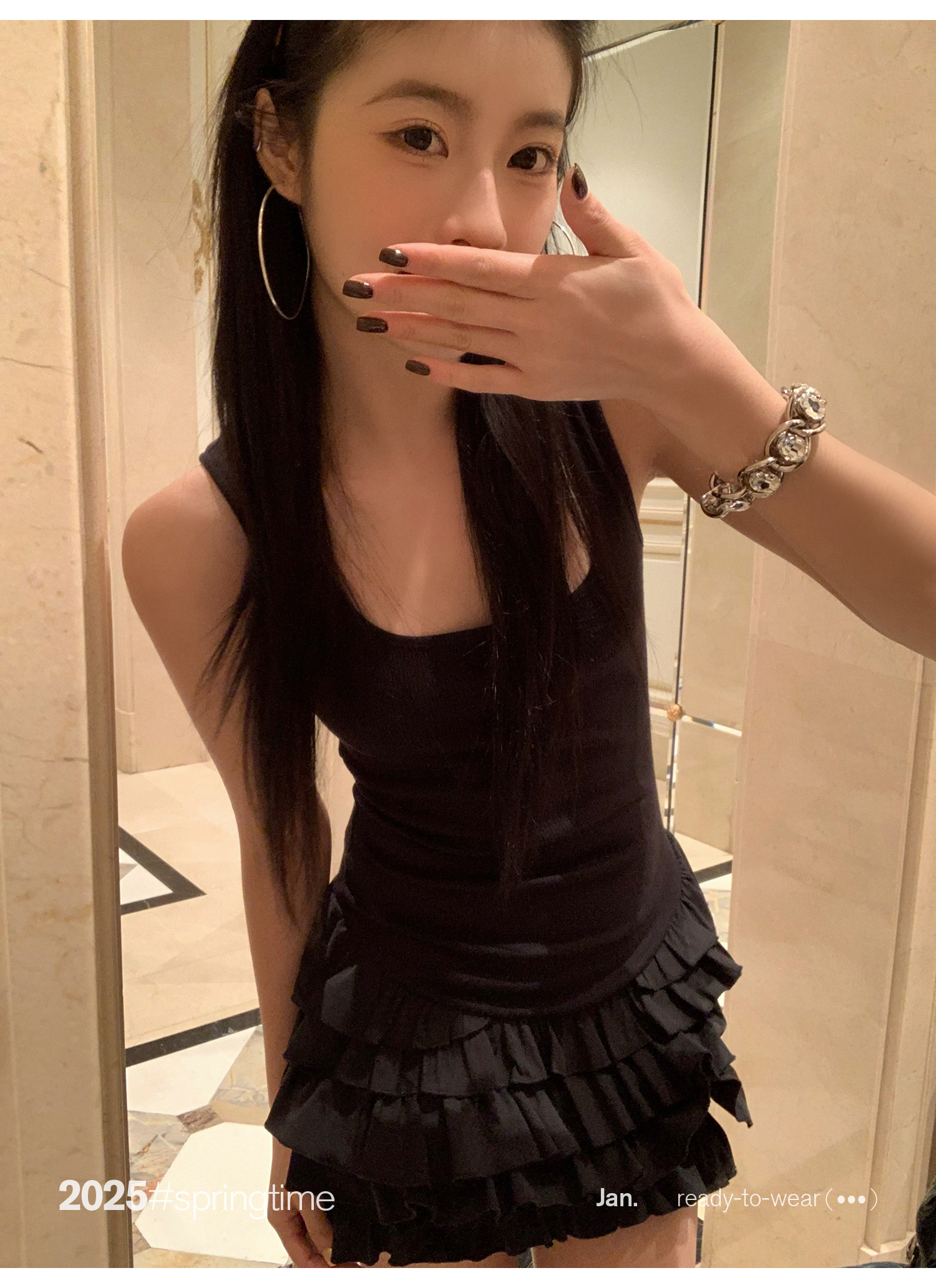 Sunoneone White Spicy Girl Dress Women's Summer New Slim-Fit Tiered Dress Waist-Cinching Spaghetti Strap Short Dress