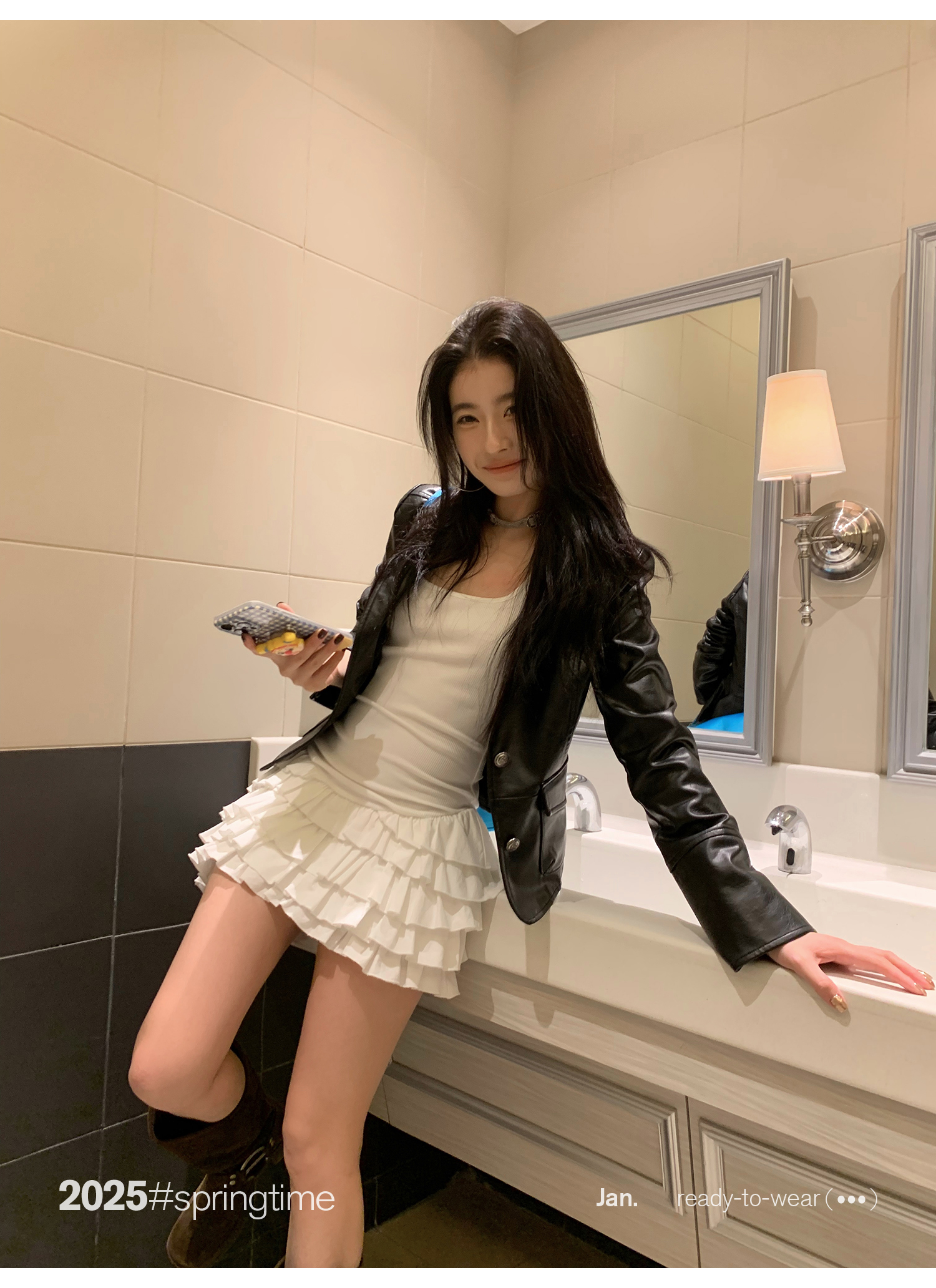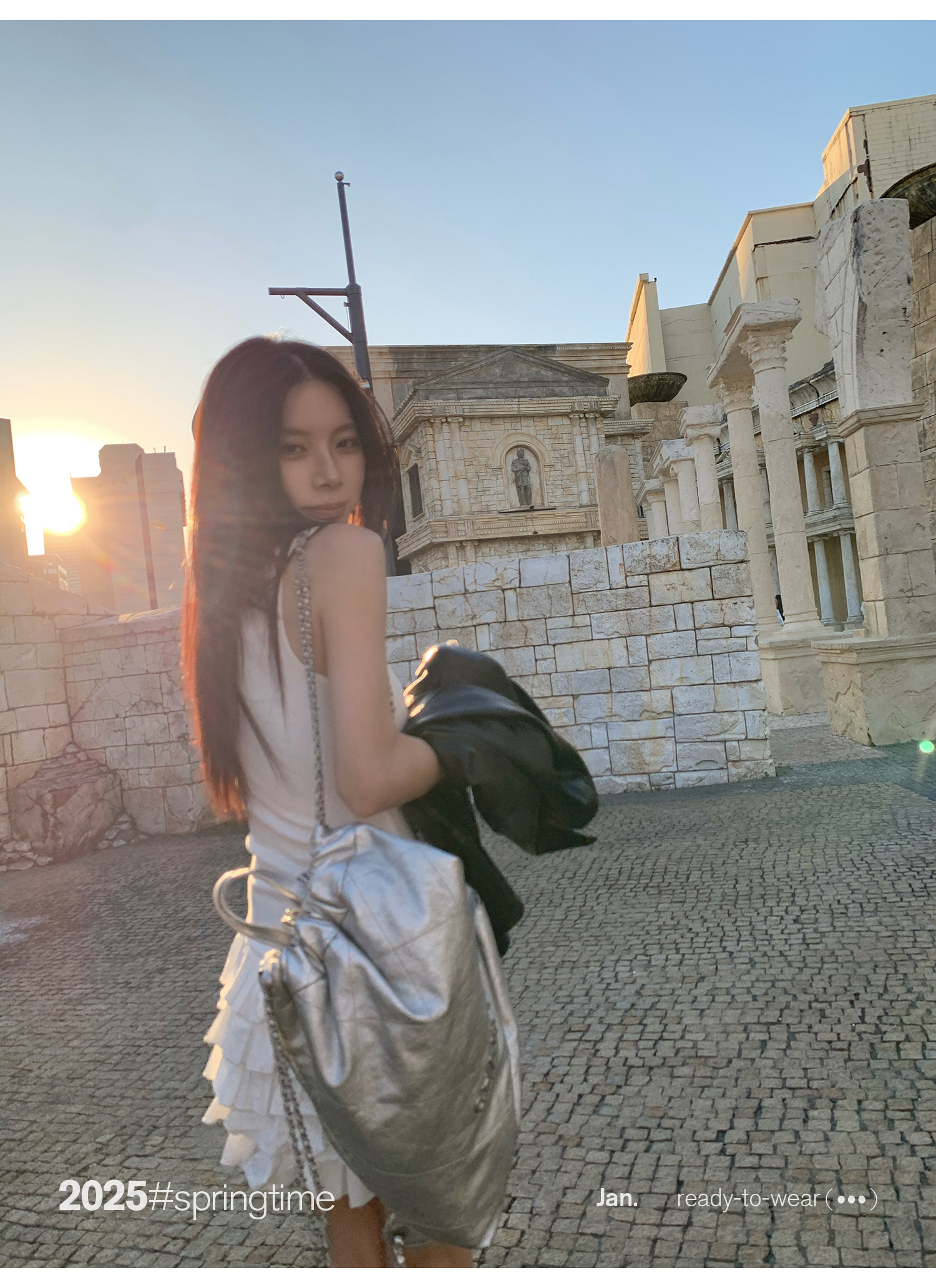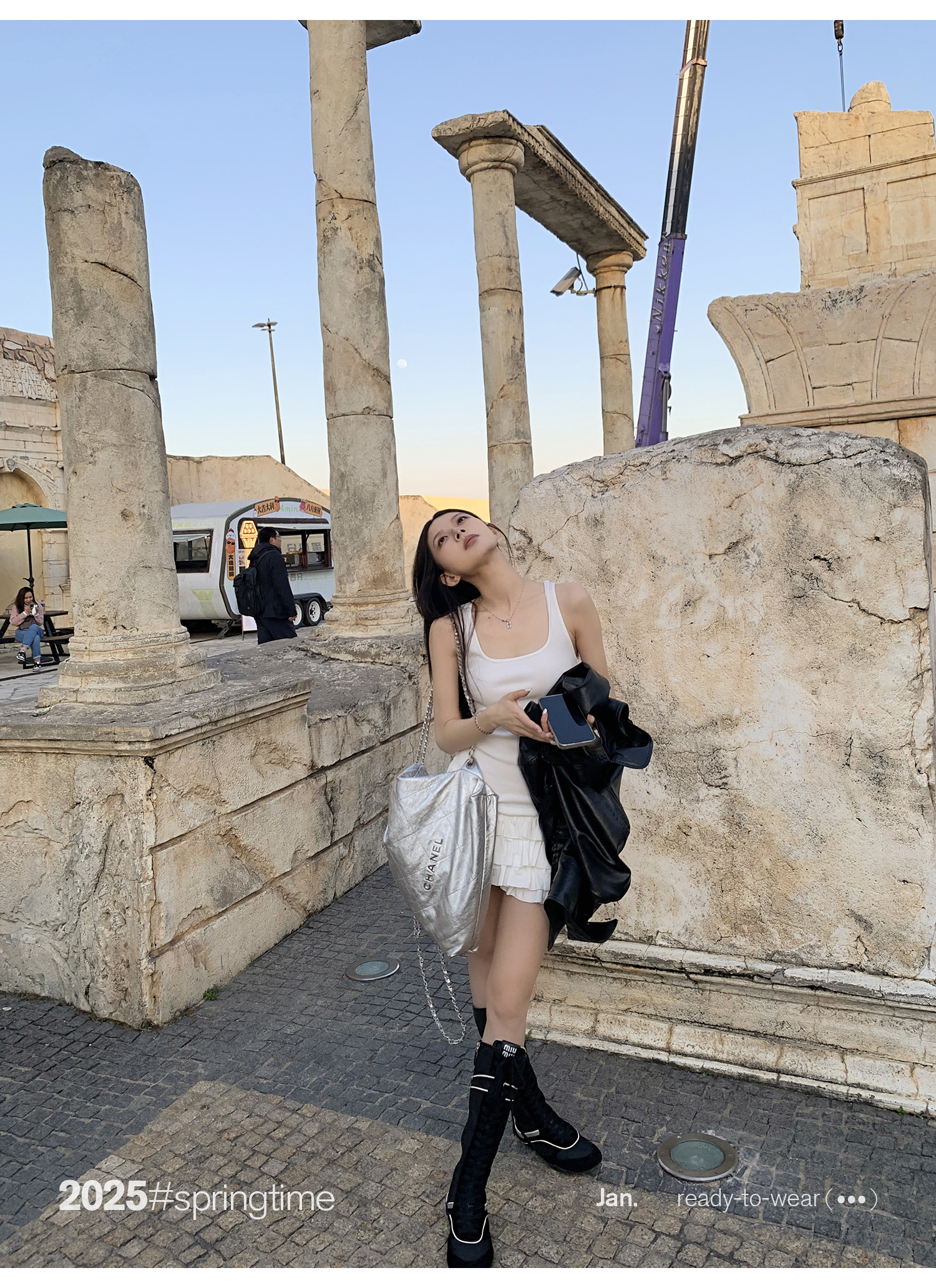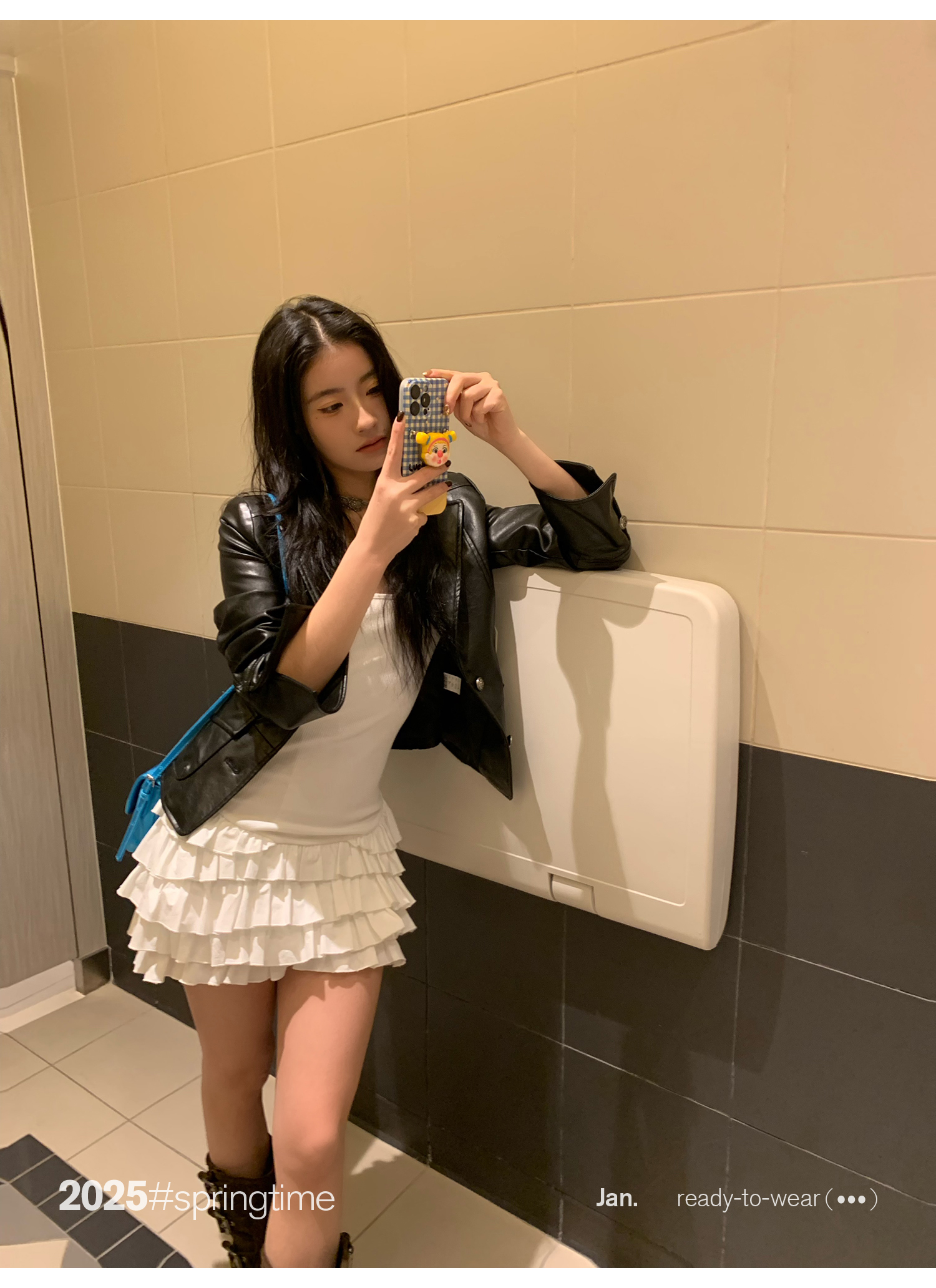 Sunoneone White Spicy Girl Dress Women's Summer New Slim-Fit Tiered Dress Waist-Cinching Spaghetti Strap Short Dress