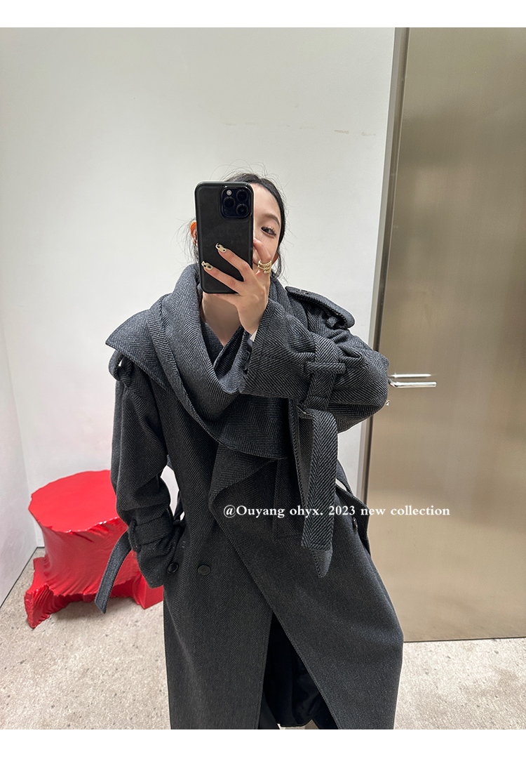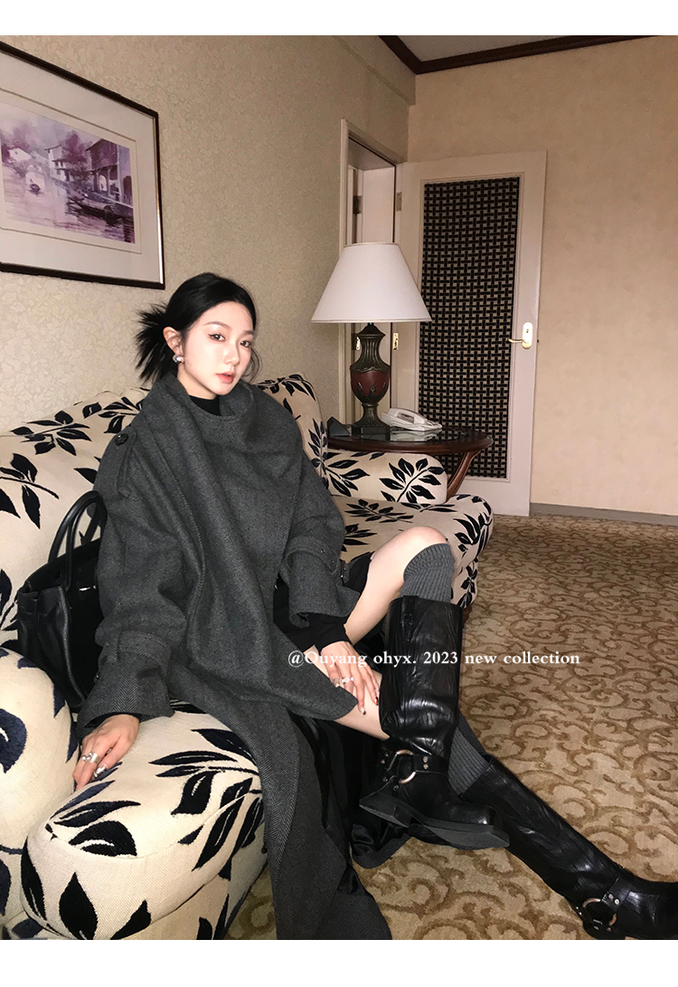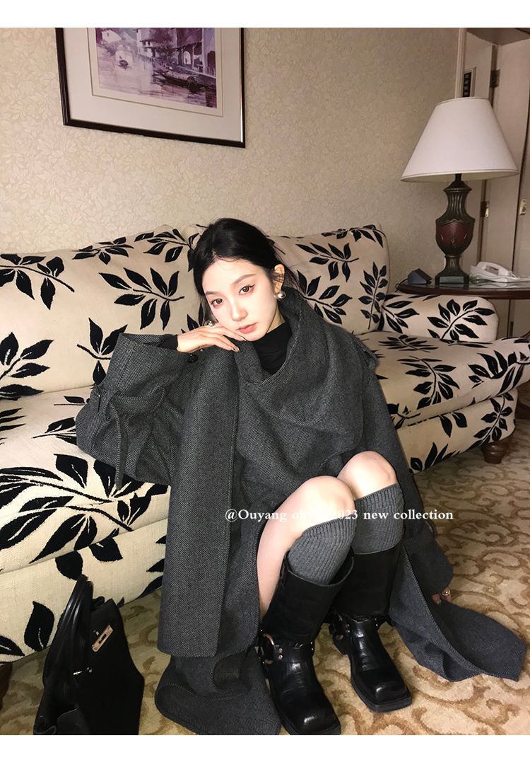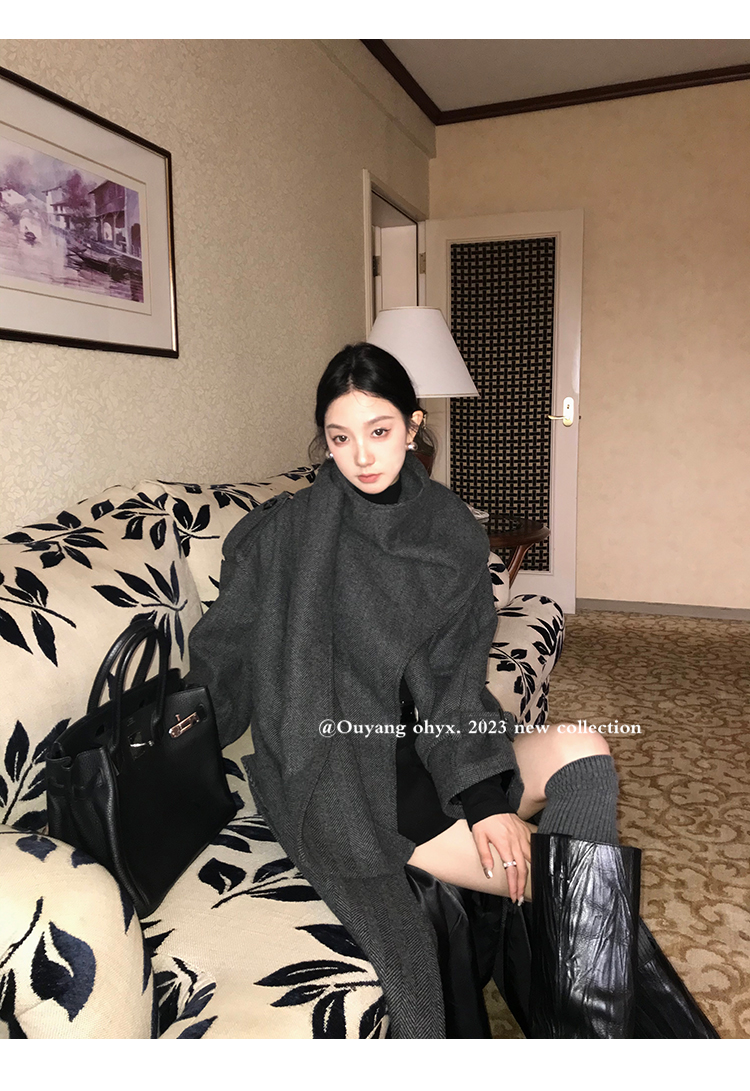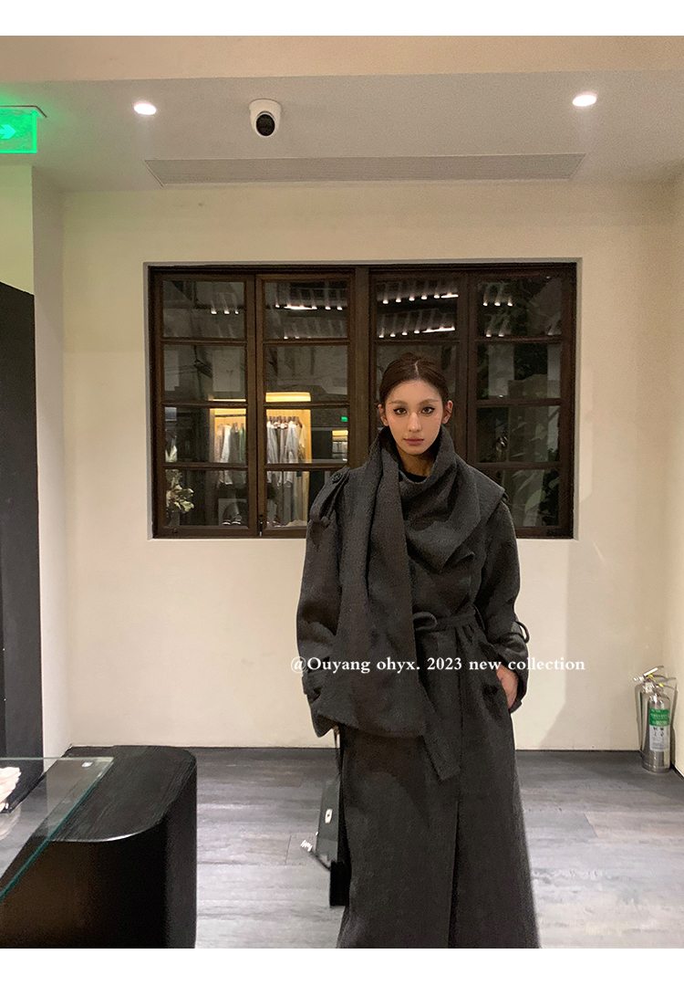 时髦剪裁大披肩围脖门襟注入玩味