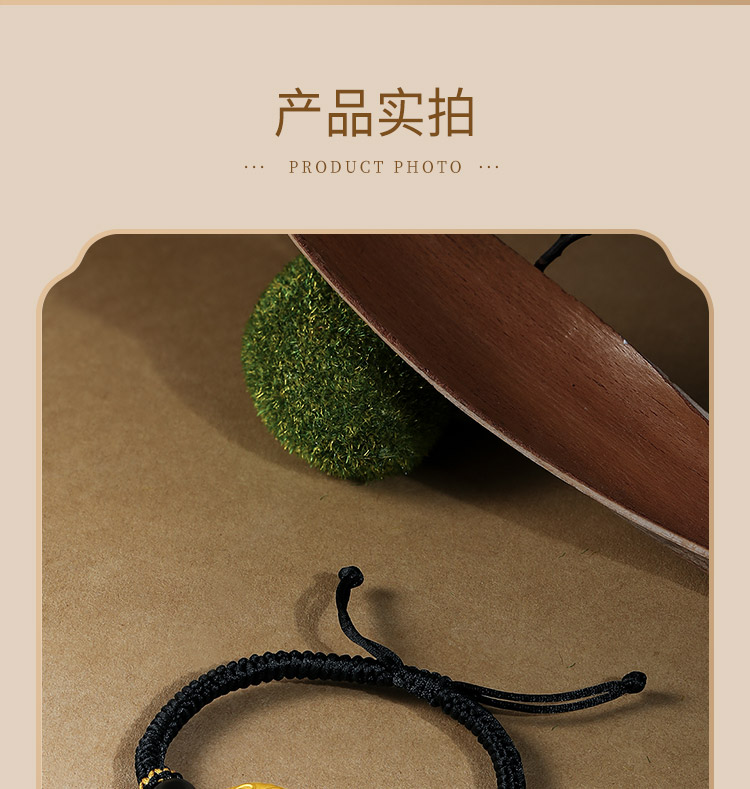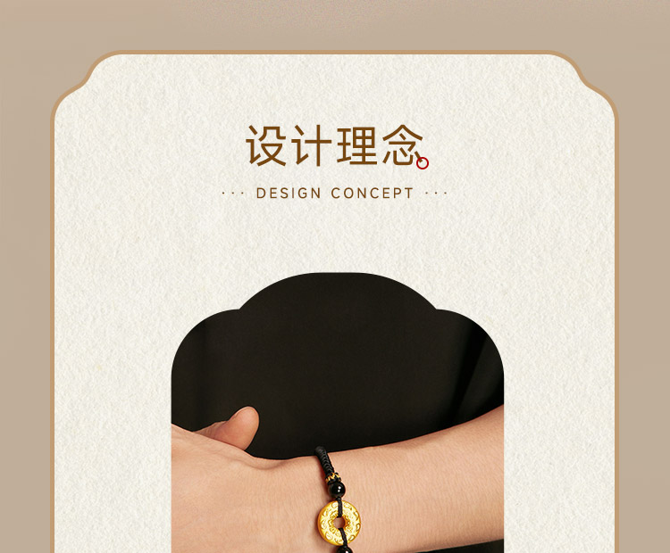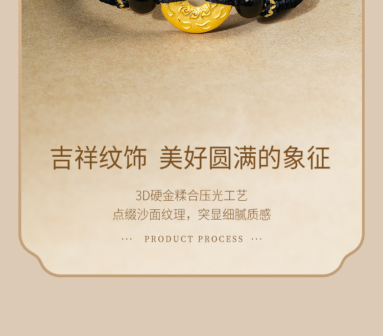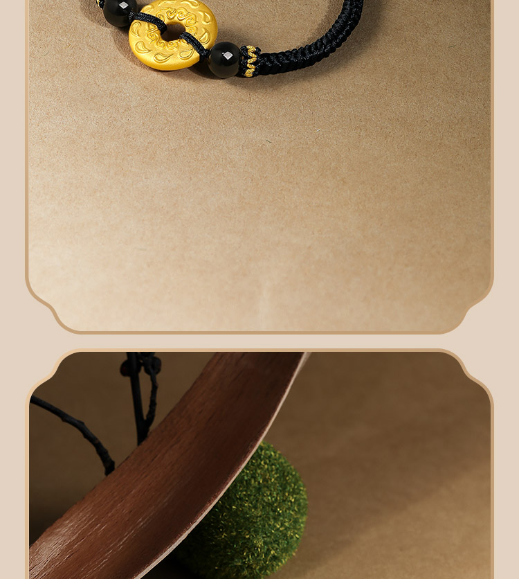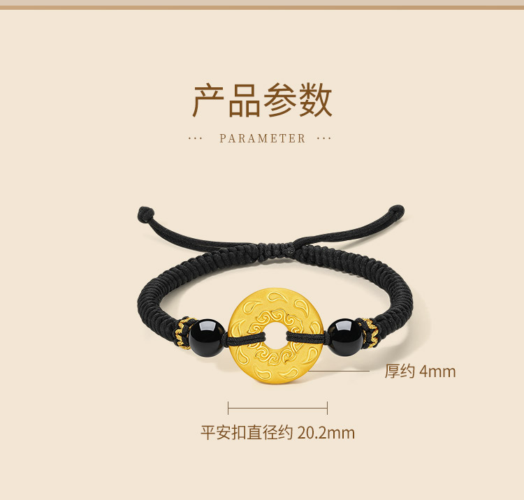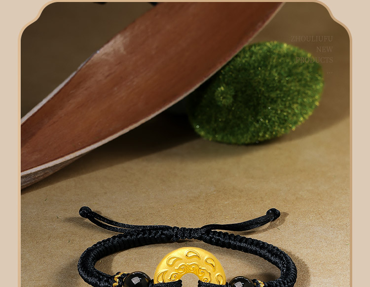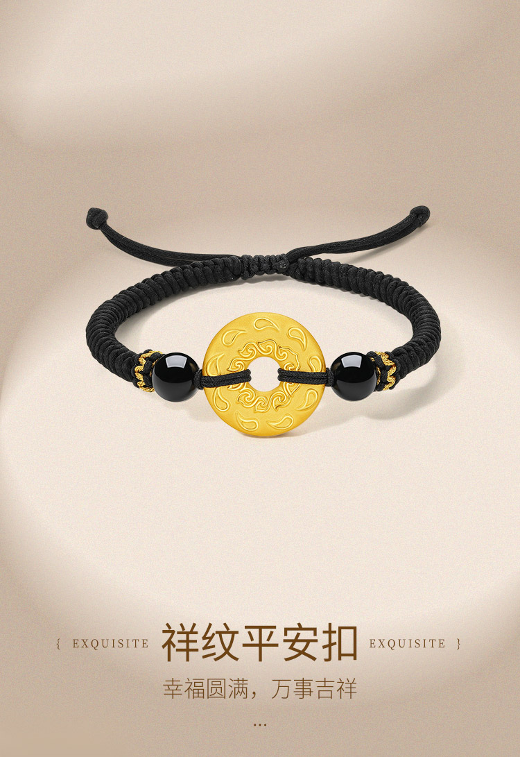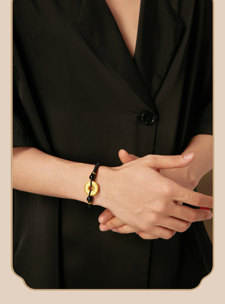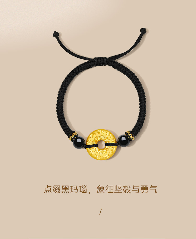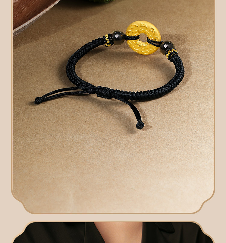 Saturday Fortune Gold Bracelet for Men, Pure Gold with Cloud Pattern, Peace Pendant, Black Agate Braided Cord, Official Gift