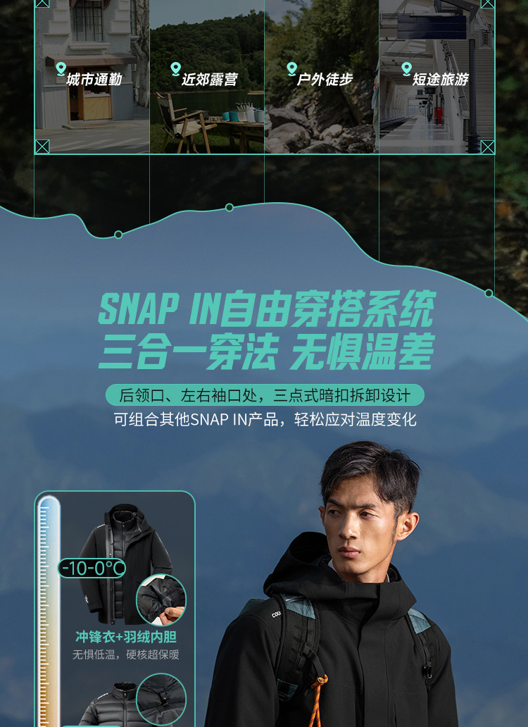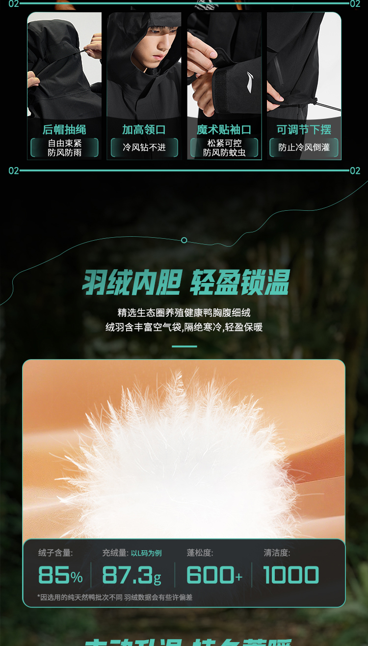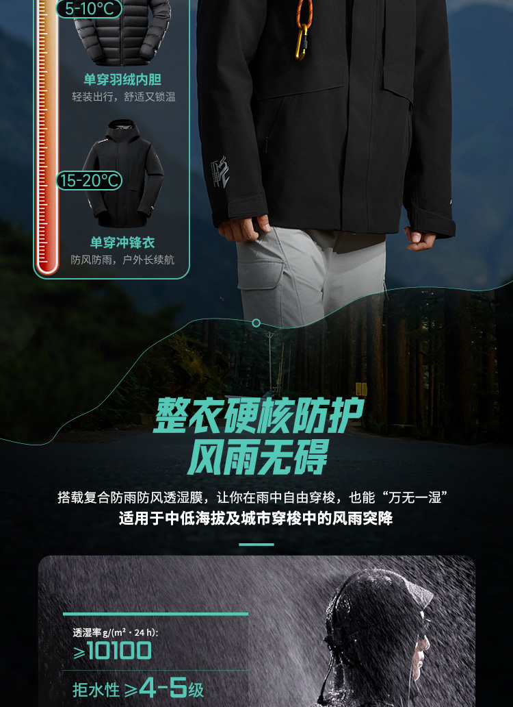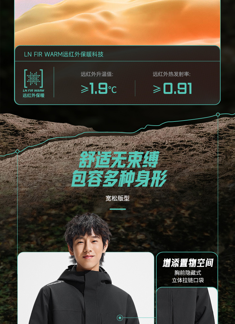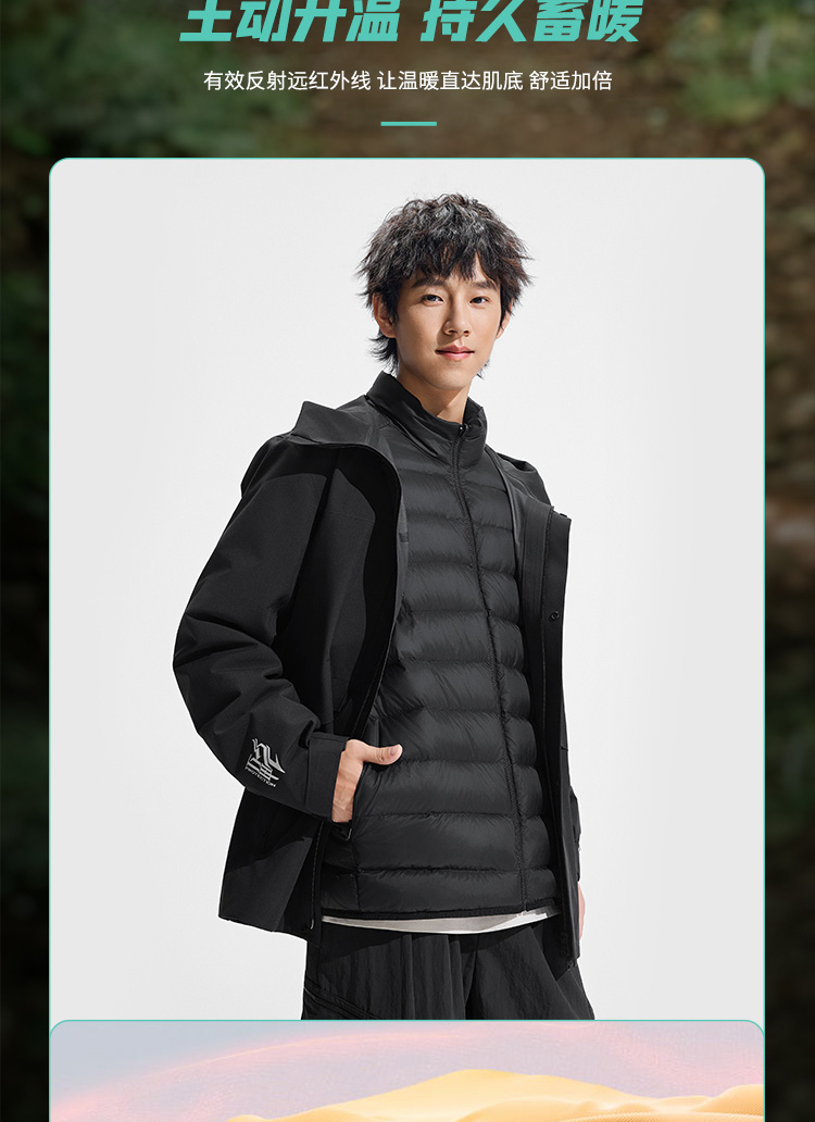 Li-Ning Outdoor Cf | Wanlong Jia 3-in-1 Jacket with down Liner for Men, Autumn and Winter Windproof and Warm Coat