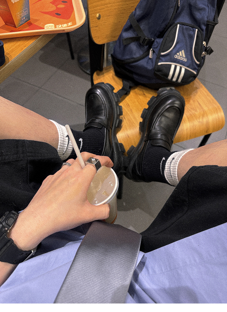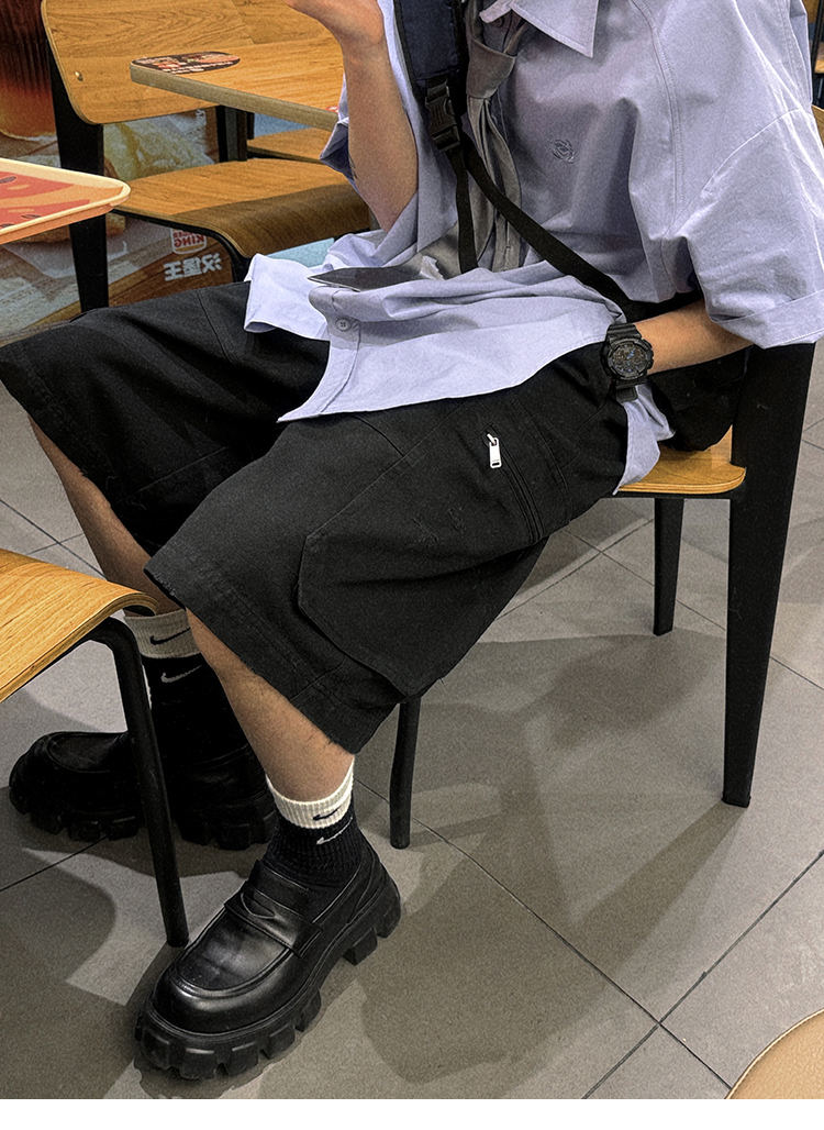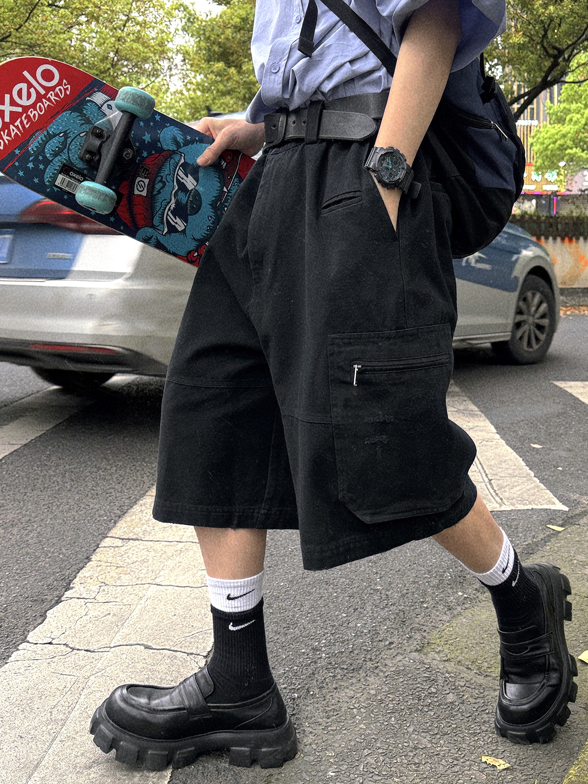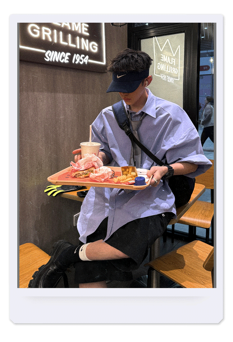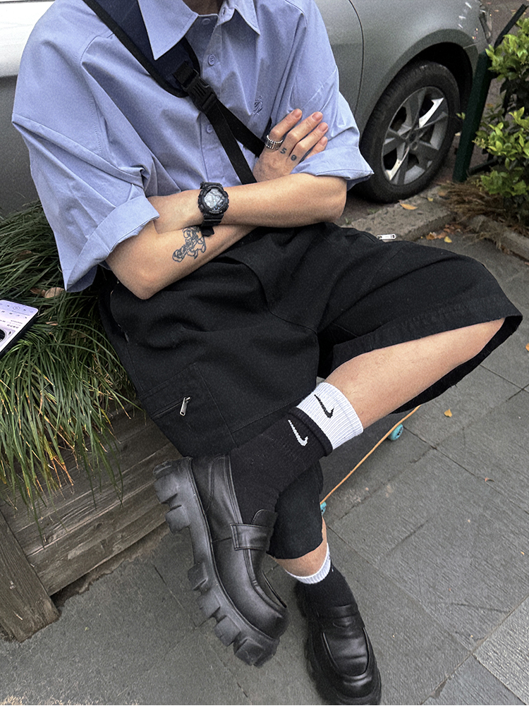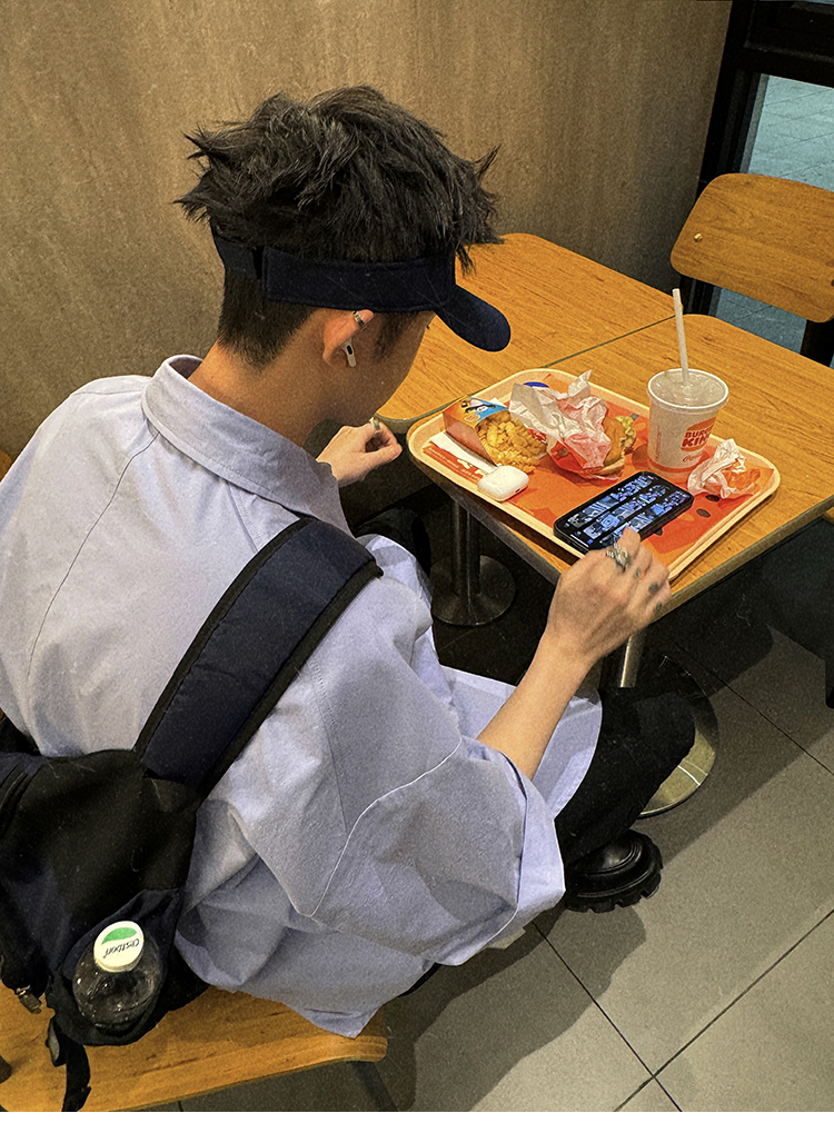 Aurocean Wide-Shoulder Oversized Shirt, Loose and Youthful, Retro College-Style Embroidered Light Blue Pure Cotton Short-Sleeve