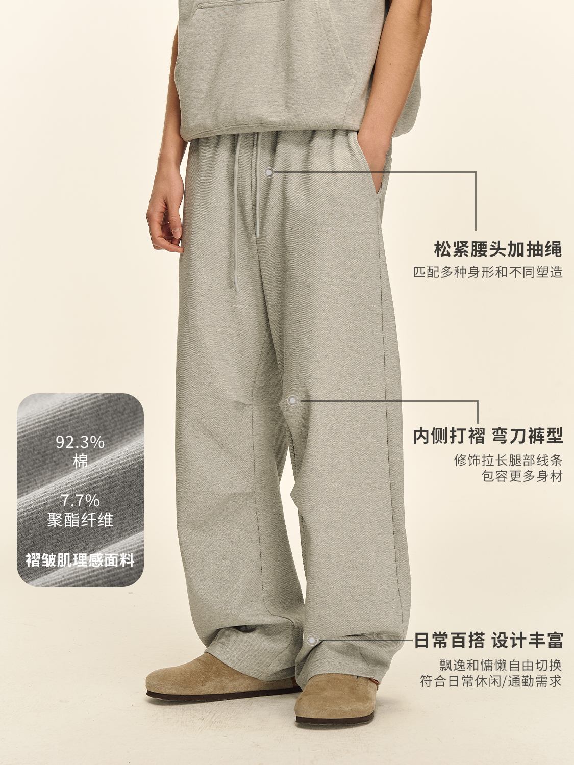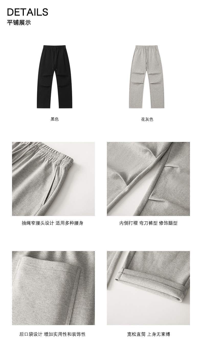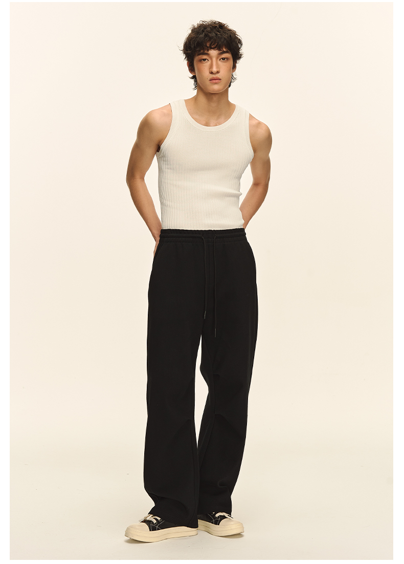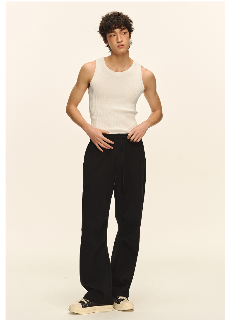Climax Vision Heavyweight Textured Pleated Curved Knife-Cut Sweatpants, Loose and Versatile Straight-Leg Pants