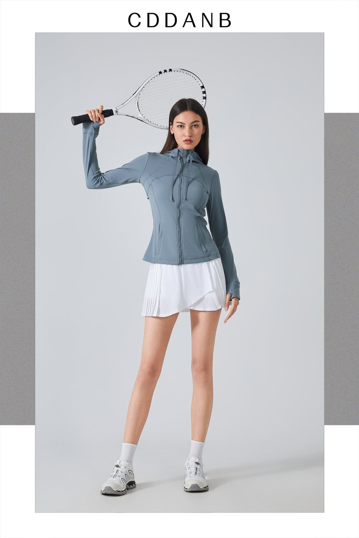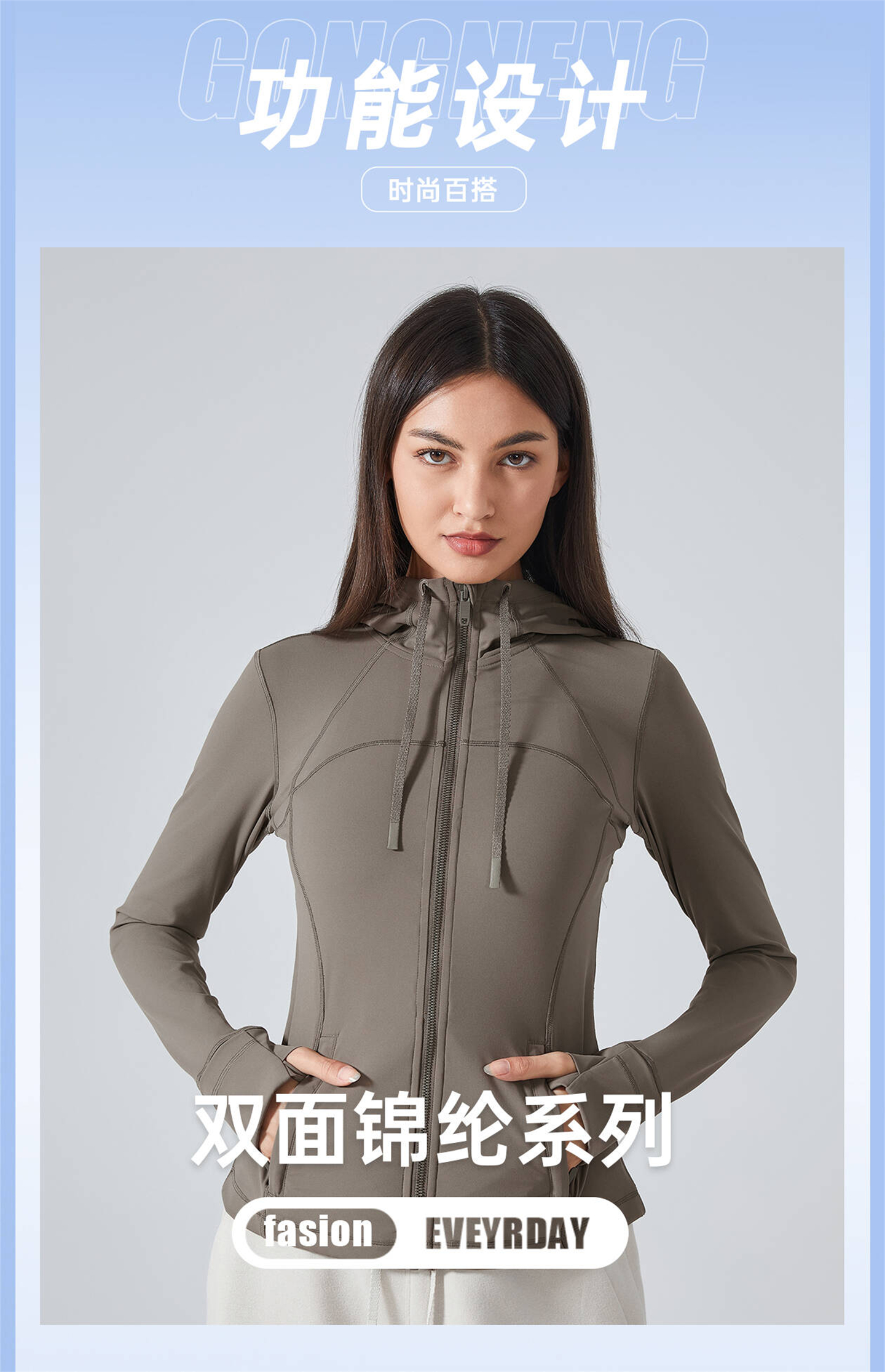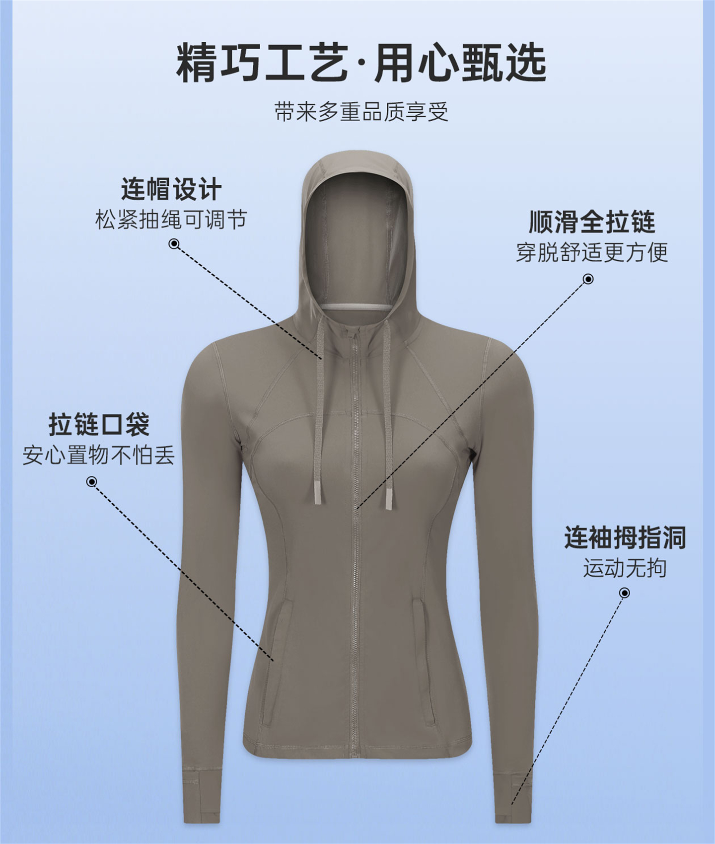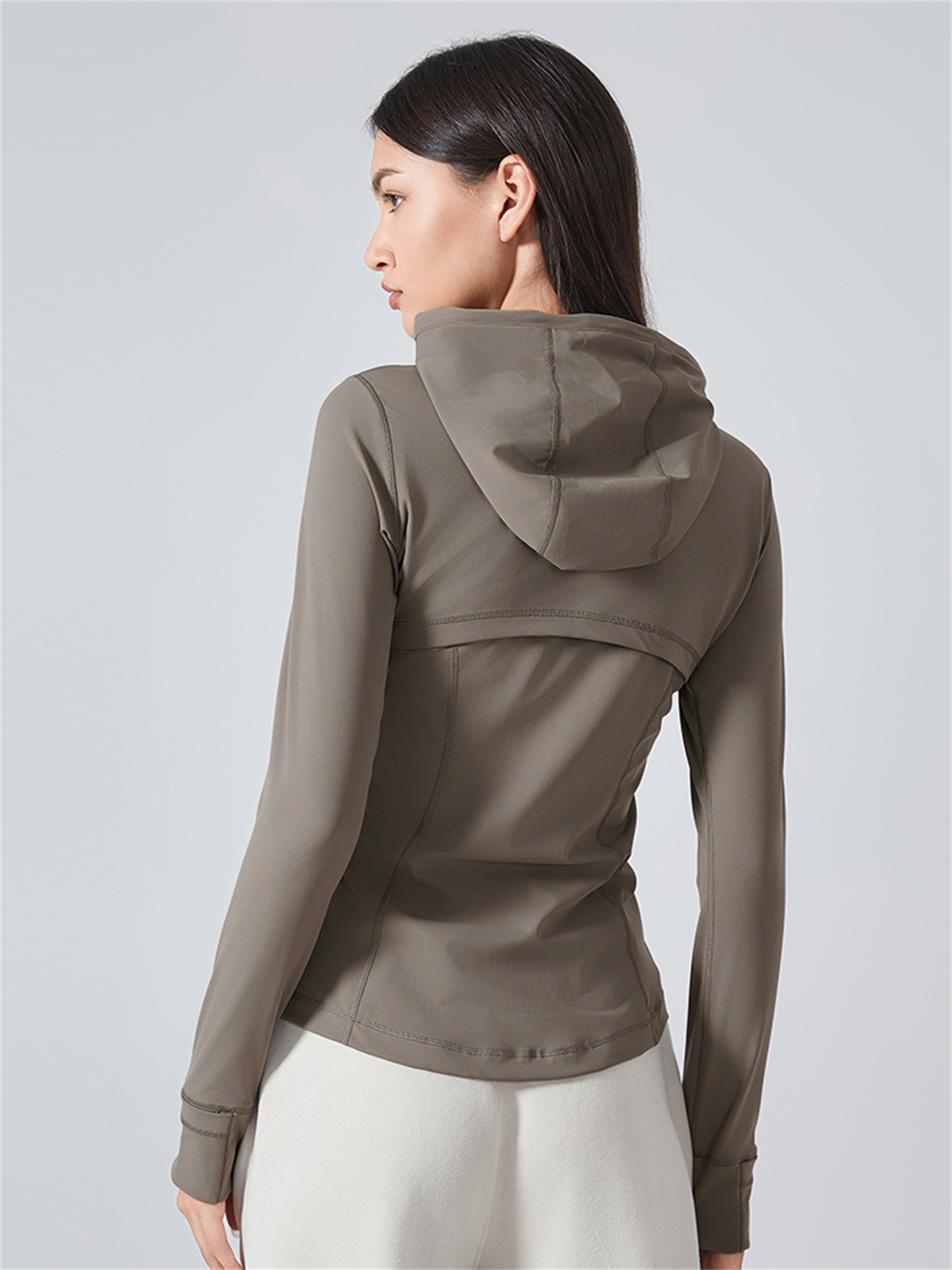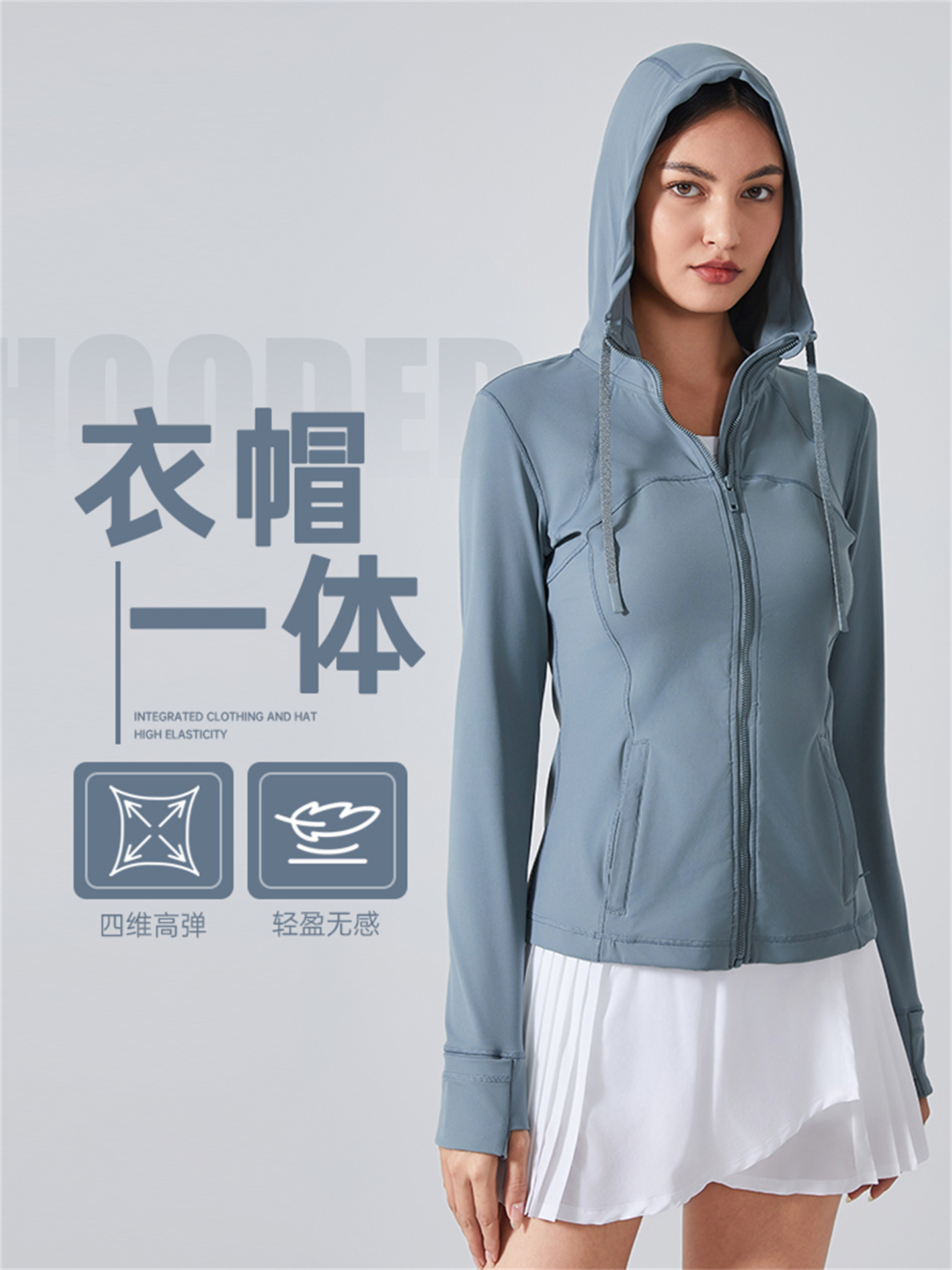 Hooded Df Naked-Feel Jacket, Sports Casual Zipper Jacket for Women, Slim Fit, Slimming, Running, Yoga, Fitness, Long-Sleeved Top