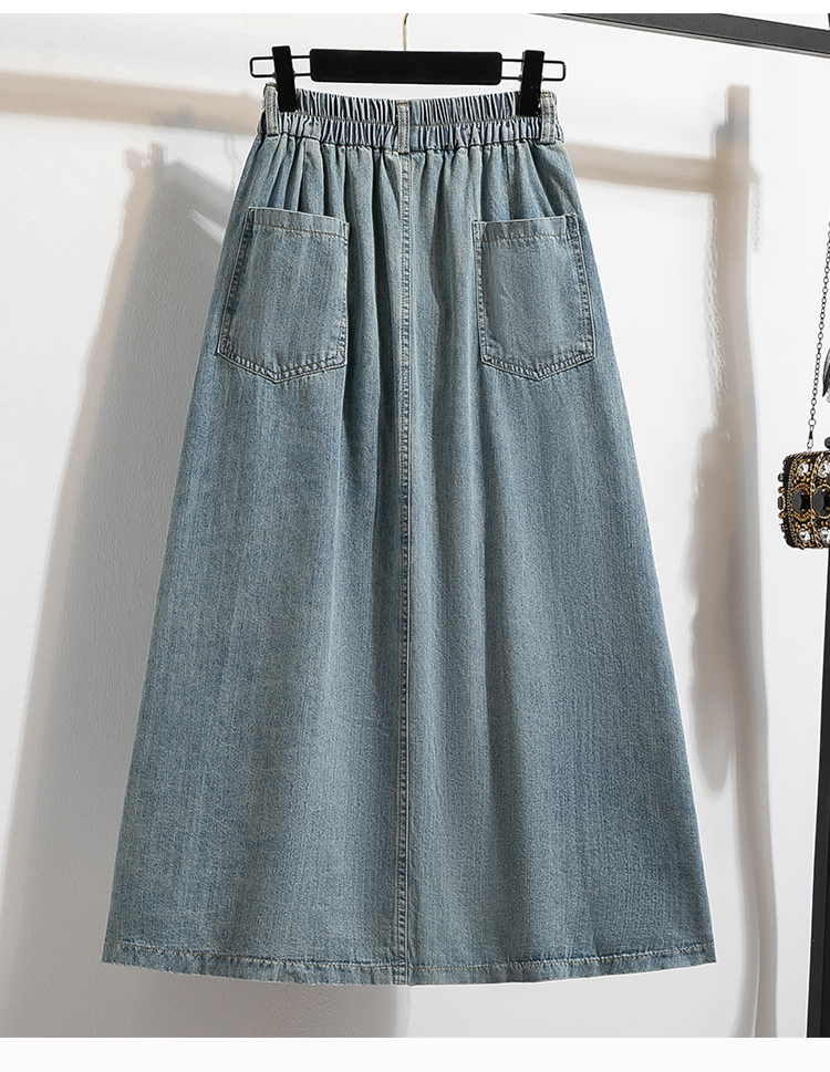 Plus-Size Denim Skirt for Women, Perfect for Fall Outfits, Flattering for Chubby Girls, Slimming, Tummy-Concealing, A-Line Skirt for Petite Women