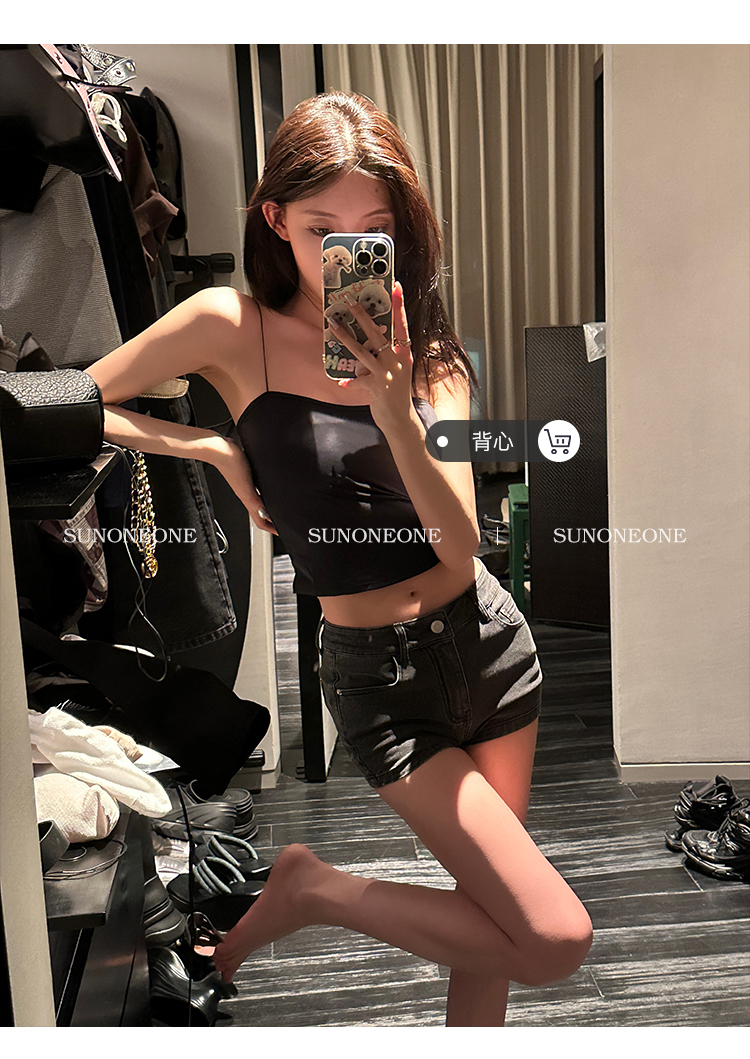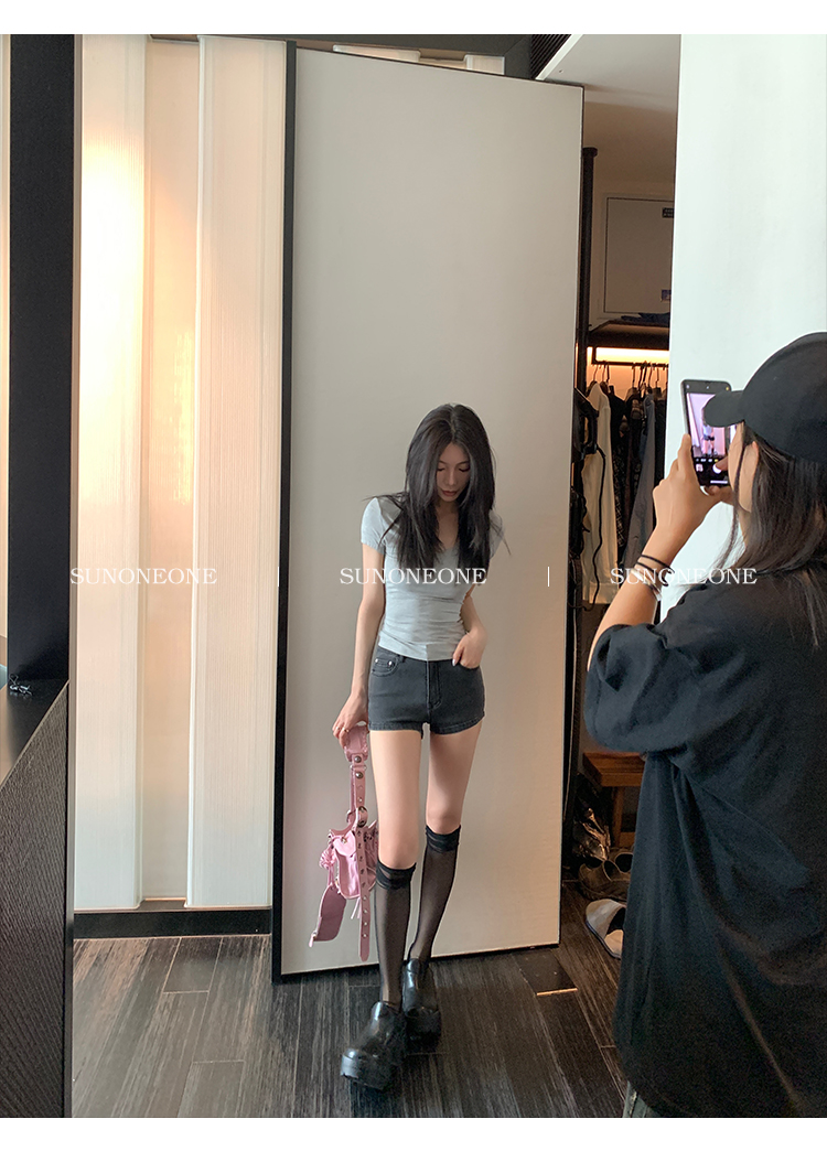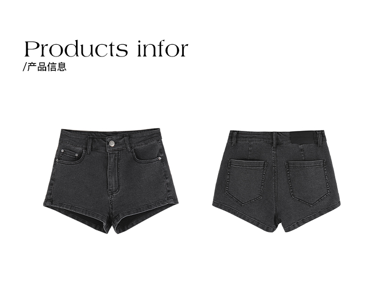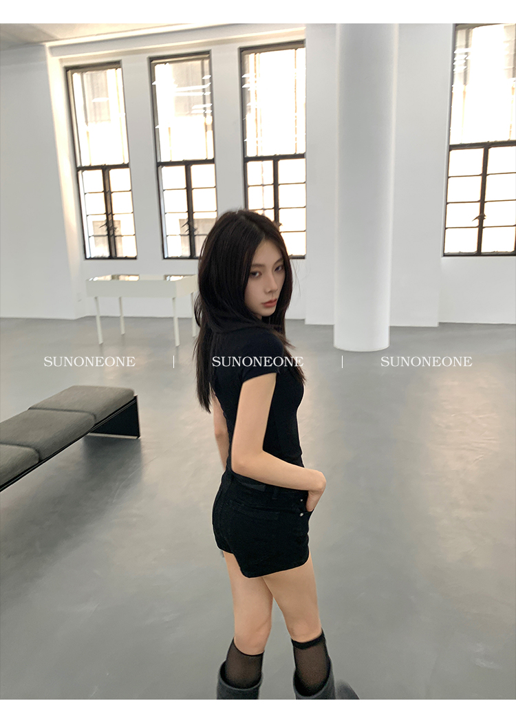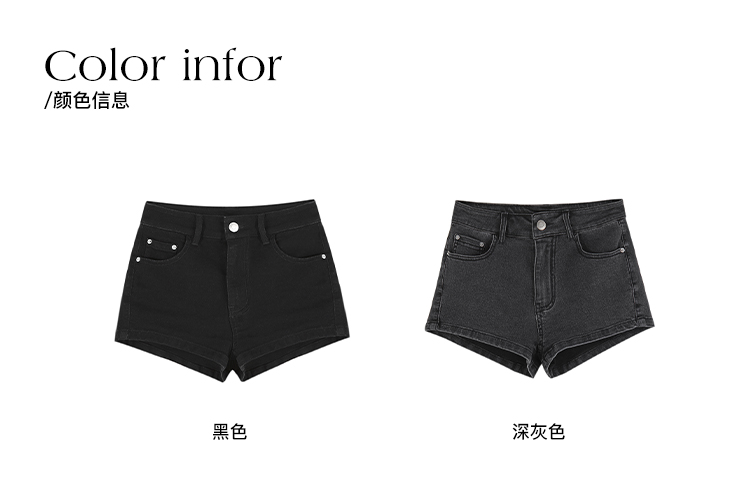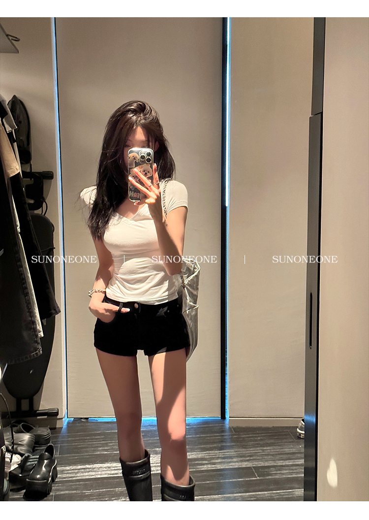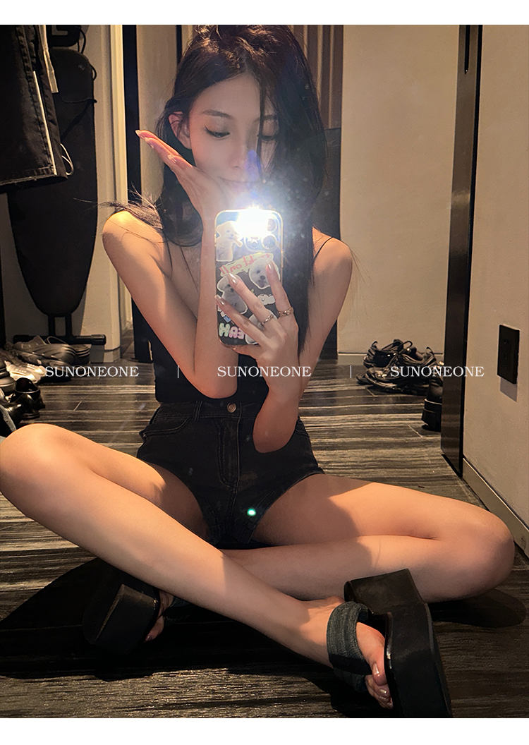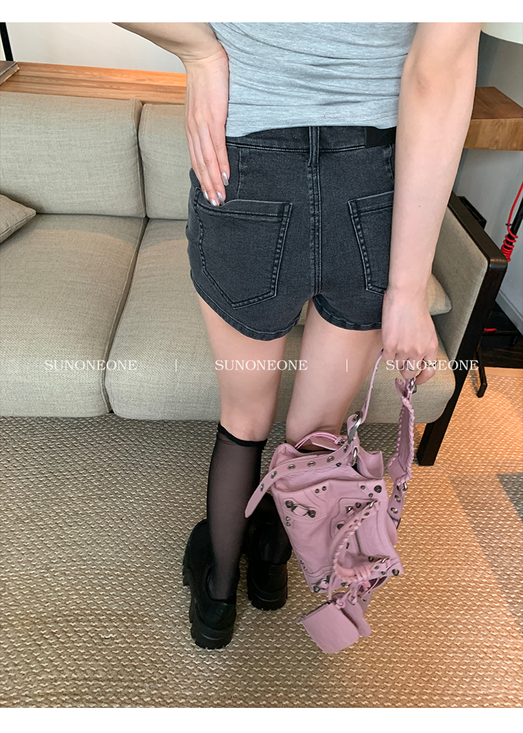 Sunoneone American Style Hot Pants Denim Shorts for Women, Summer Versatile Black Petite Slimming Tight Pants