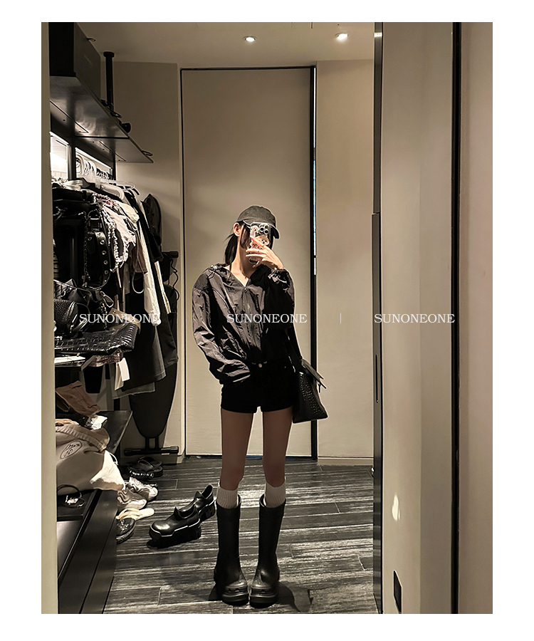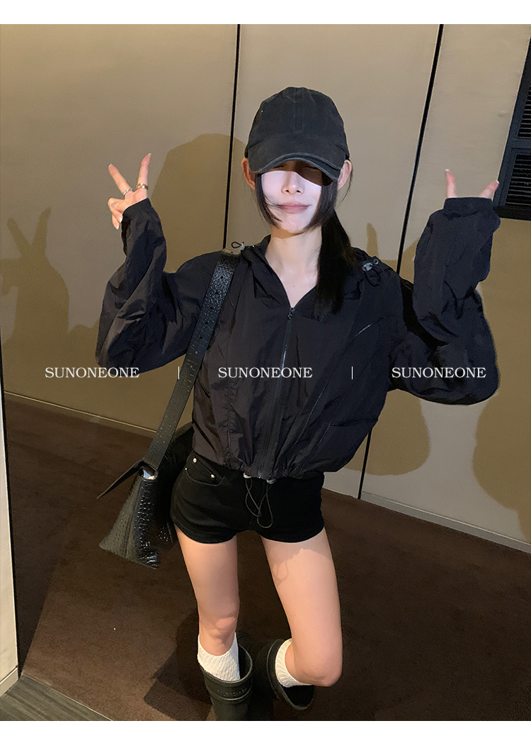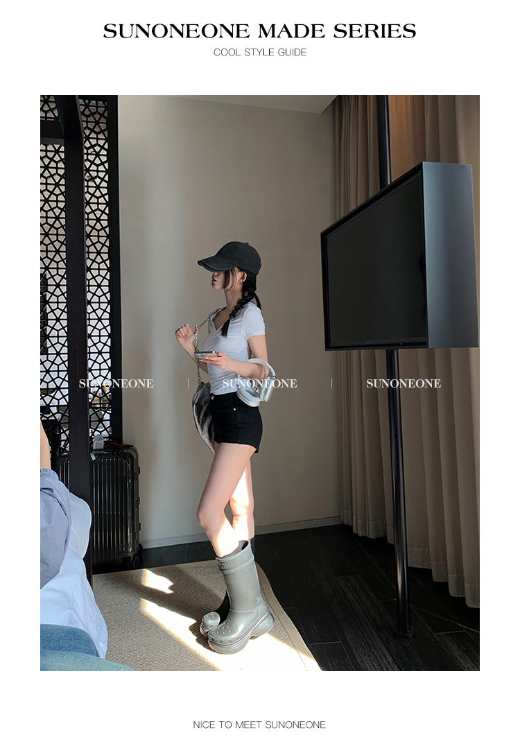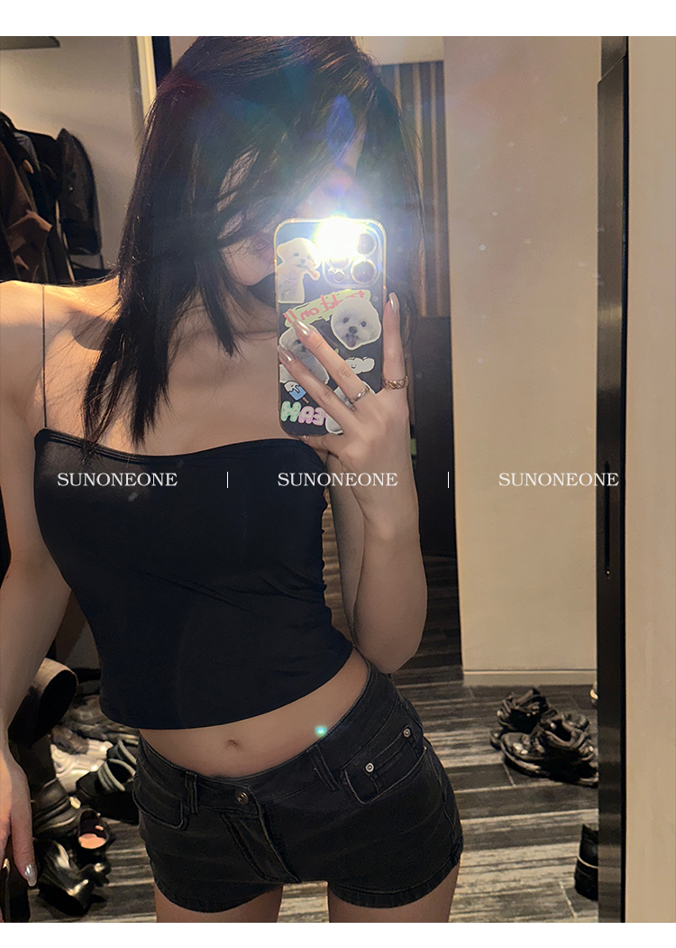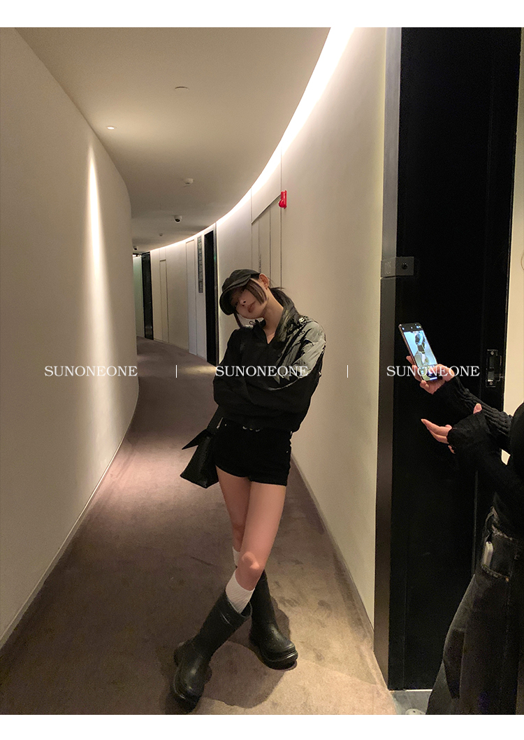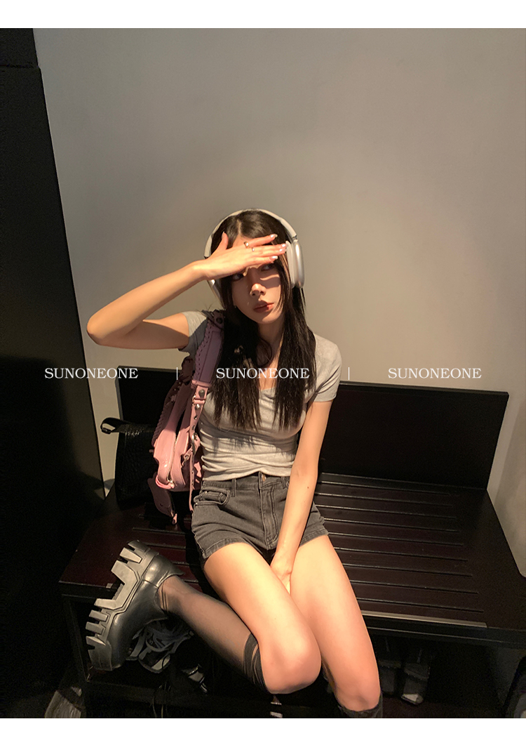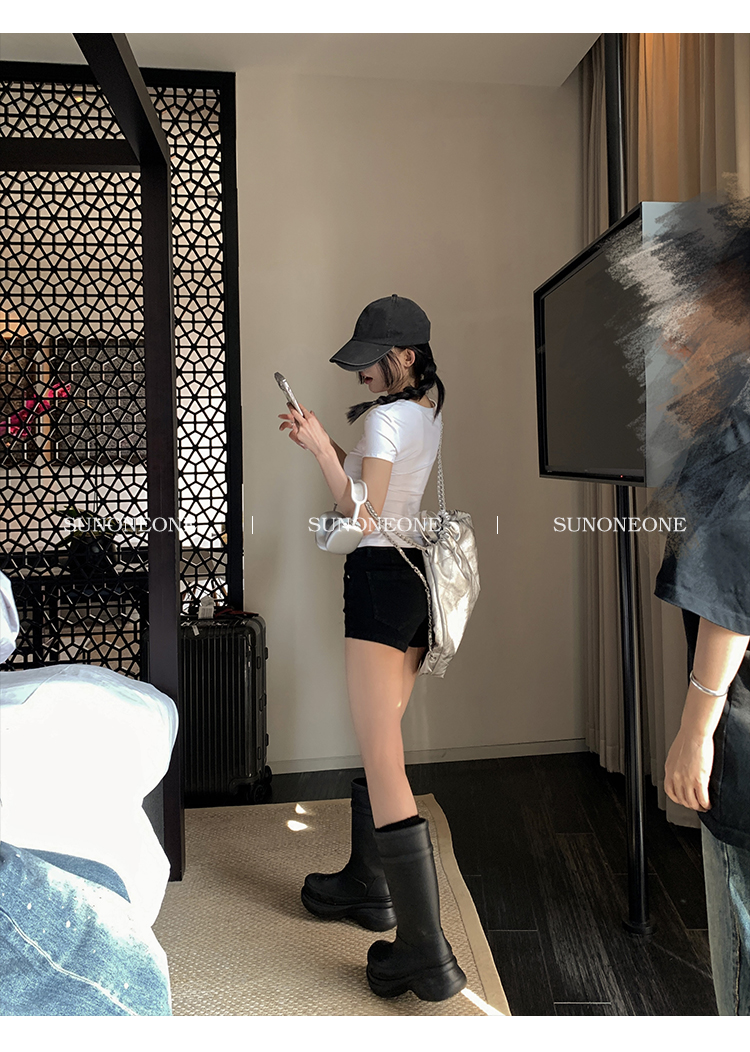 Sunoneone American Style Hot Pants Denim Shorts for Women, Summer Versatile Black Petite Slimming Tight Pants
