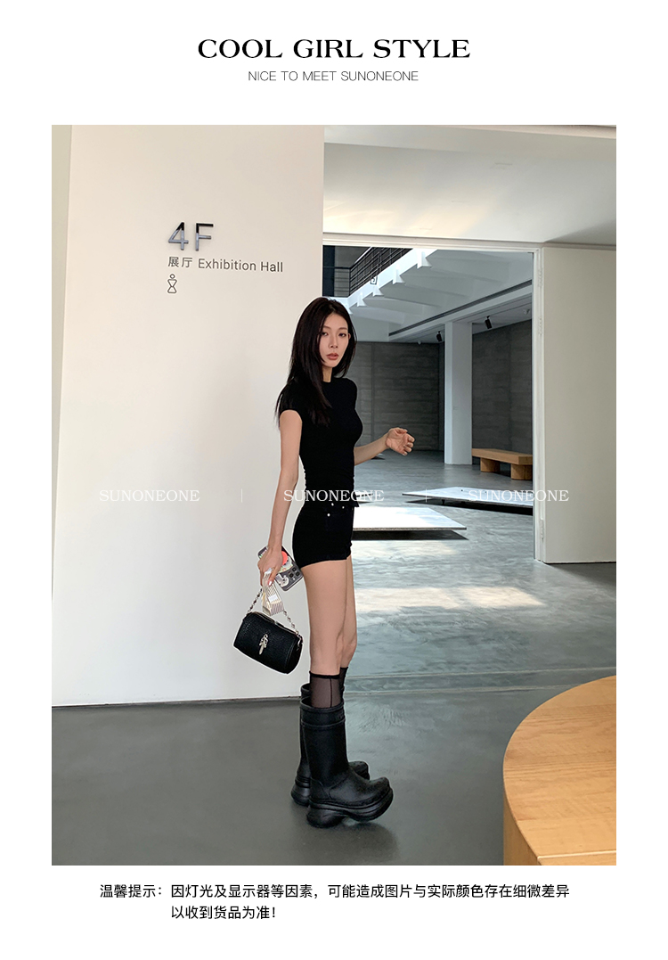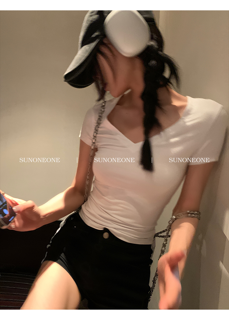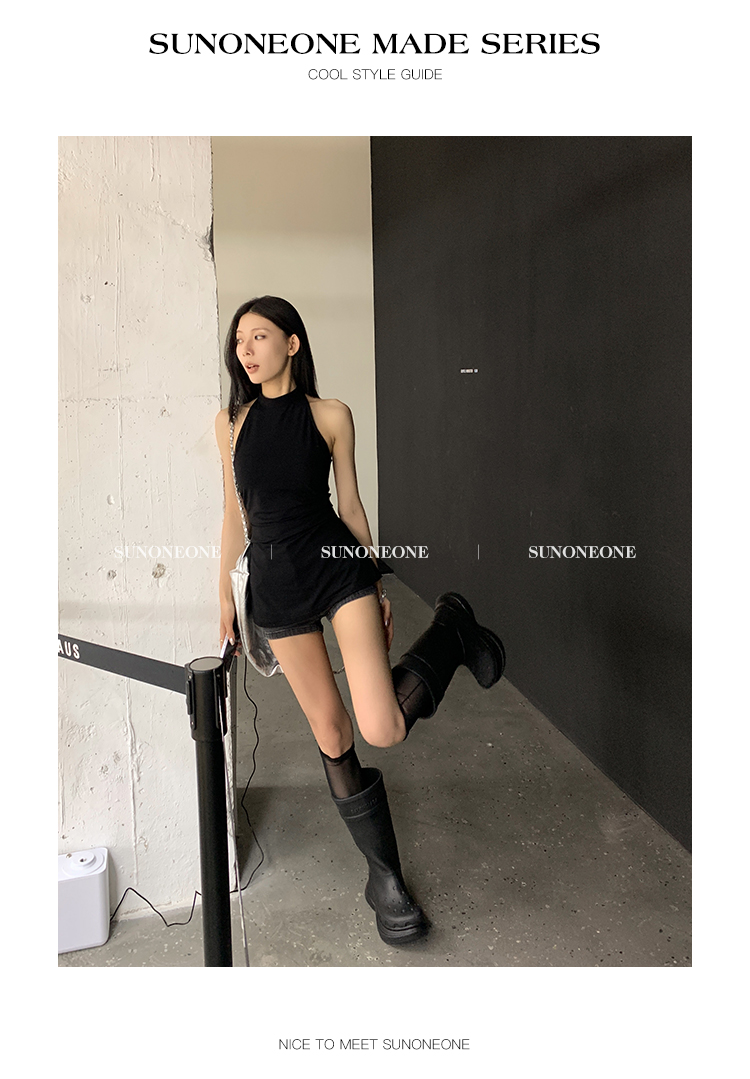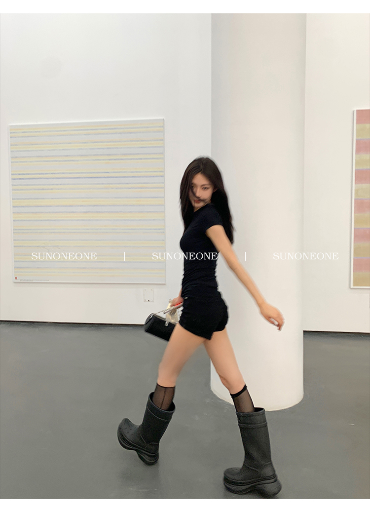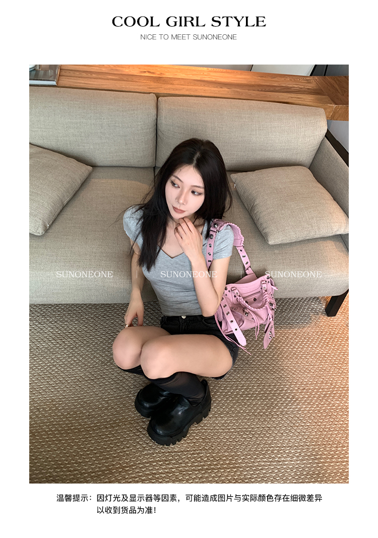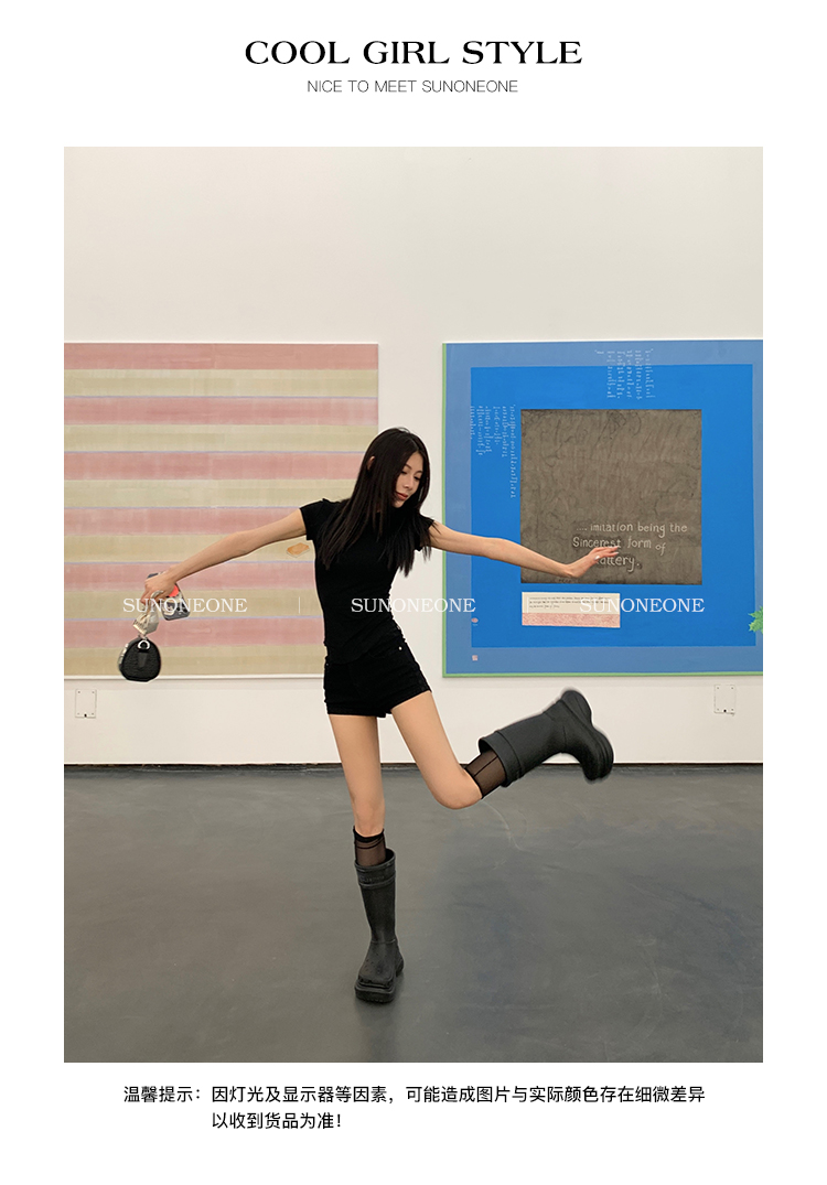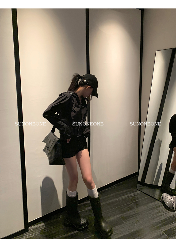 Sunoneone American Style Hot Pants Denim Shorts for Women, Summer Versatile Black Petite Slimming Tight Pants