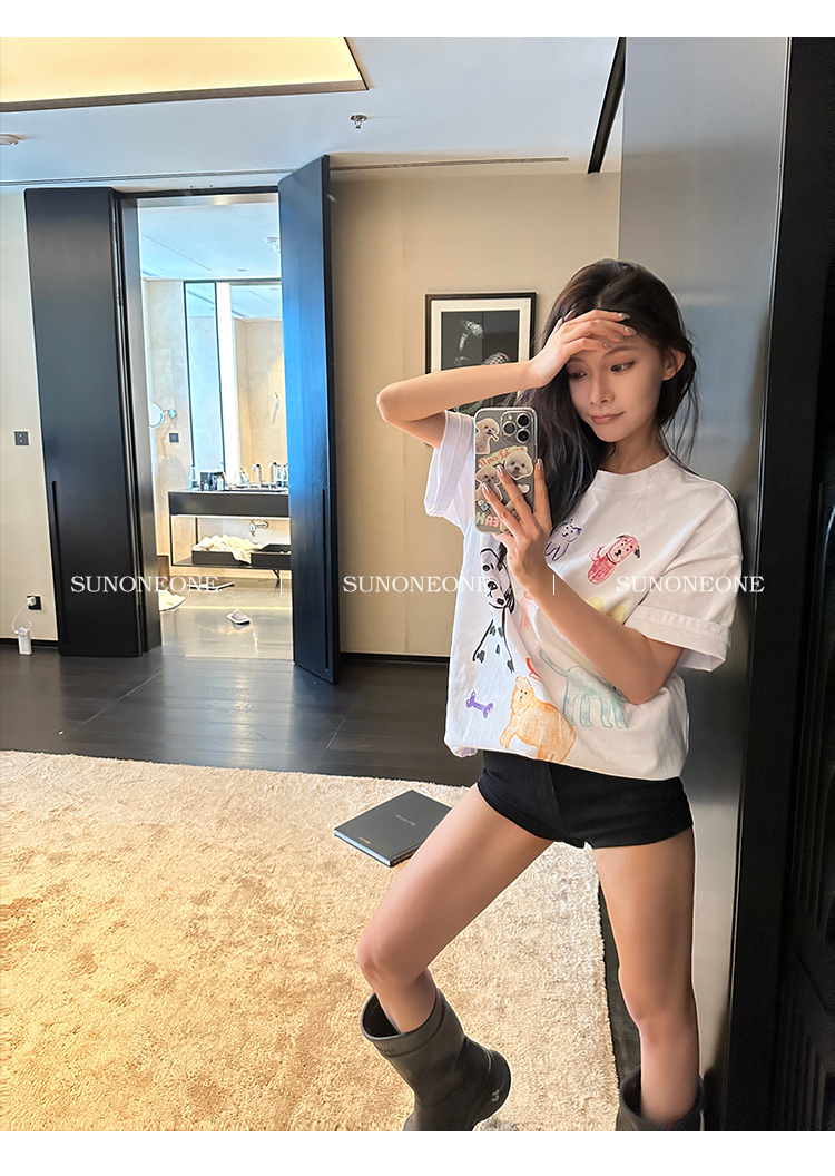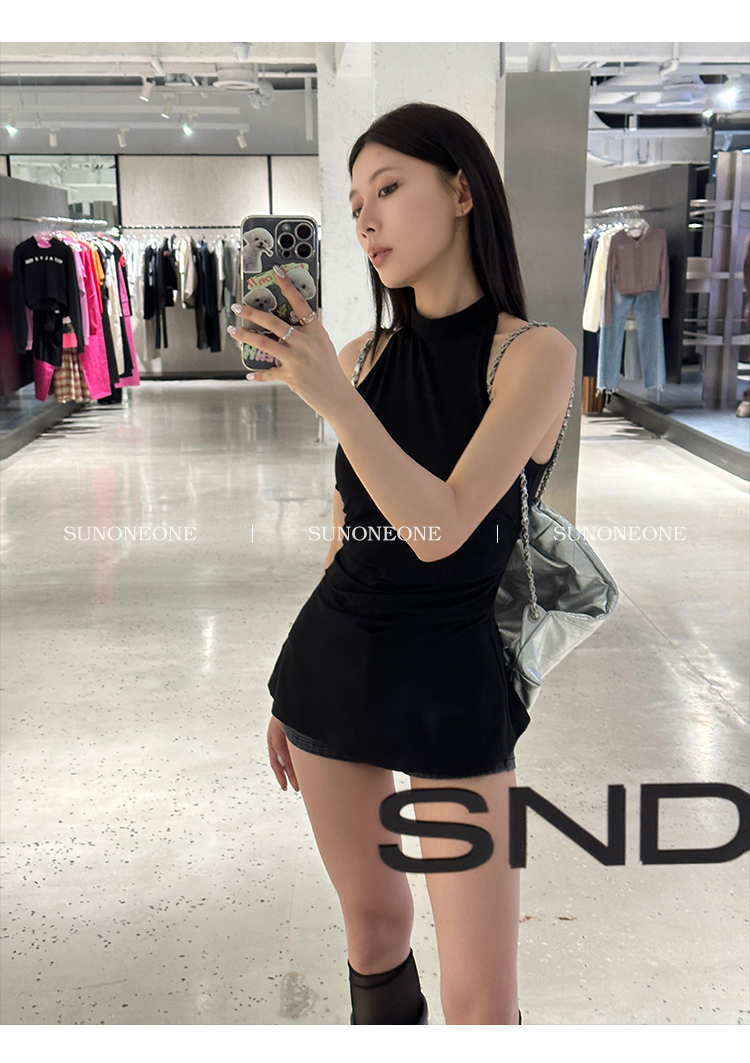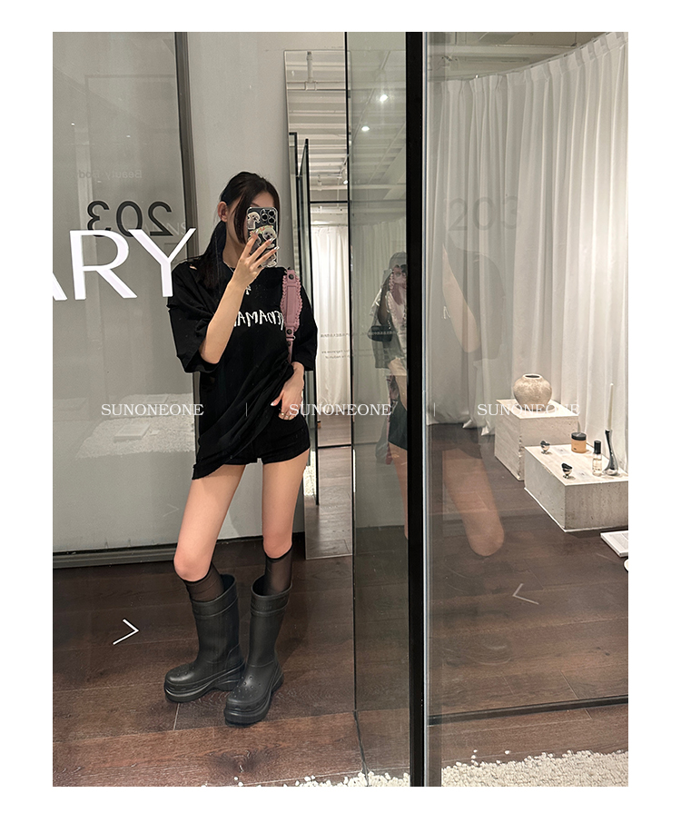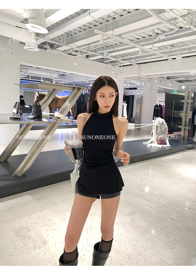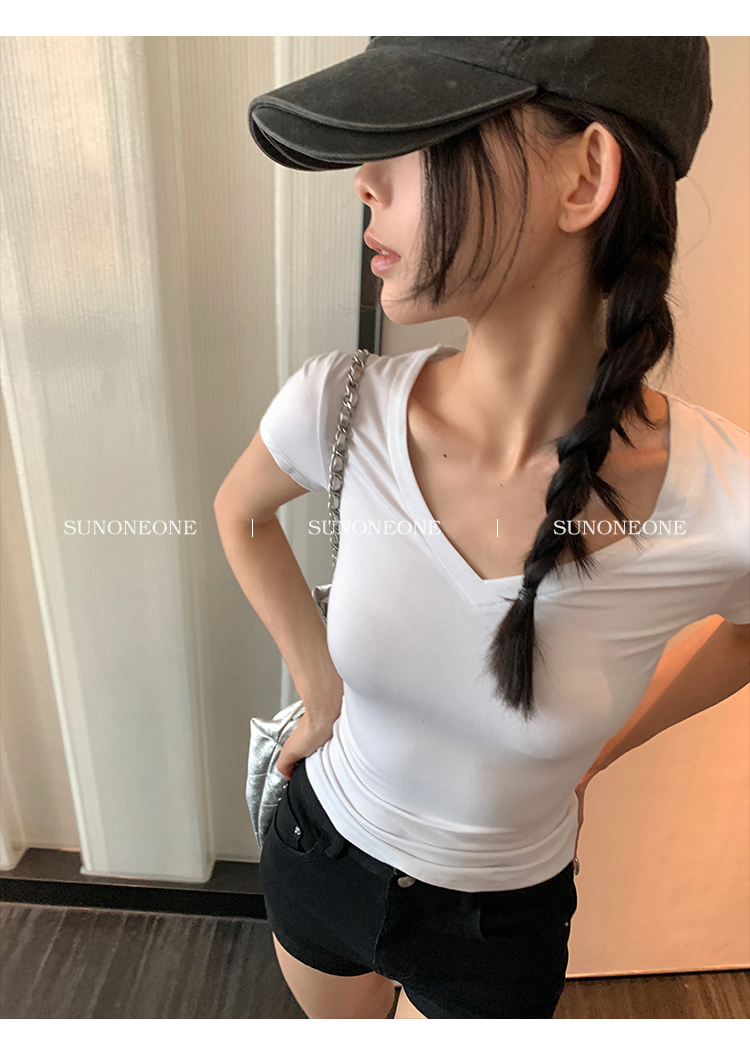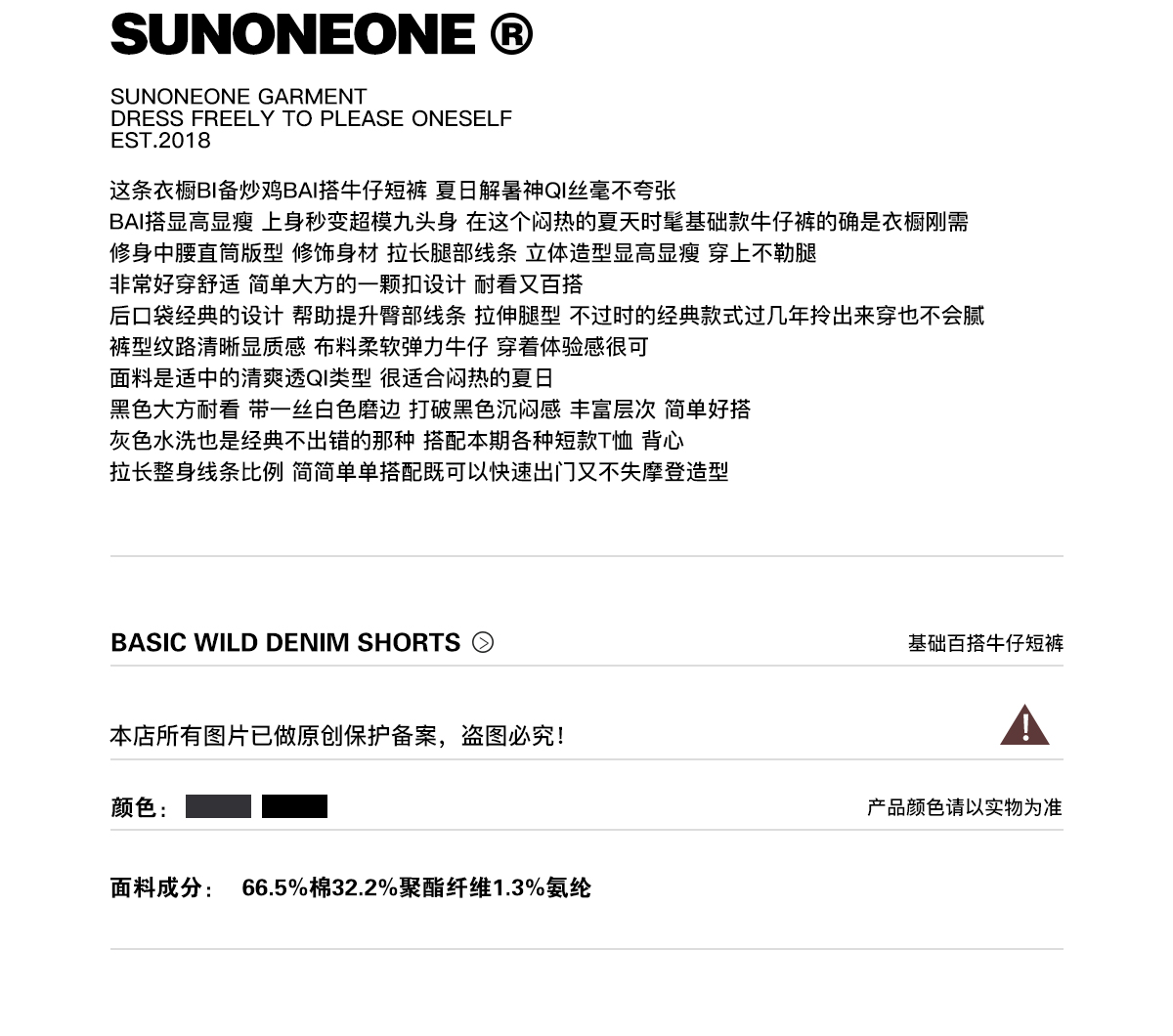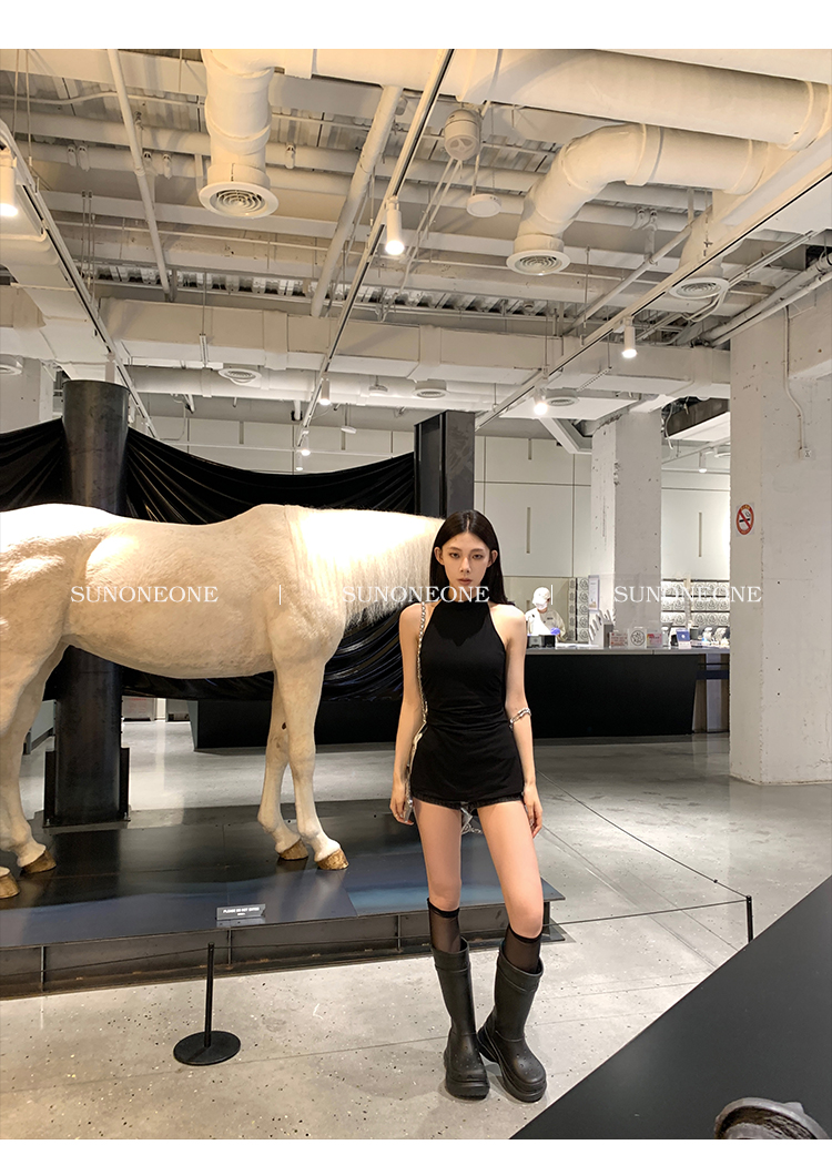 Sunoneone American Style Hot Pants Denim Shorts for Women, Summer Versatile Black Petite Slimming Tight Pants