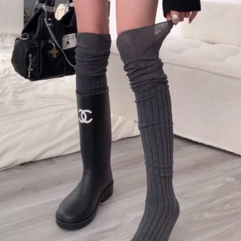 【Knight Boots and Socks Set for Women】Spliced Over-The-Knee Socks Layered with Melard Long Boots and Push-Up Socks