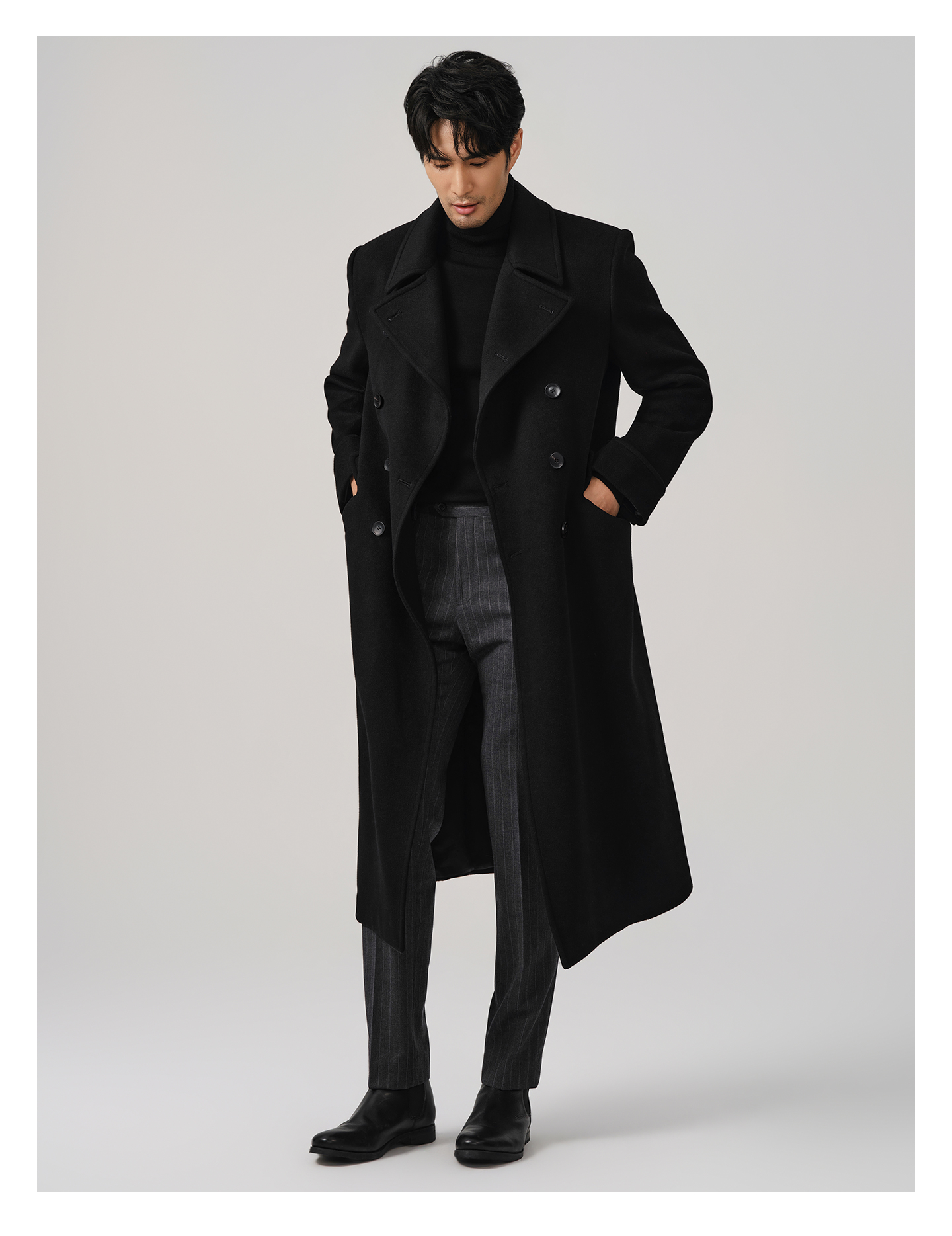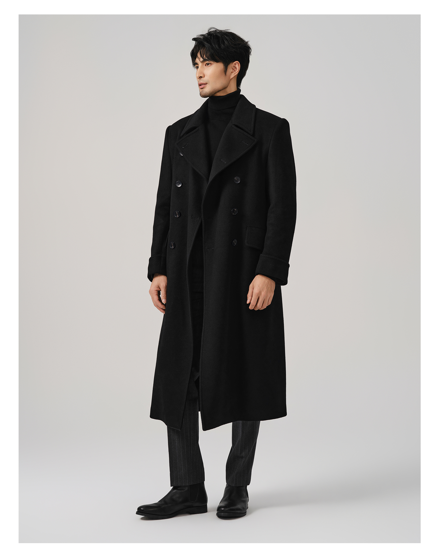 Hany [Ultra-Thick Camel Wool Polo Coat] 2025 New Men's Long Woolen Trench Coat for Autumn and Winter