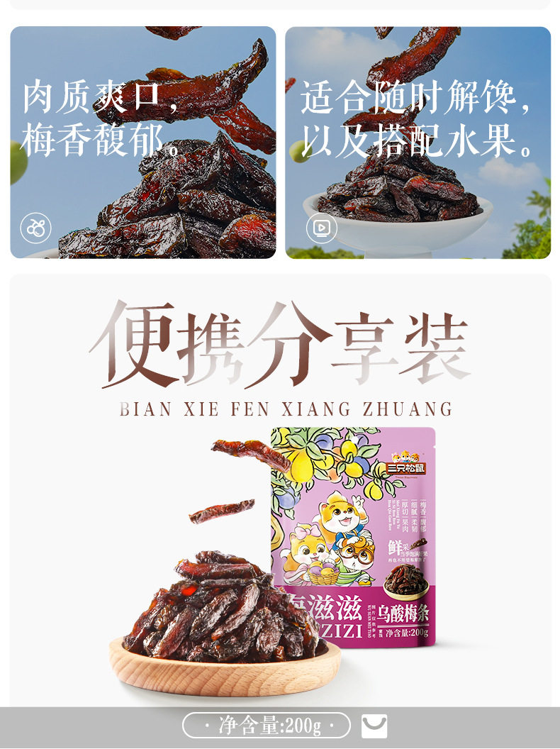 【 Three Squirrels, 200g Black Plum Strips 】 Leisure Snack