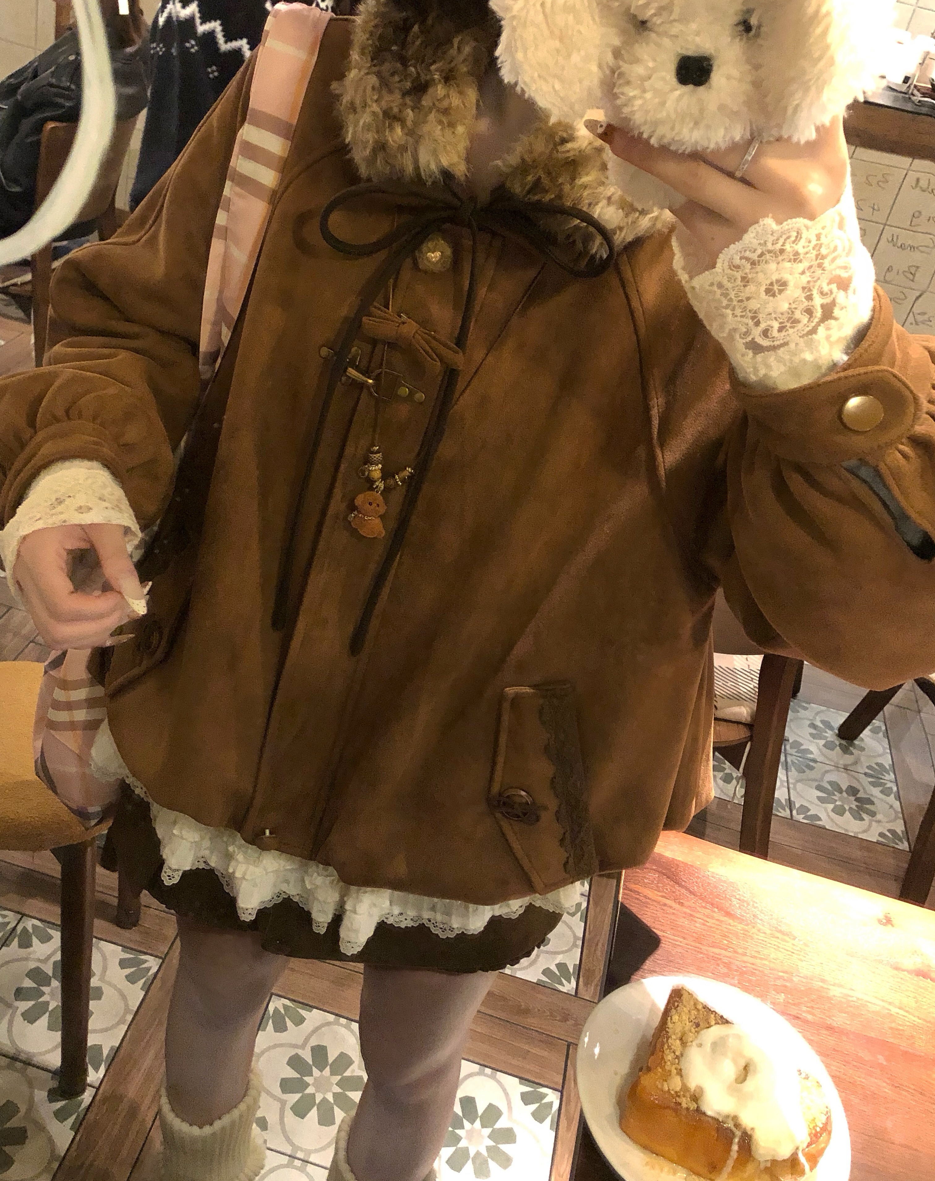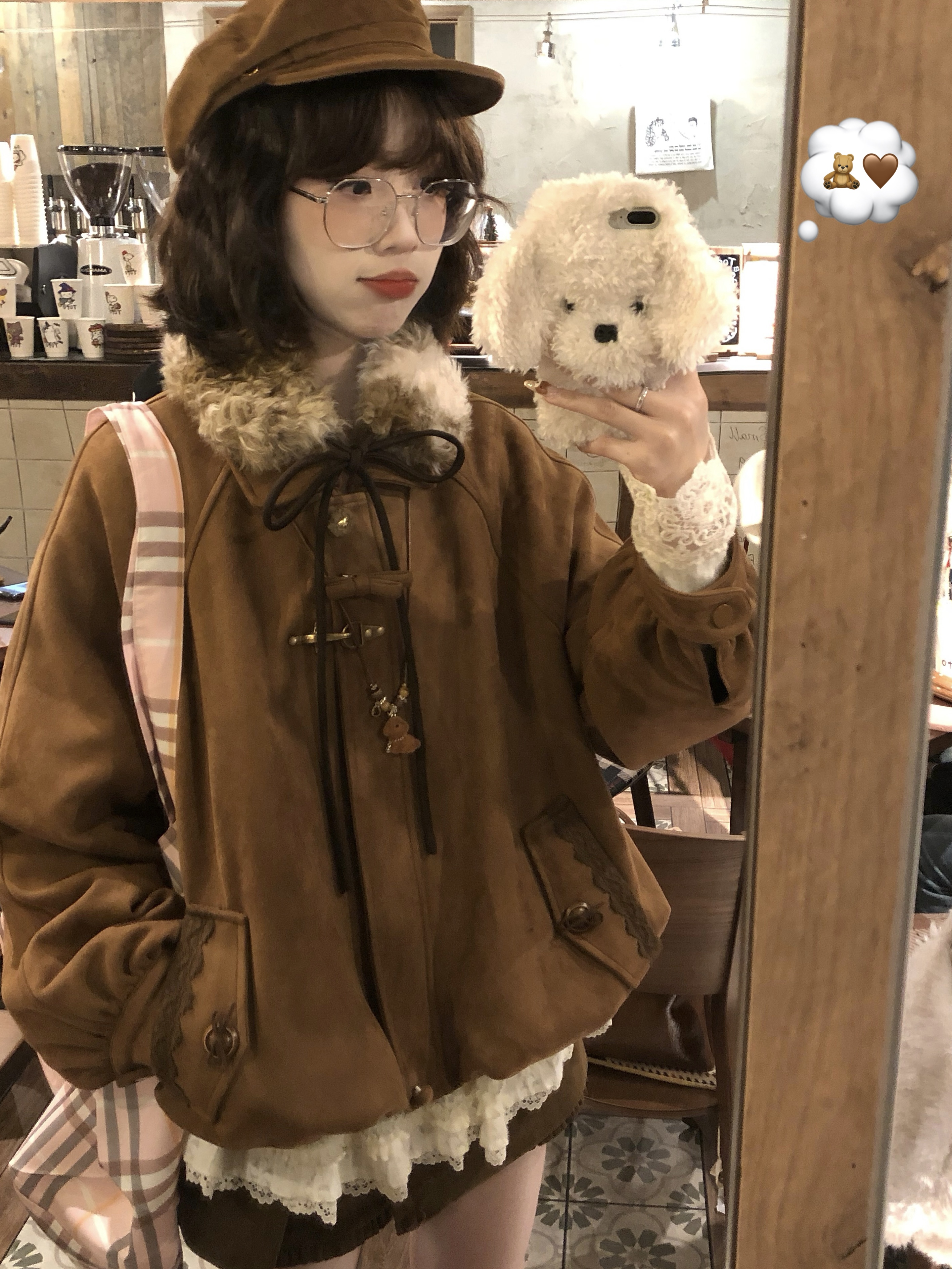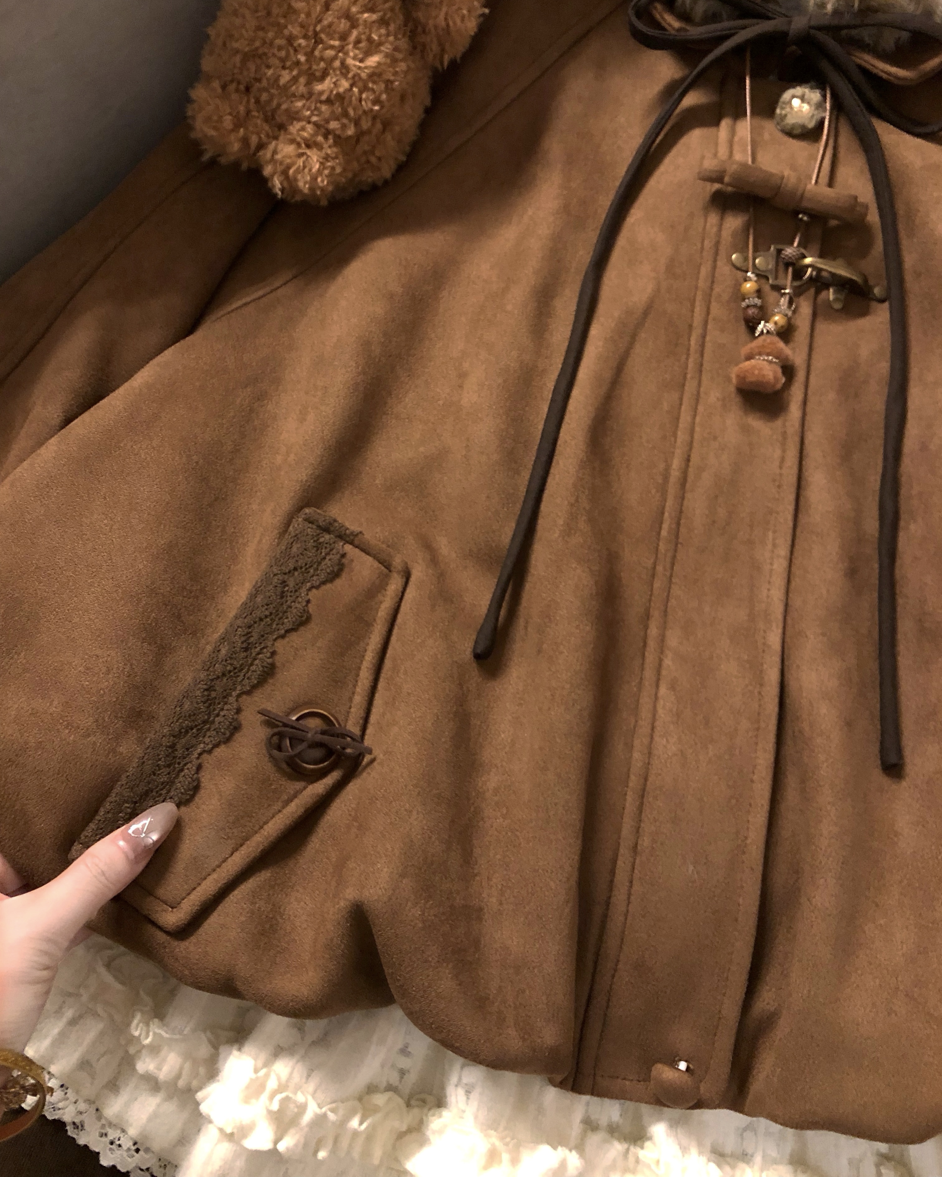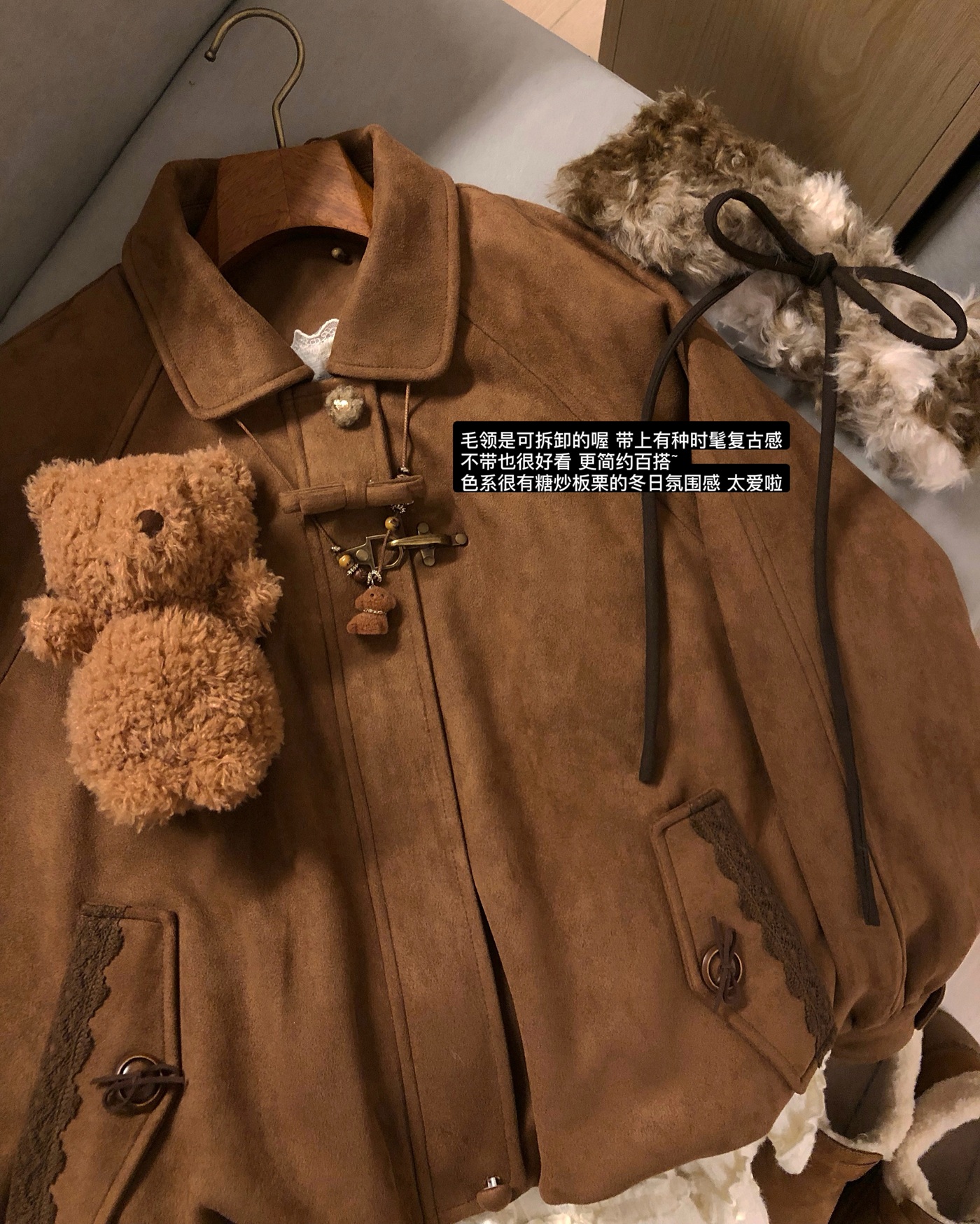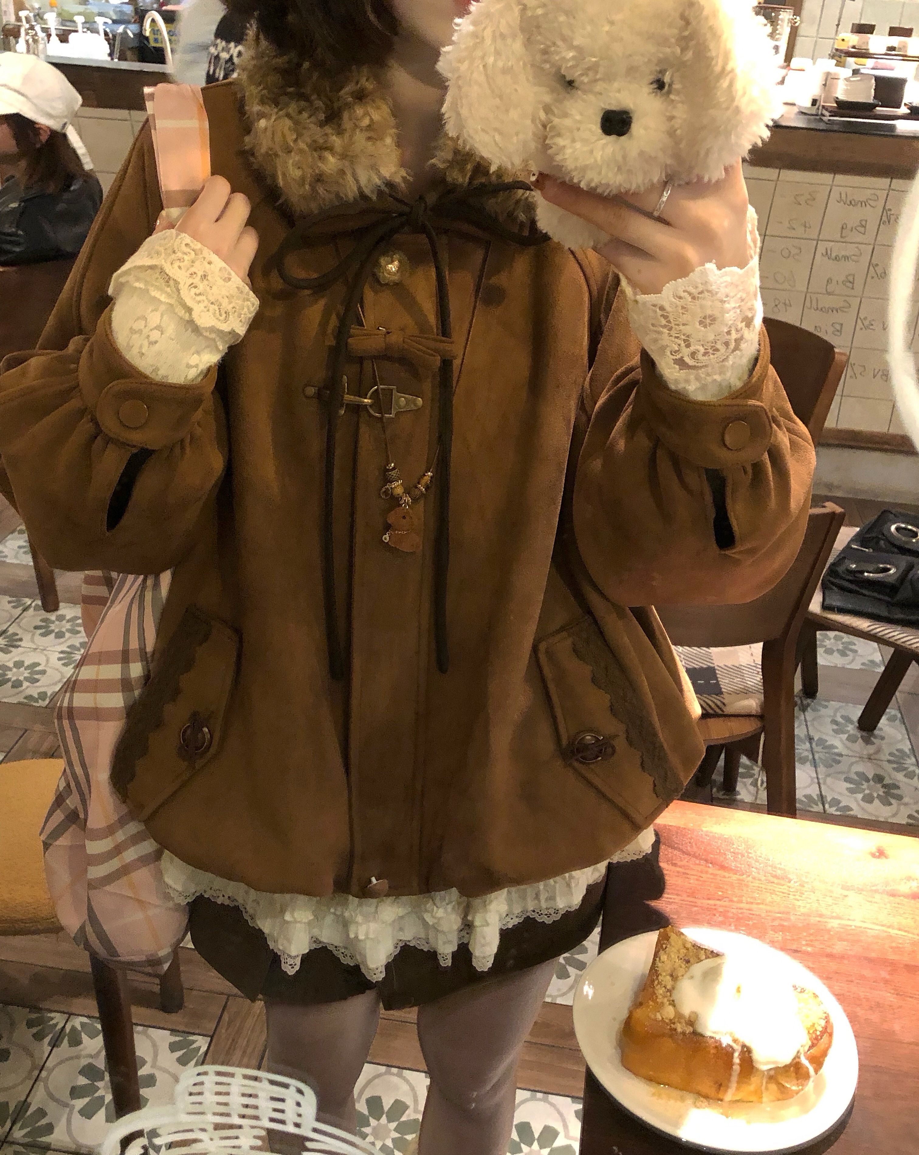 【Alittle Messy】 "Layered Style with a Vintage Feel: Furry Collar Cotton-Padded Jacket with Puff Sleeves and Vintage Style Padding Inside the Jacket