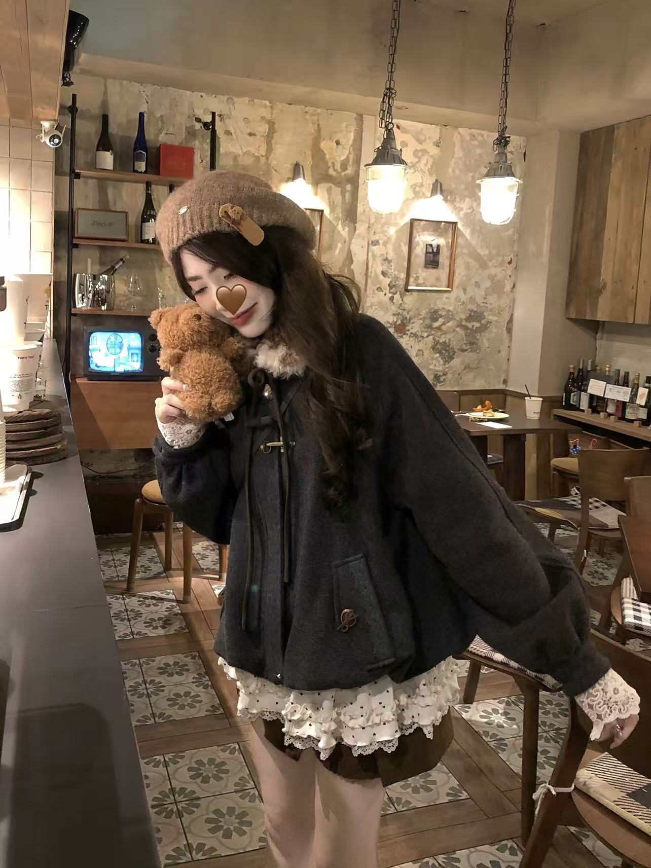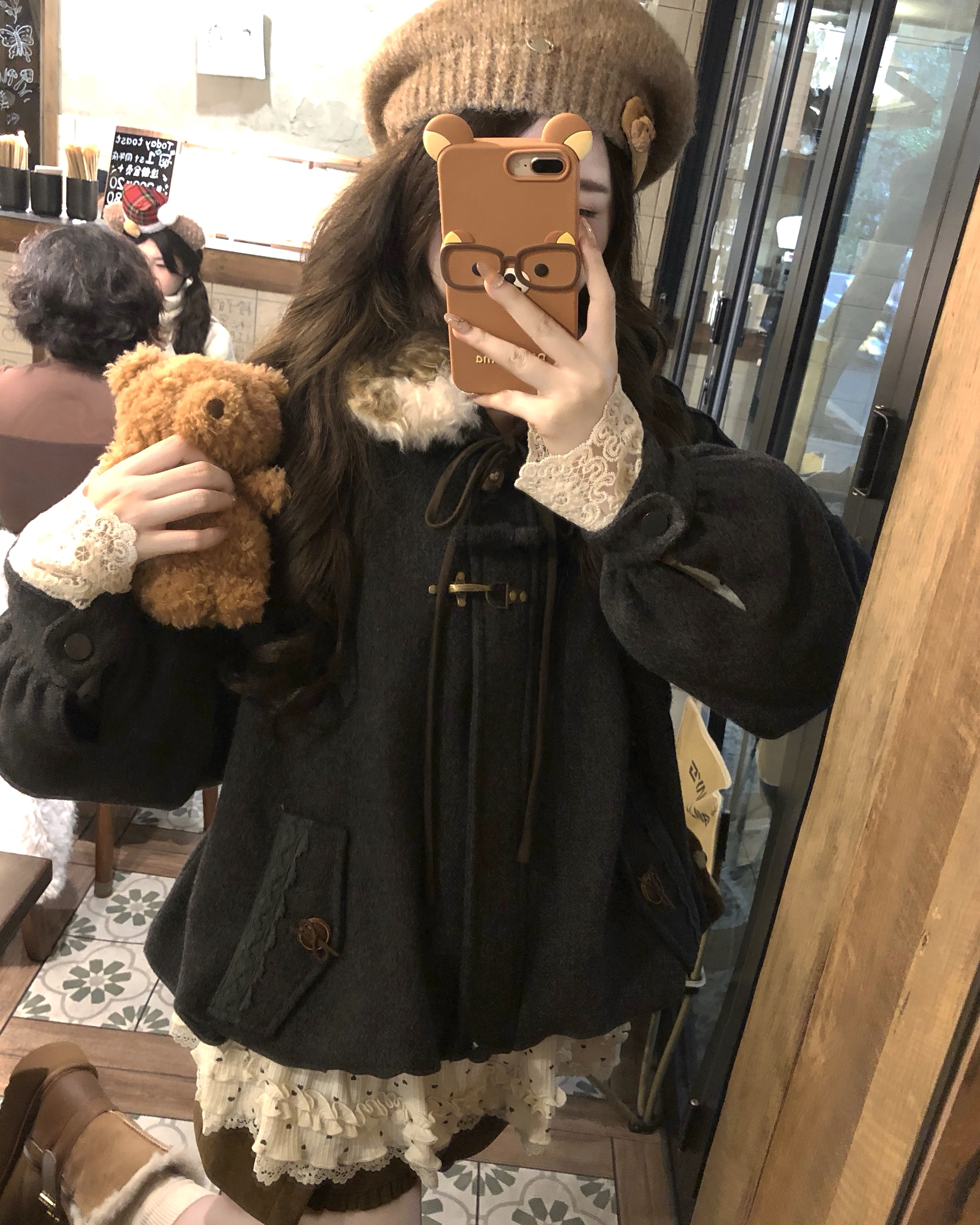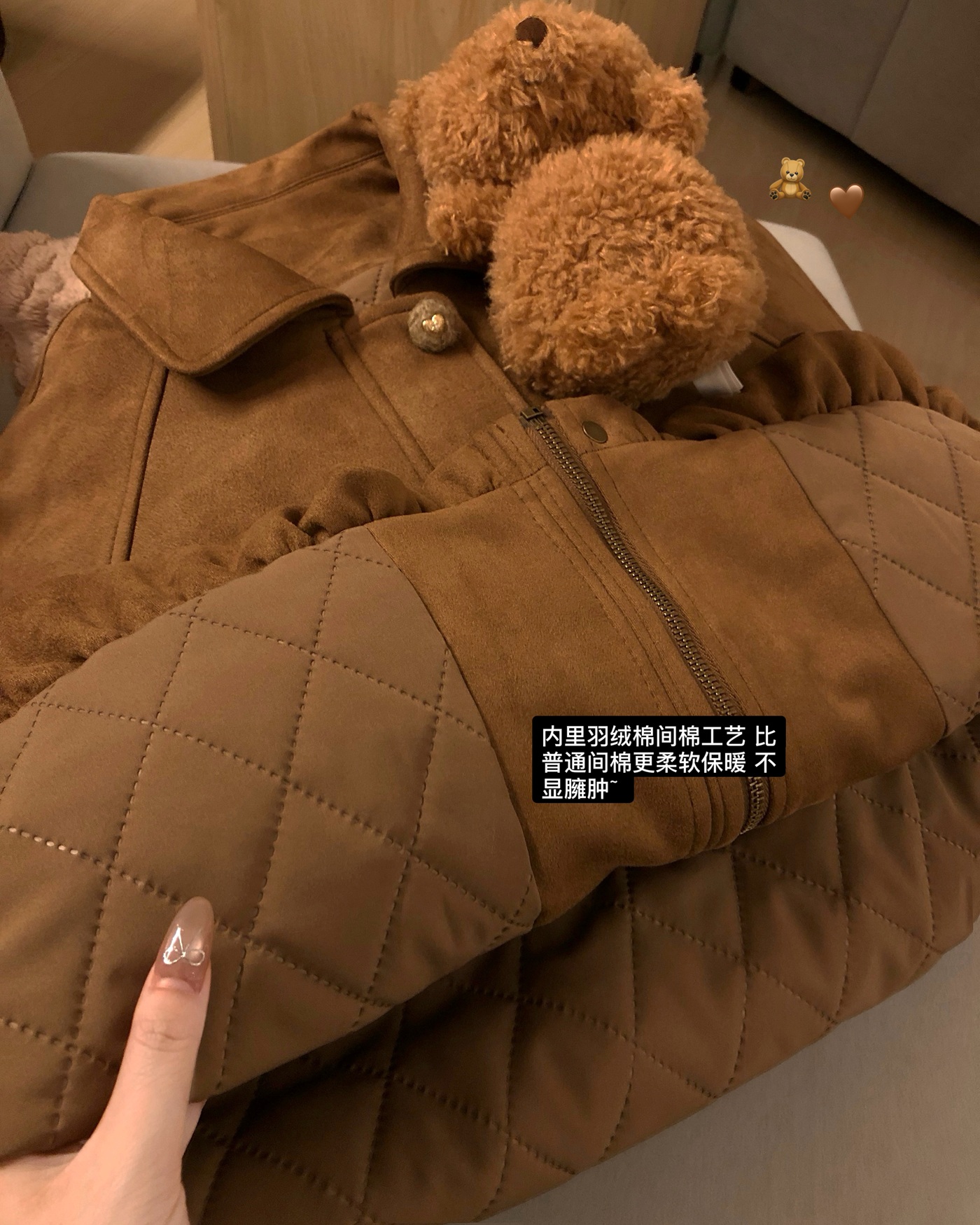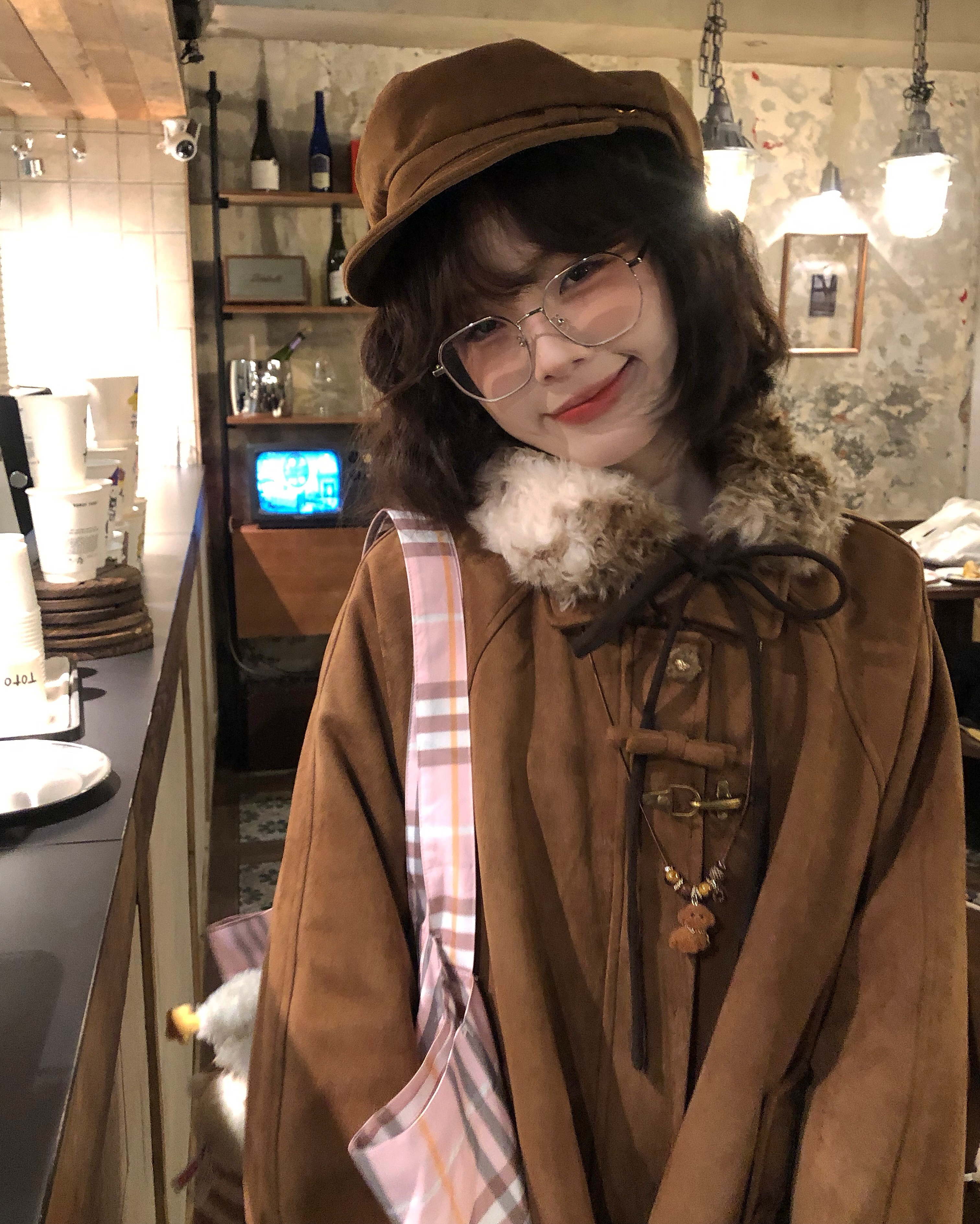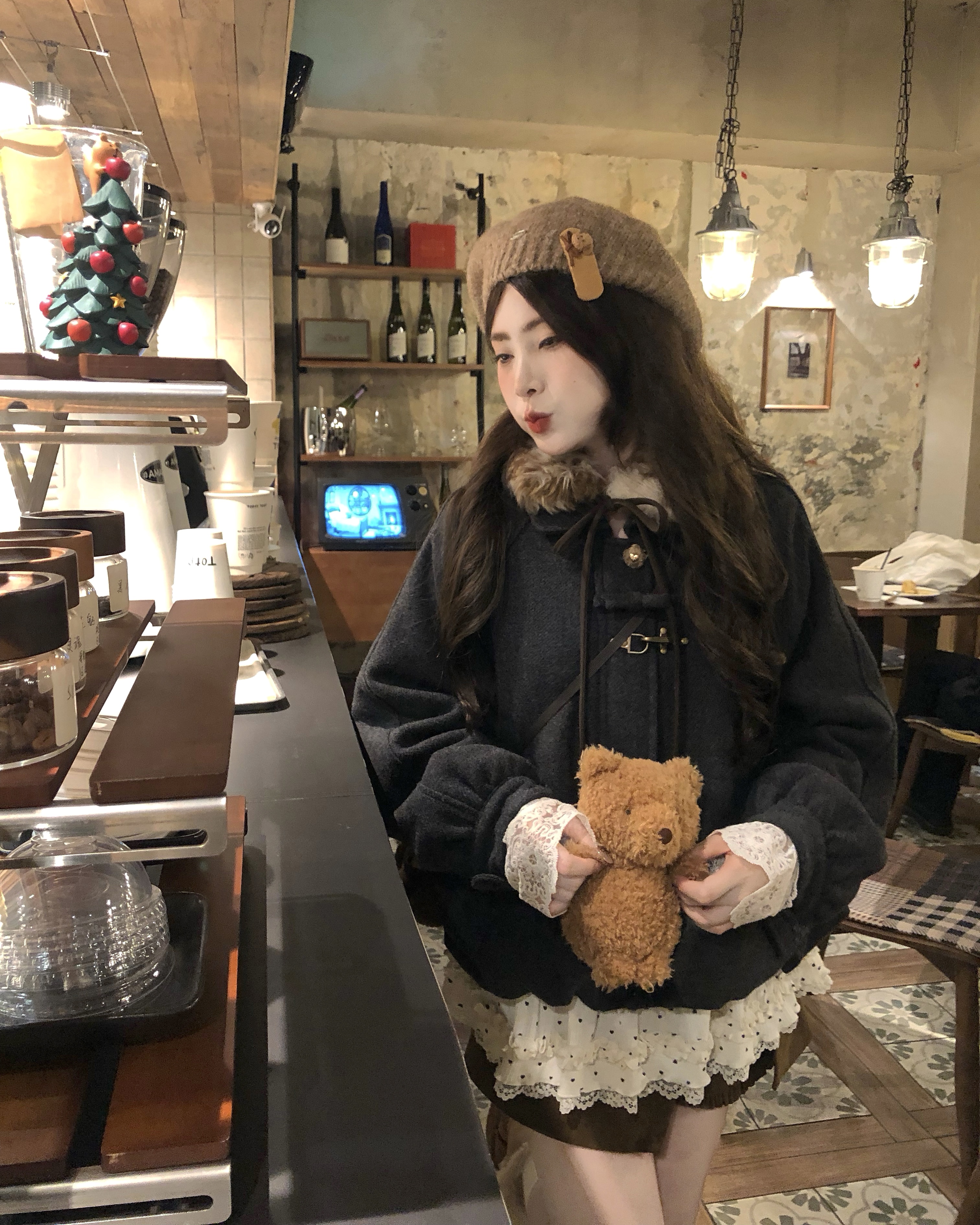 【Alittle Messy】 "Layered Style with a Vintage Feel: Furry Collar Cotton-Padded Jacket with Puff Sleeves and Vintage Style Padding Inside the Jacket