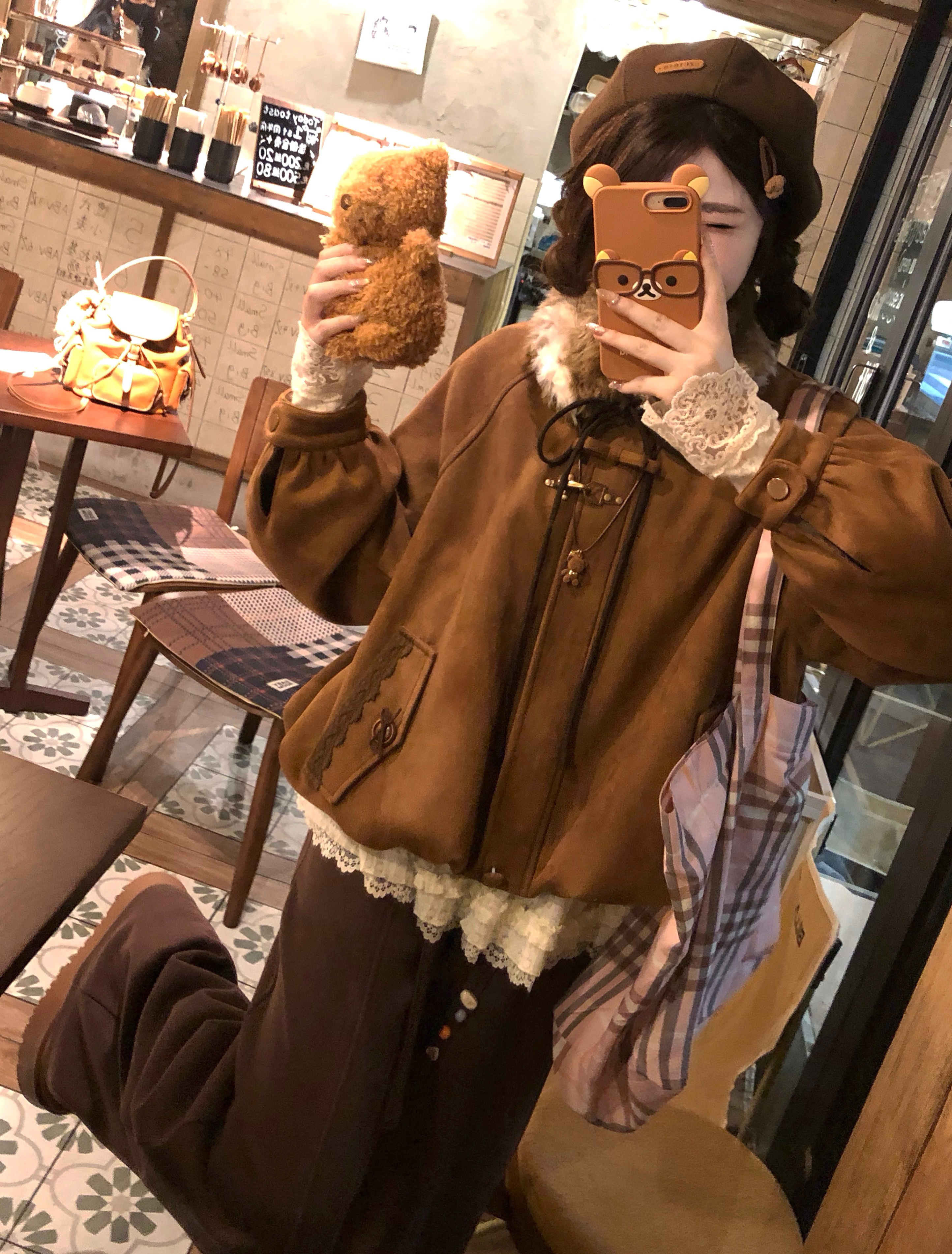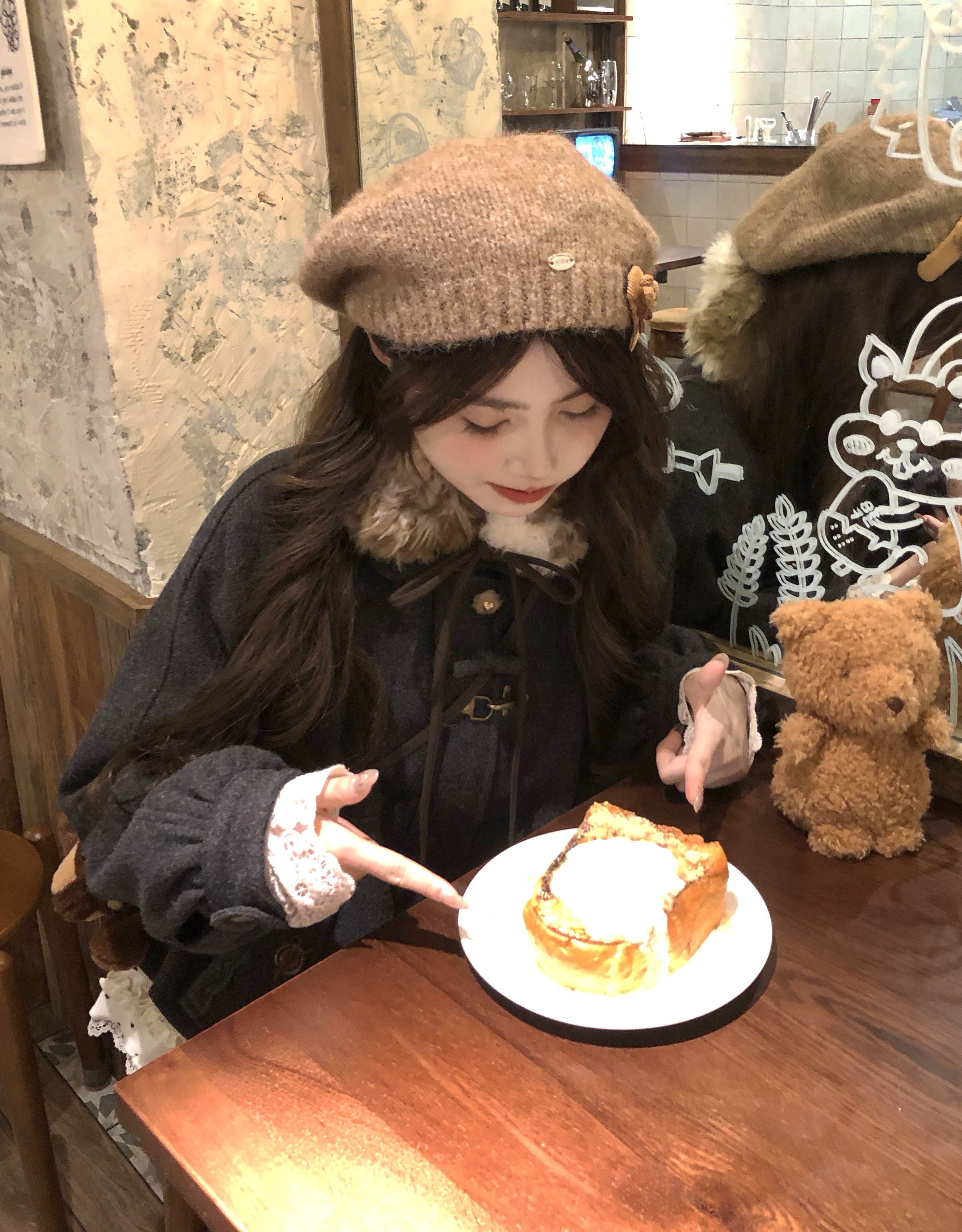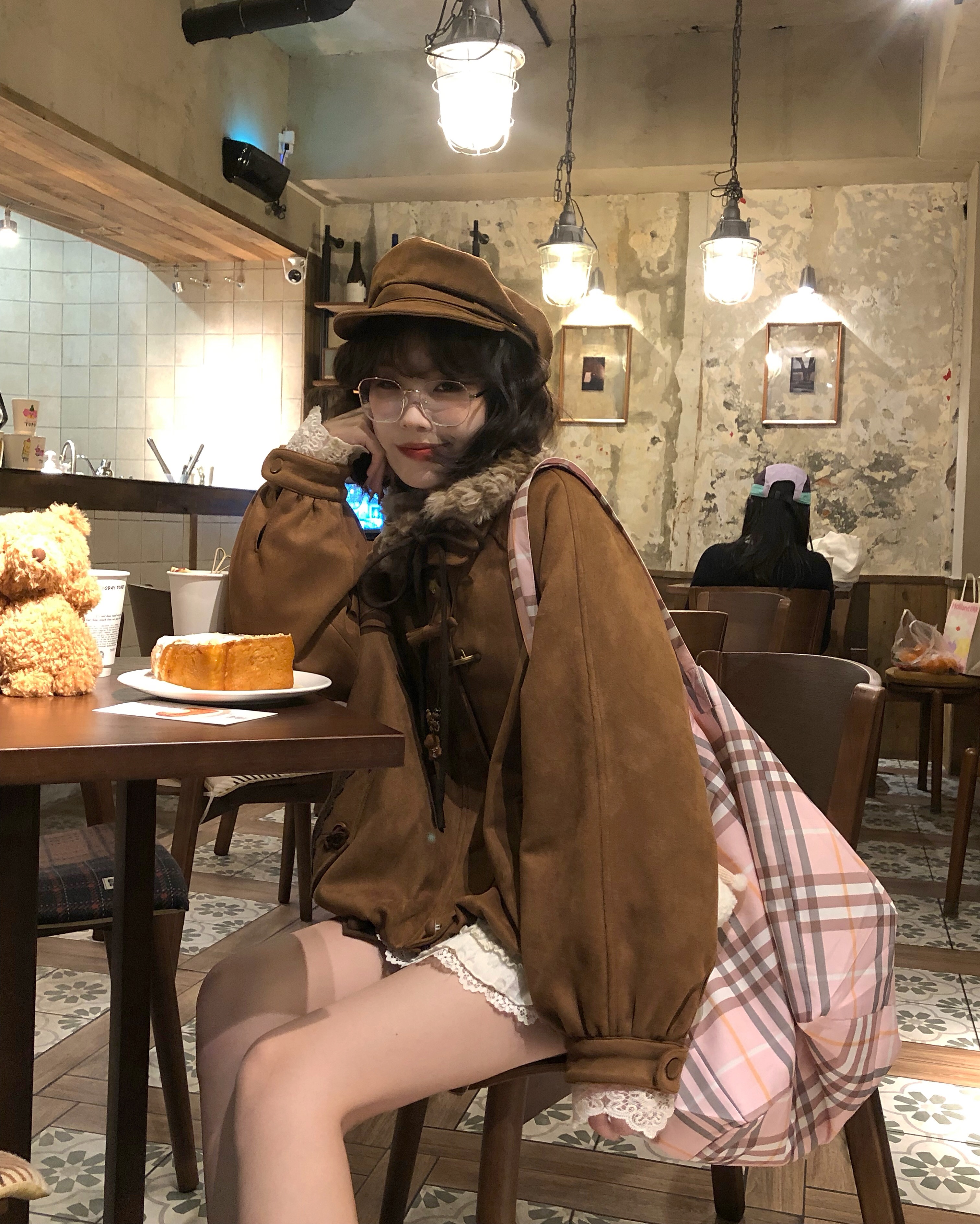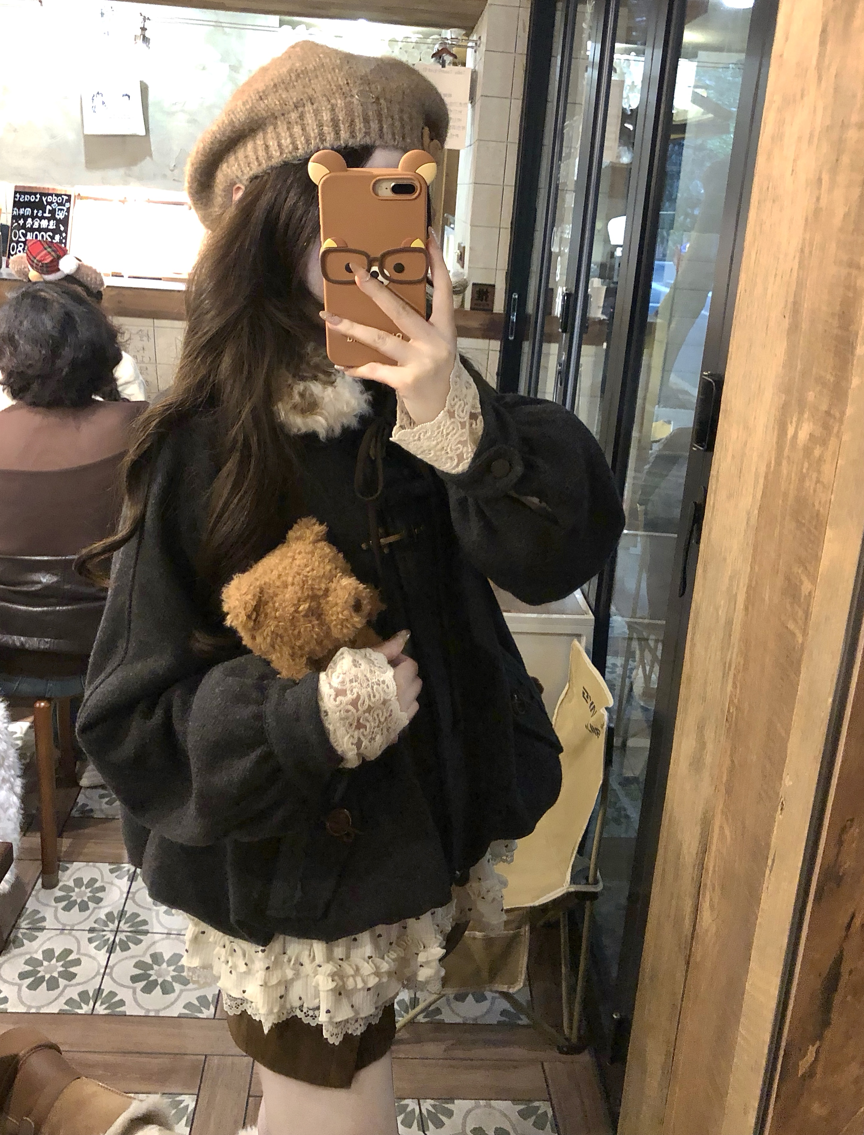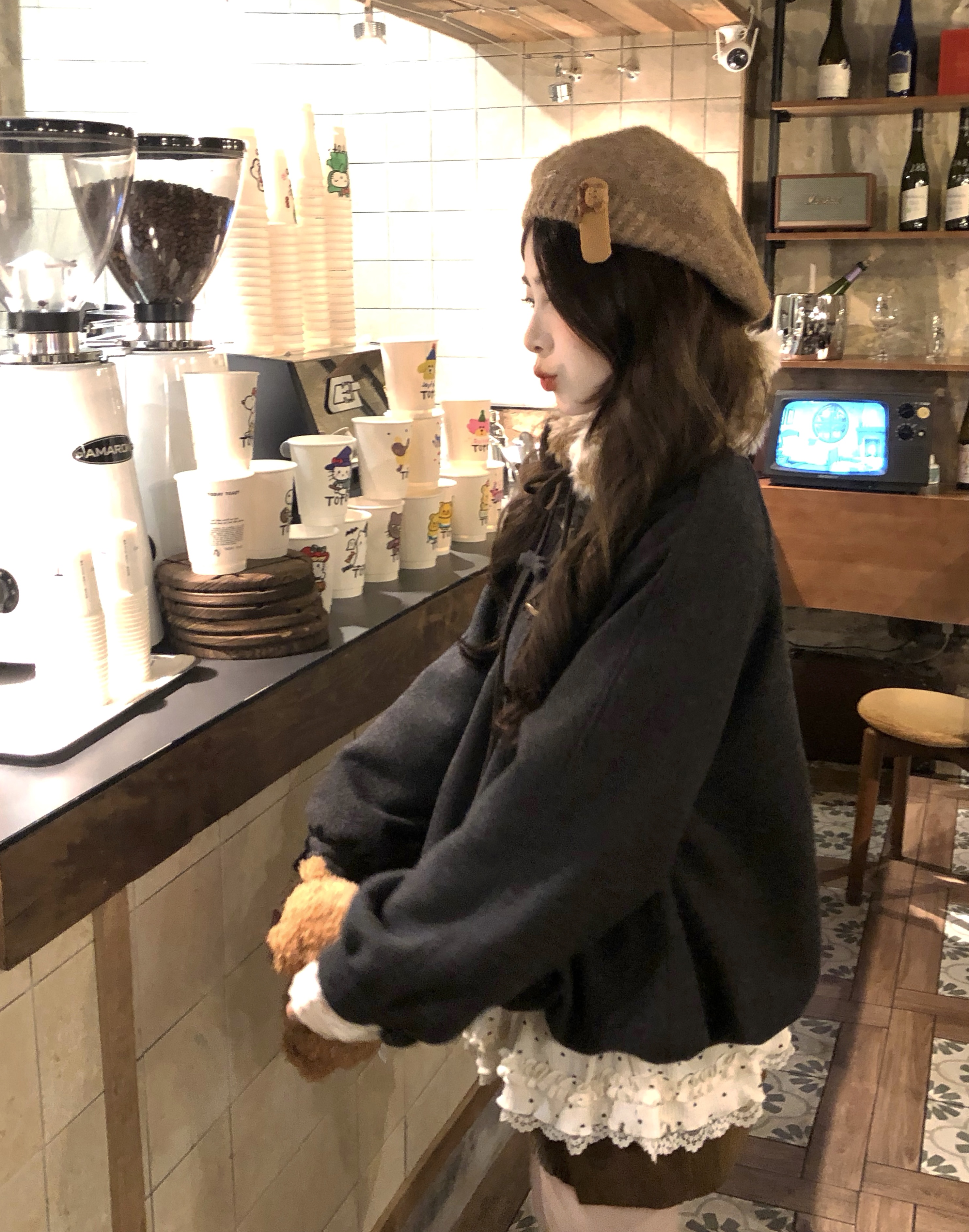 【Alittle Messy】 "Layered Style with a Vintage Feel: Furry Collar Cotton-Padded Jacket with Puff Sleeves and Vintage Style Padding Inside the Jacket
