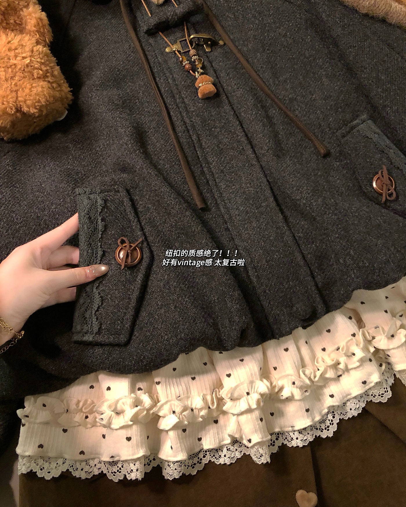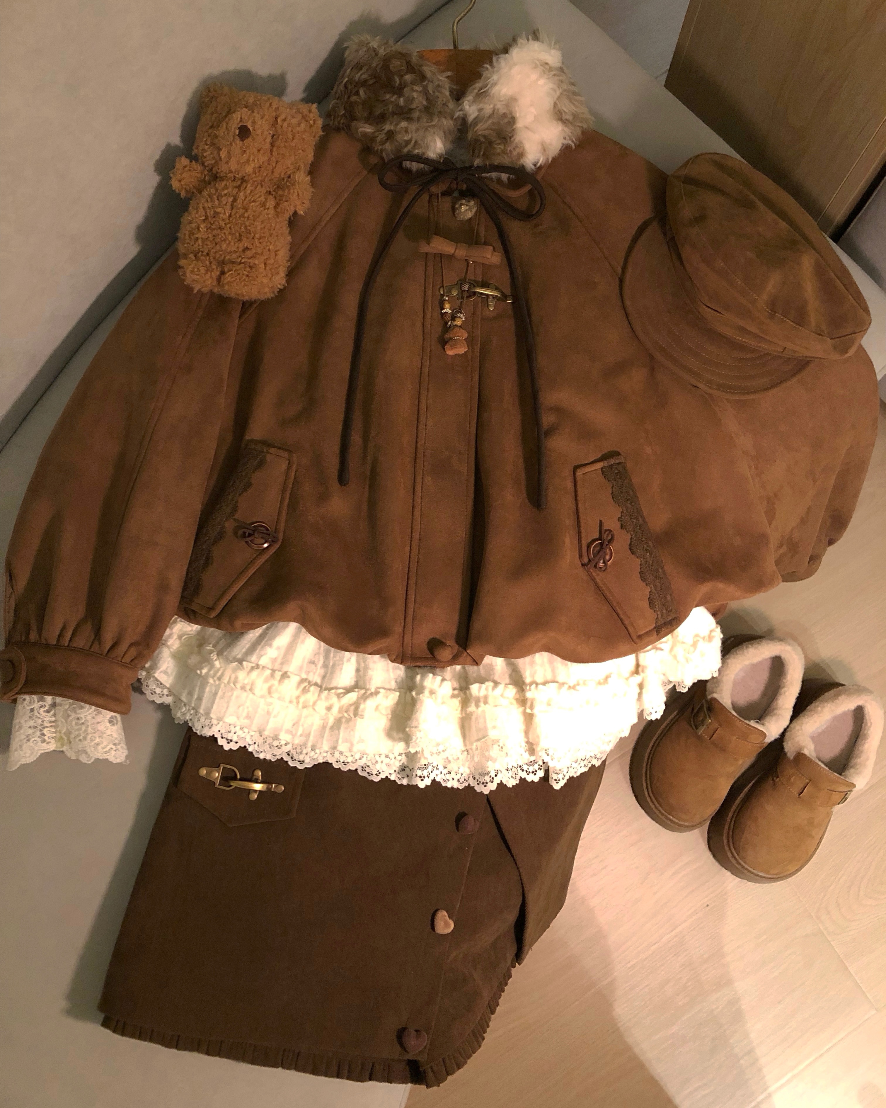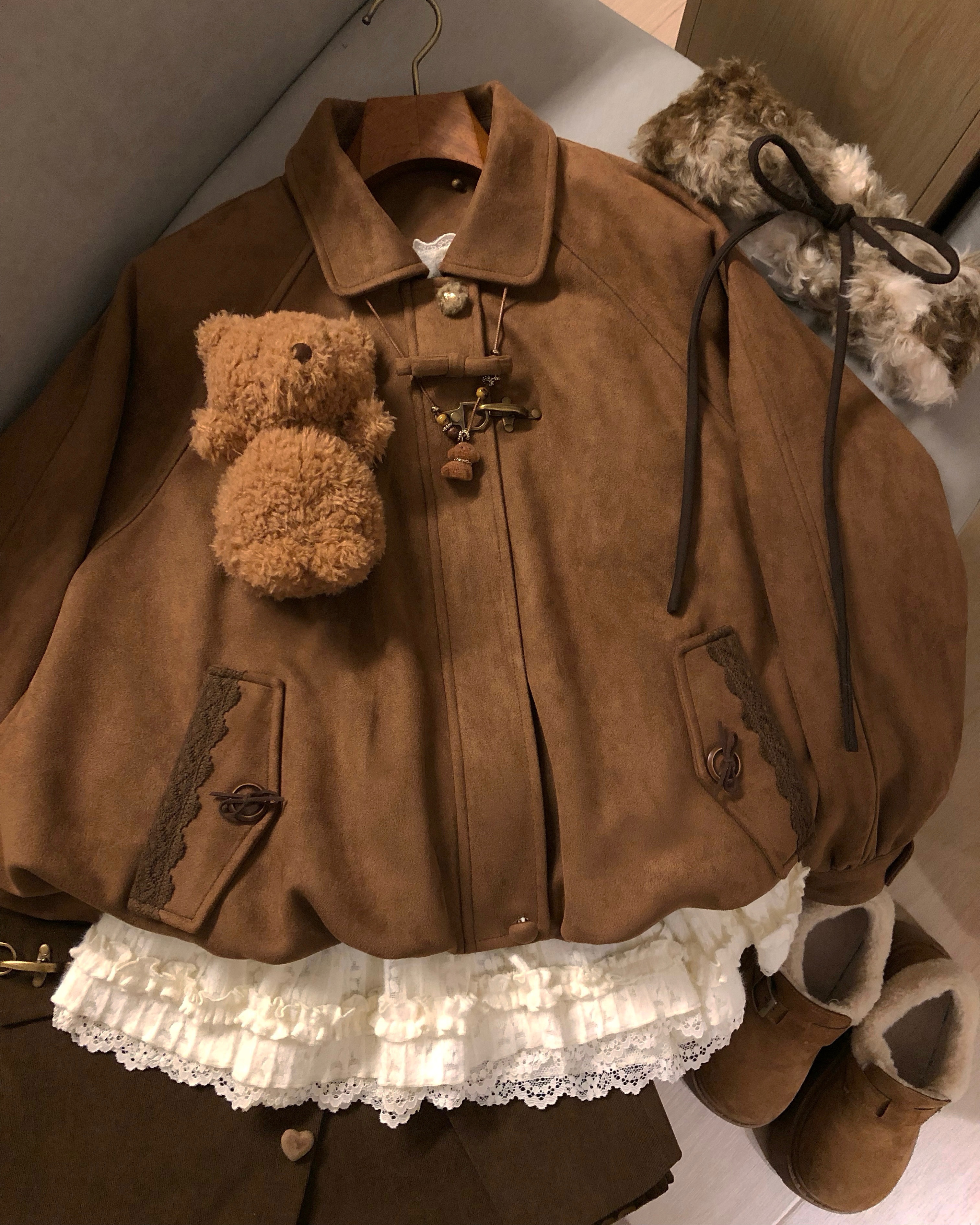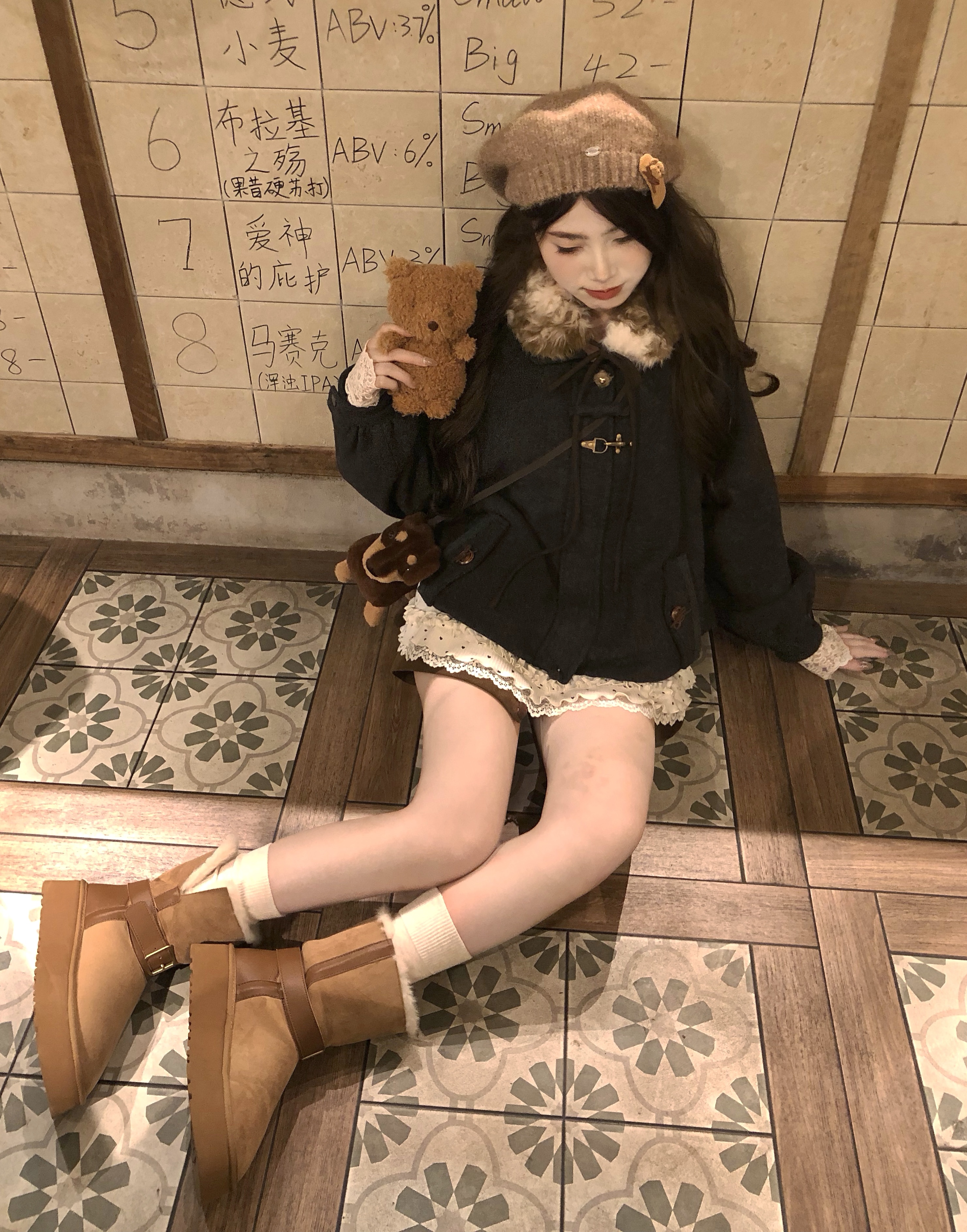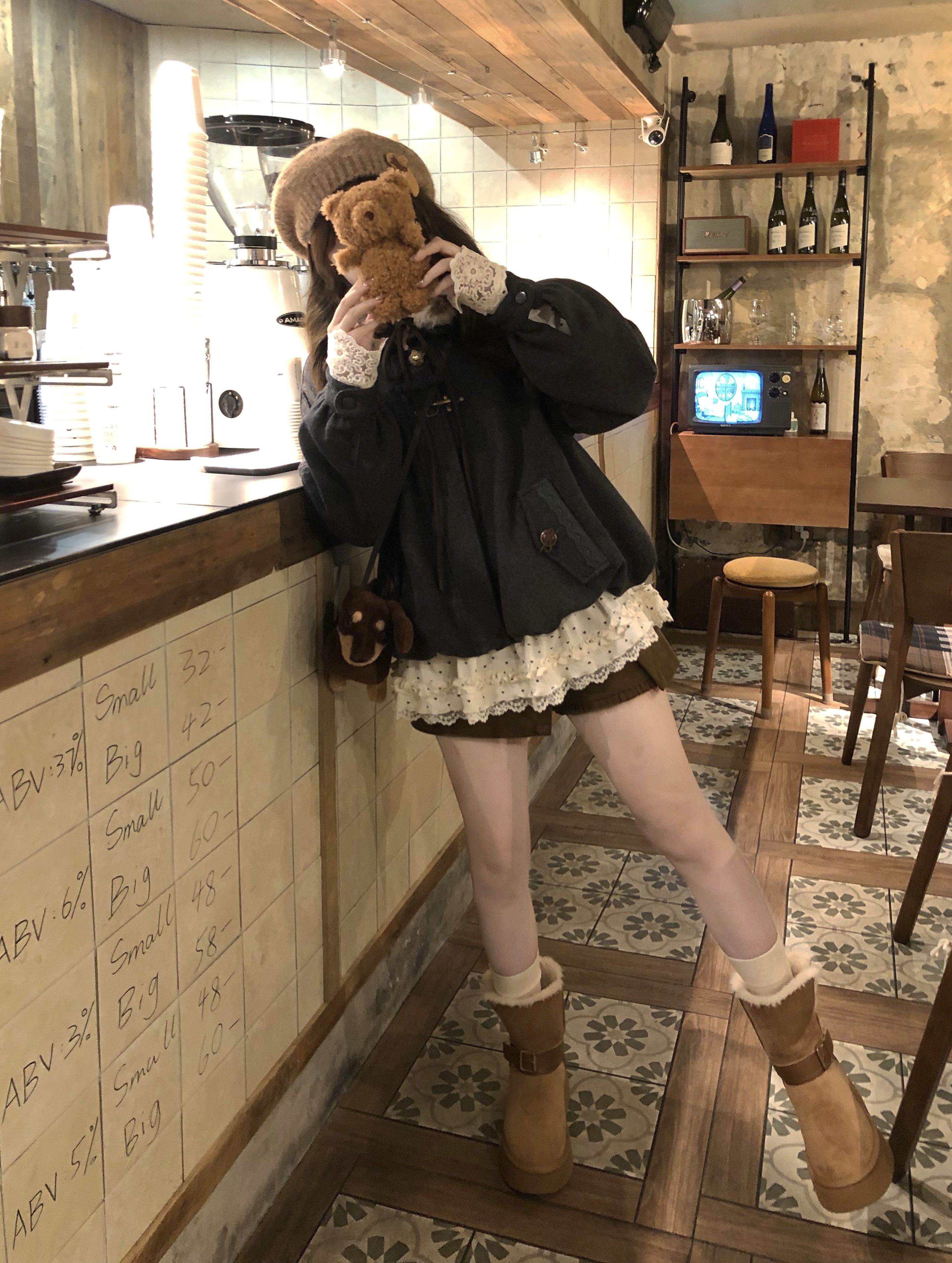 【Alittle Messy】 "Layered Style with a Vintage Feel: Furry Collar Cotton-Padded Jacket with Puff Sleeves and Vintage Style Padding Inside the Jacket