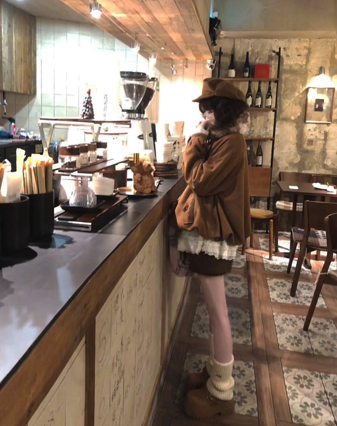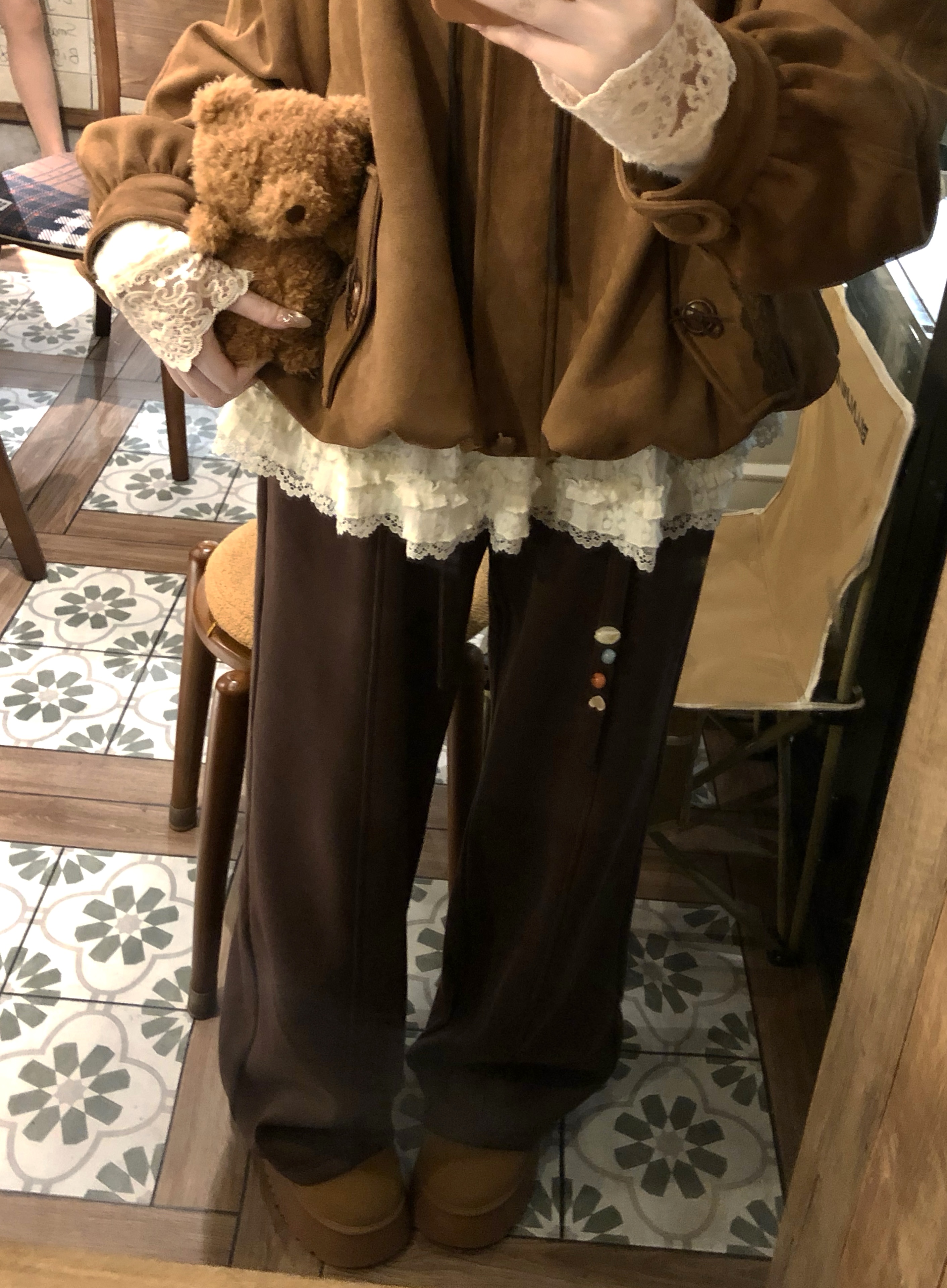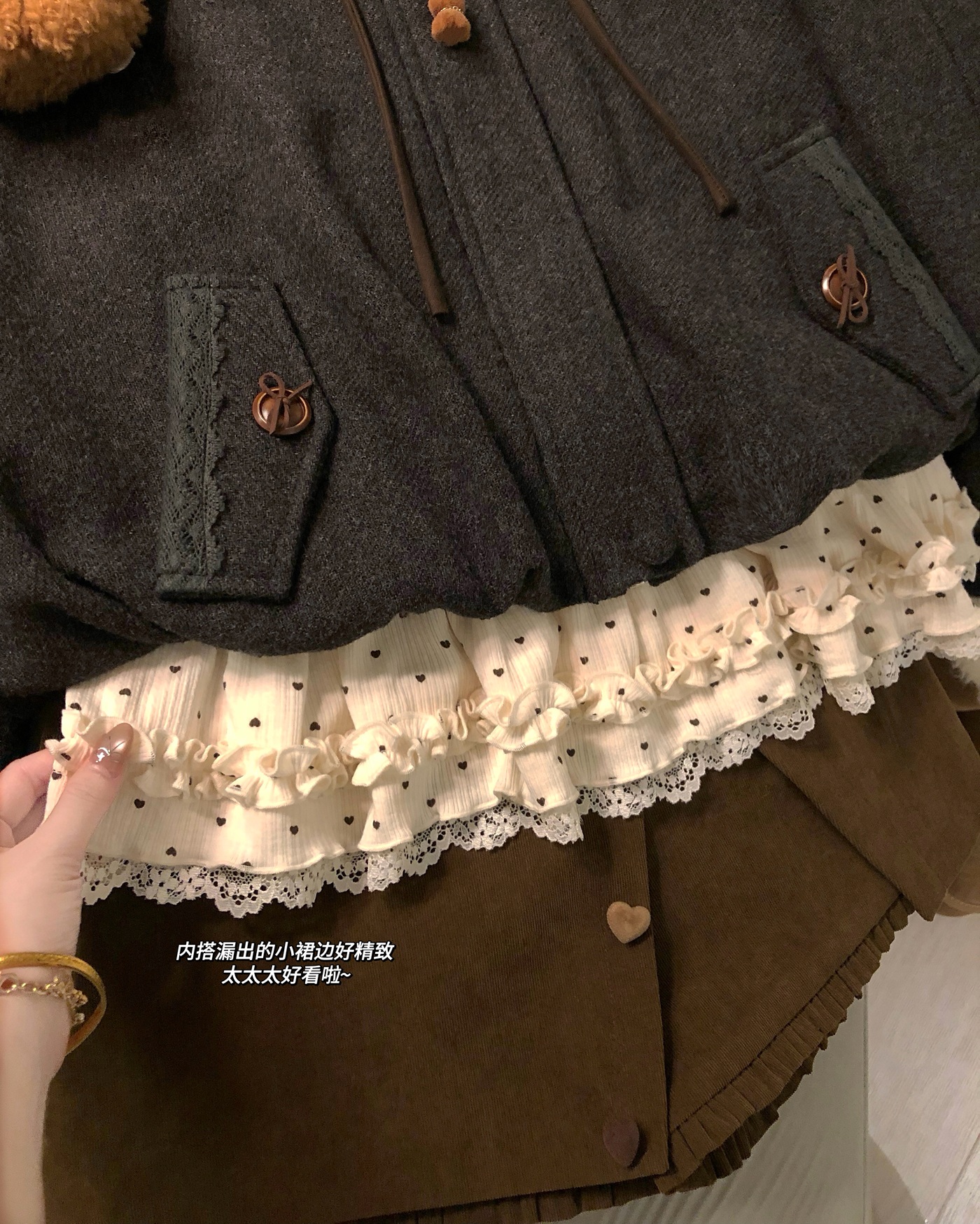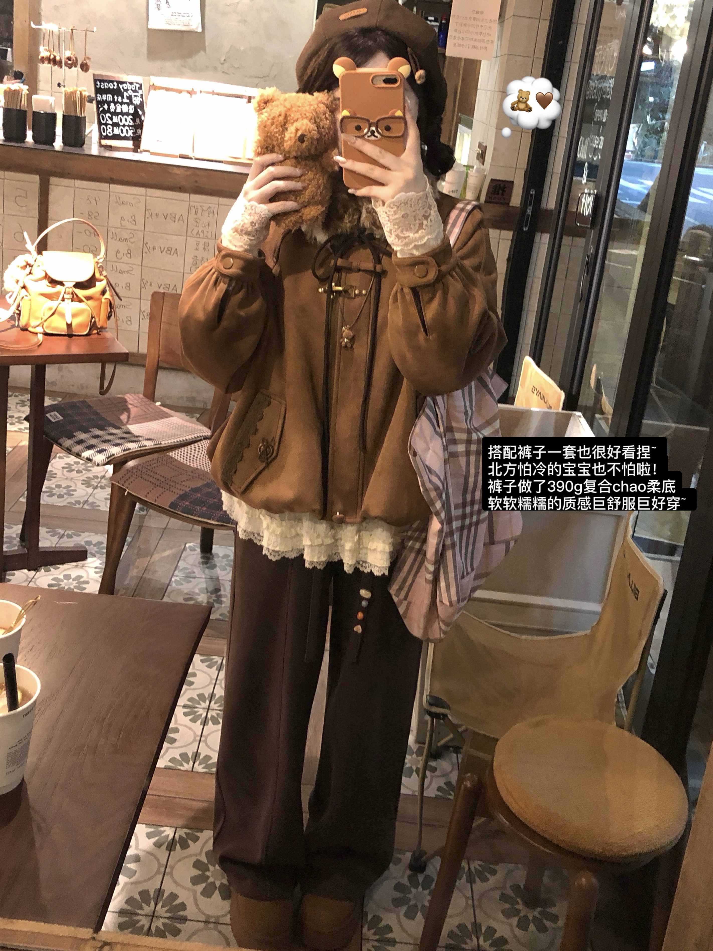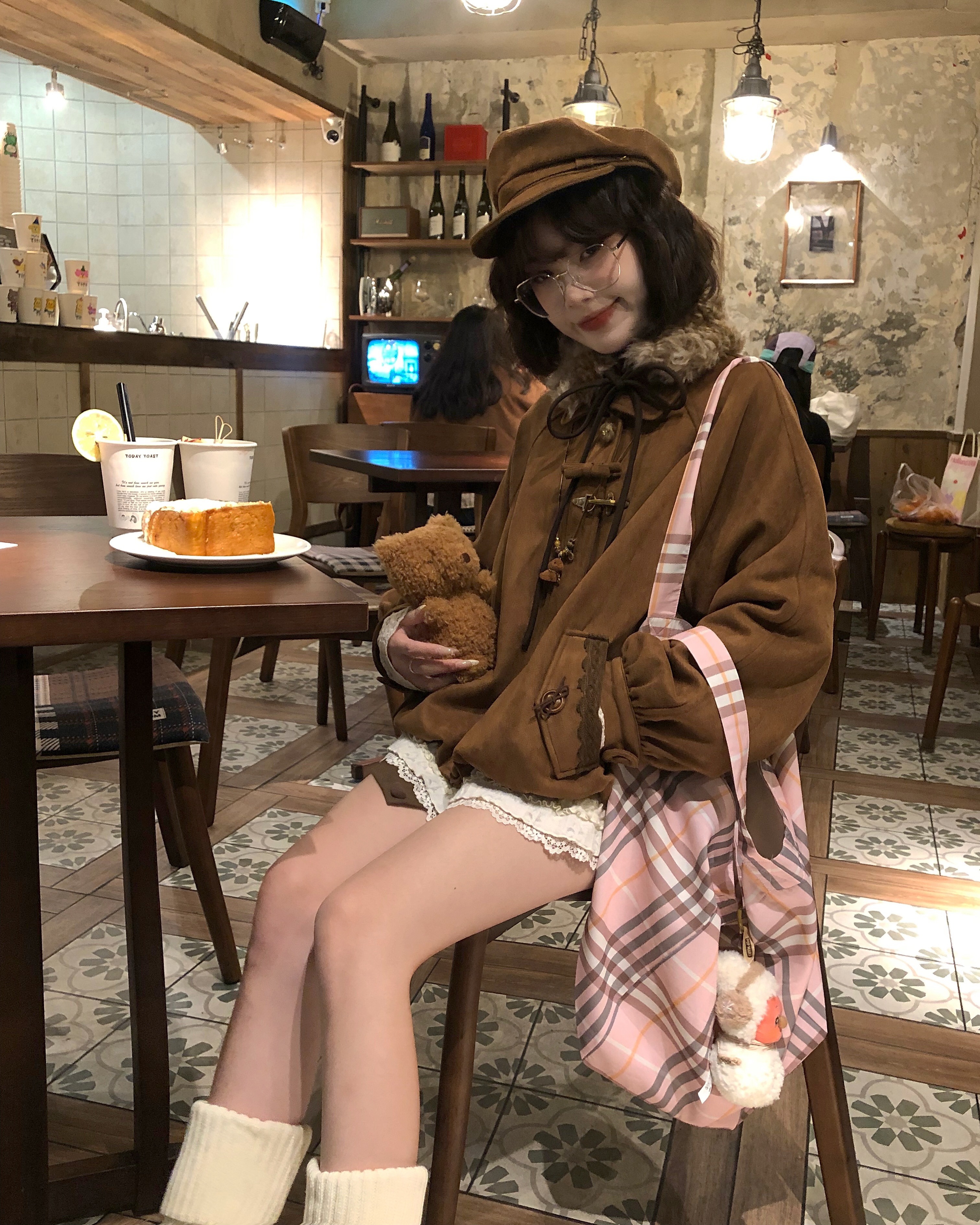 【Alittle Messy】 "Layered Style with a Vintage Feel: Furry Collar Cotton-Padded Jacket with Puff Sleeves and Vintage Style Padding Inside the Jacket