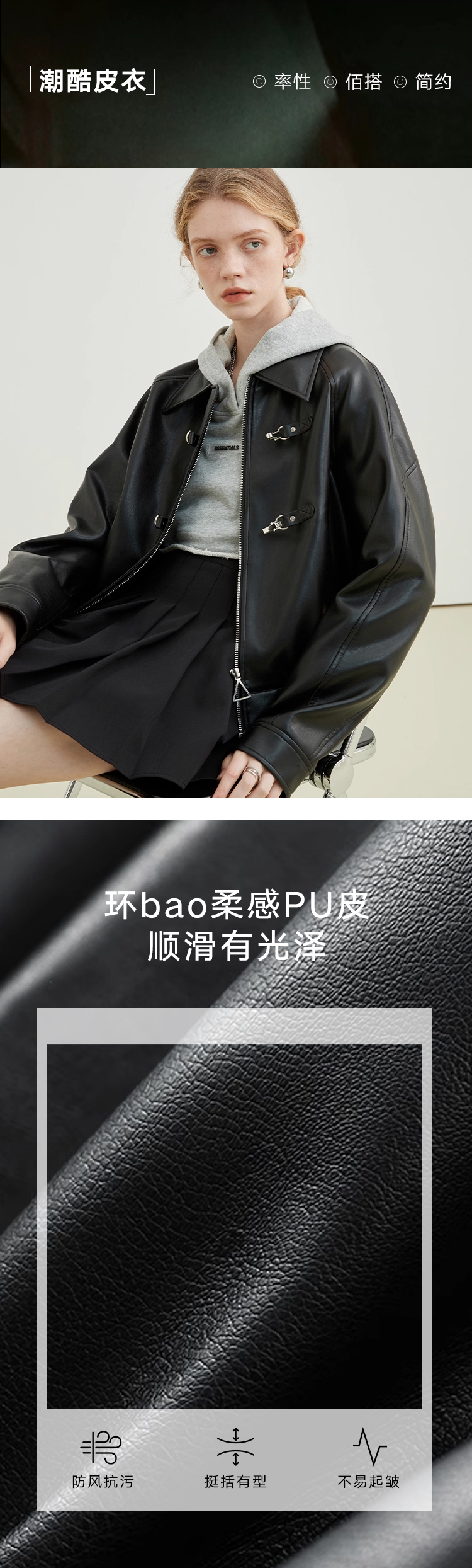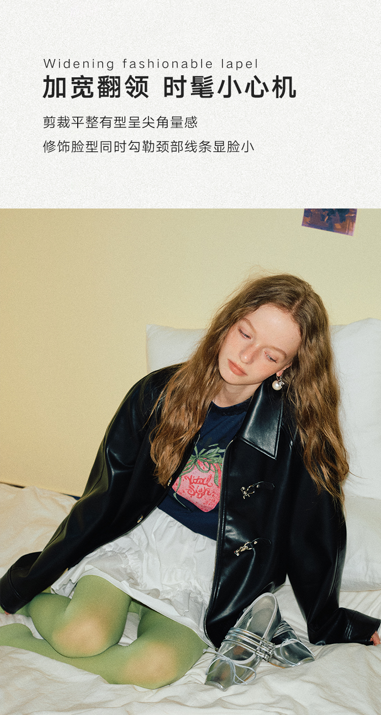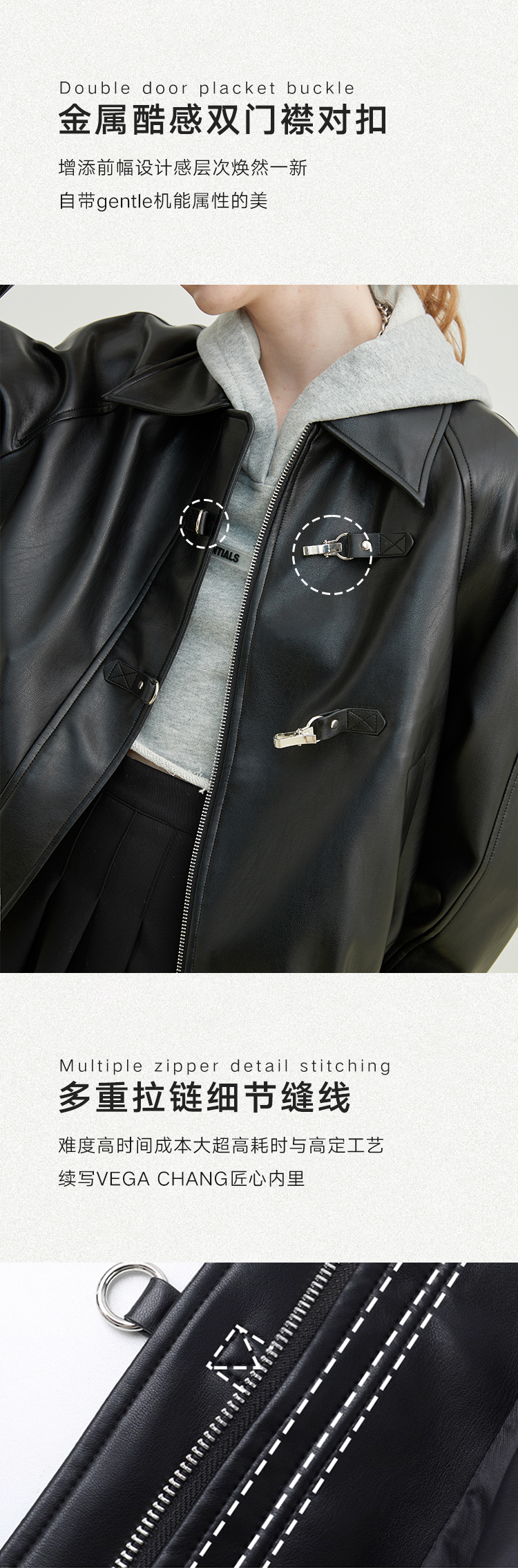 Vega Chang Motorcycle Leather Jacket for Women 2026 Spring New Korean Style Bf Style Buckle Pu Leather Jacket Coat