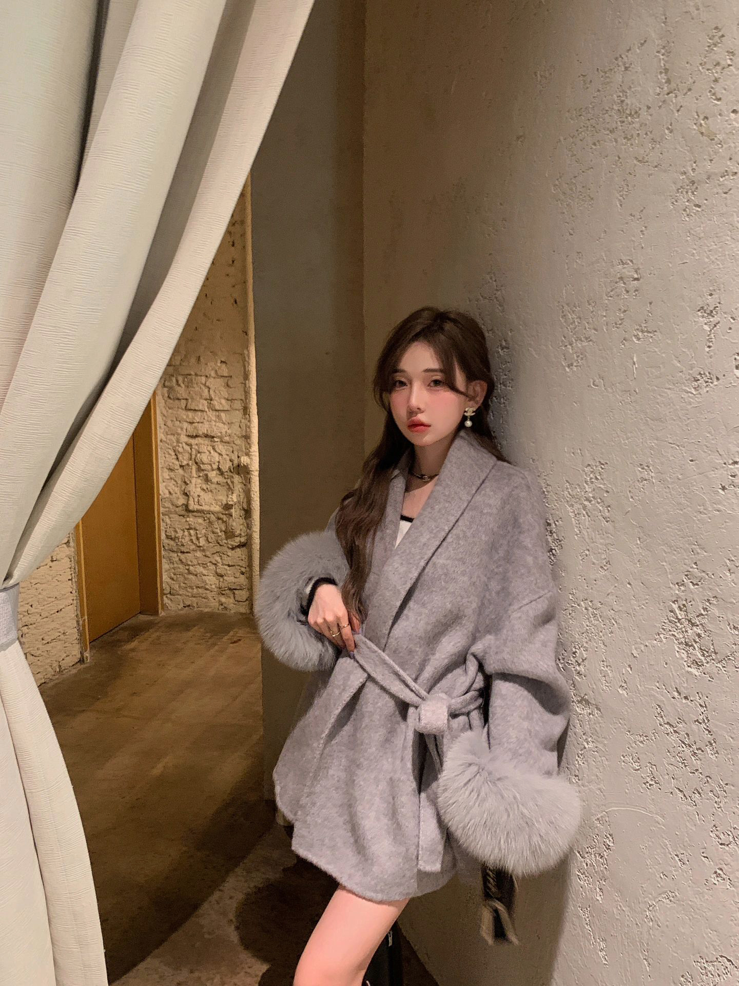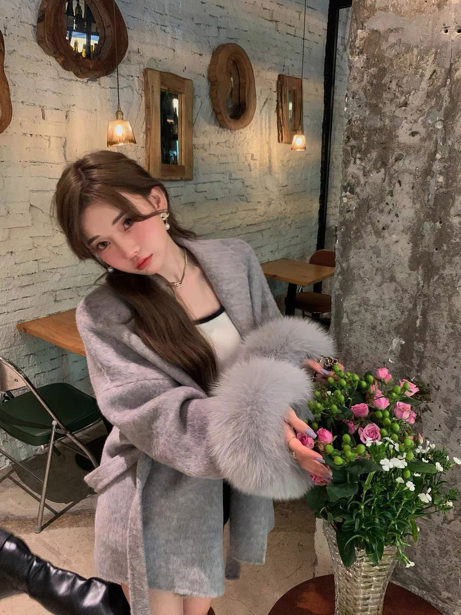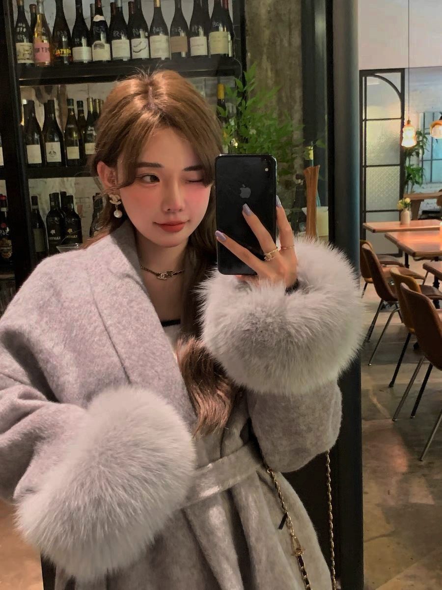 袖口的狐狸毛臻选丰盈的进口狐狸背毛