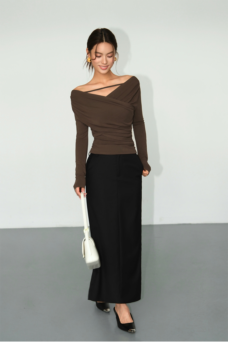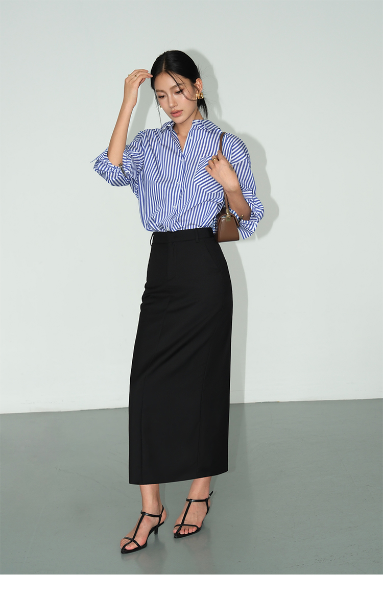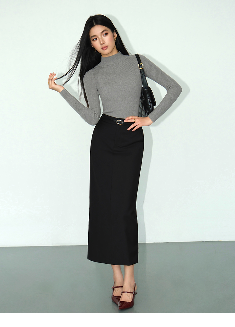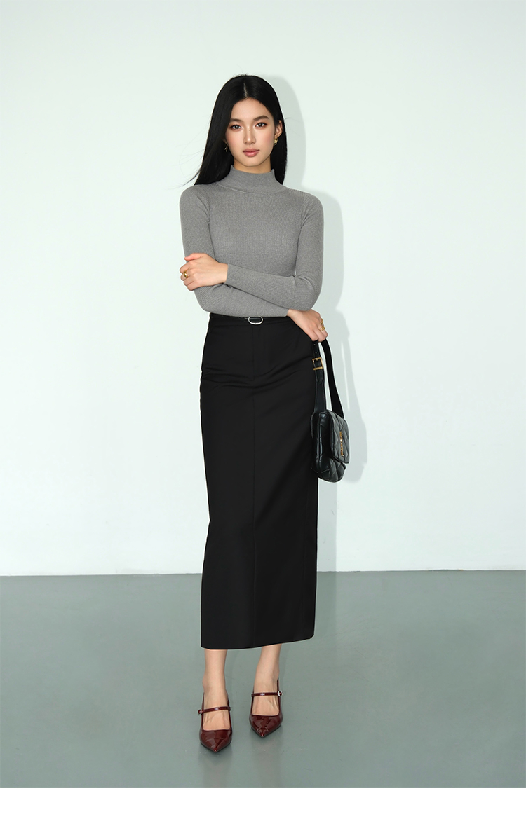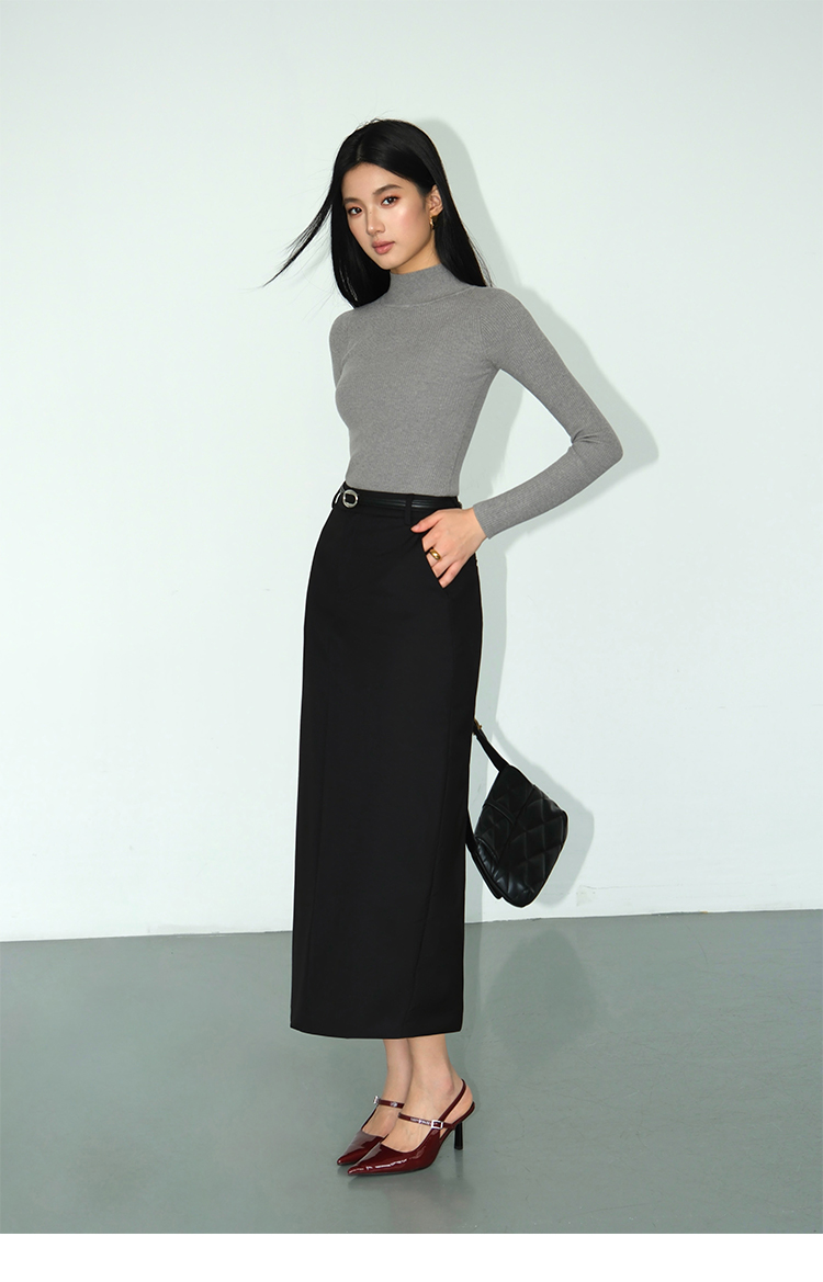 Neva Hu Black High-Waisted Skirt for Women, High-End and Elegant Straight-Cut Slit Suit Skirt, Hip-Hugging Skirt