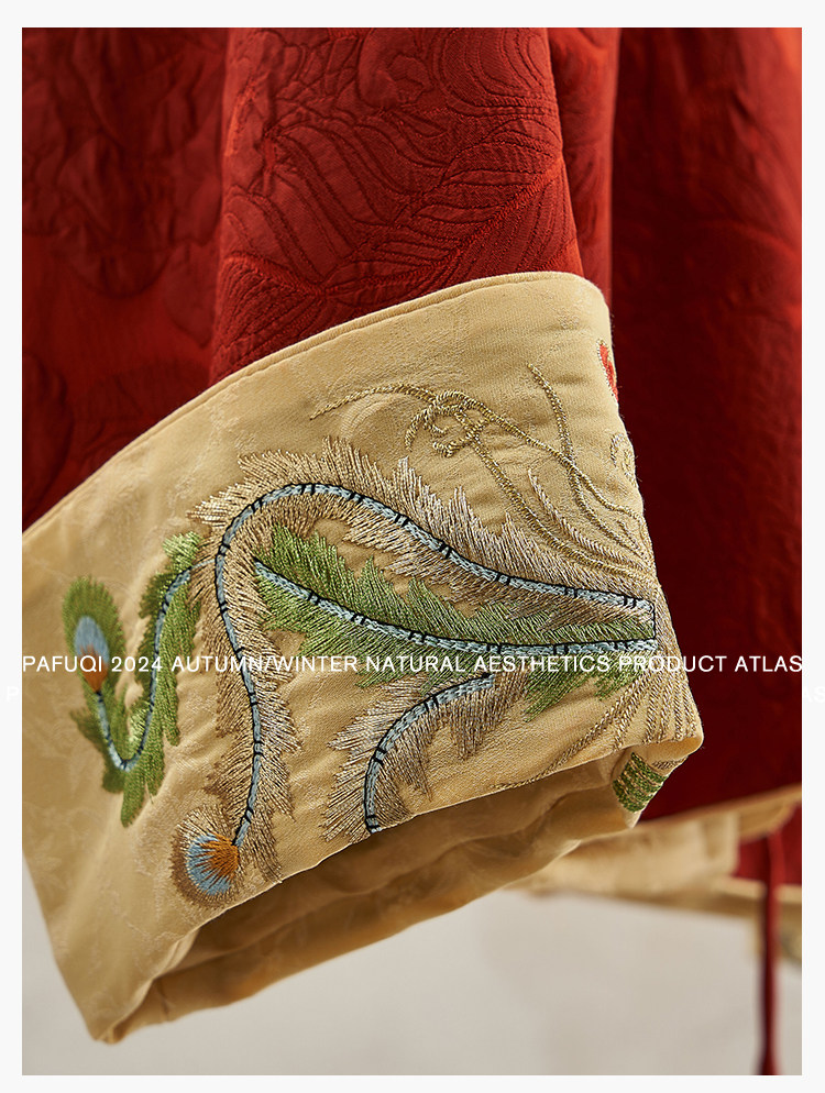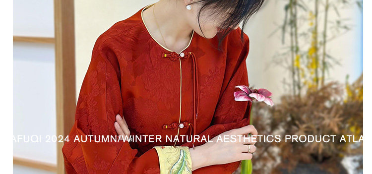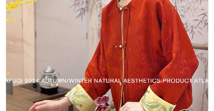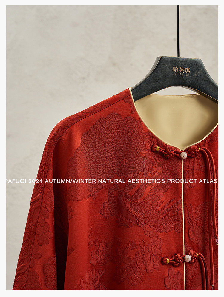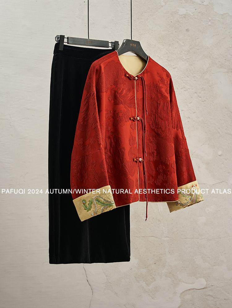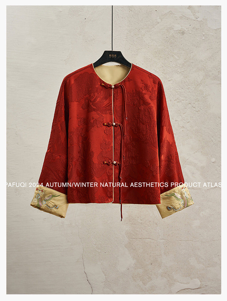 New Chinese-Style Red Jacket with Button Placket, Round Neck, Embroidery, Traditional Chinese Style Tang Suit Top, 2025 Autumn Collection, Year of the Snake, Zodiac Year Clothing
