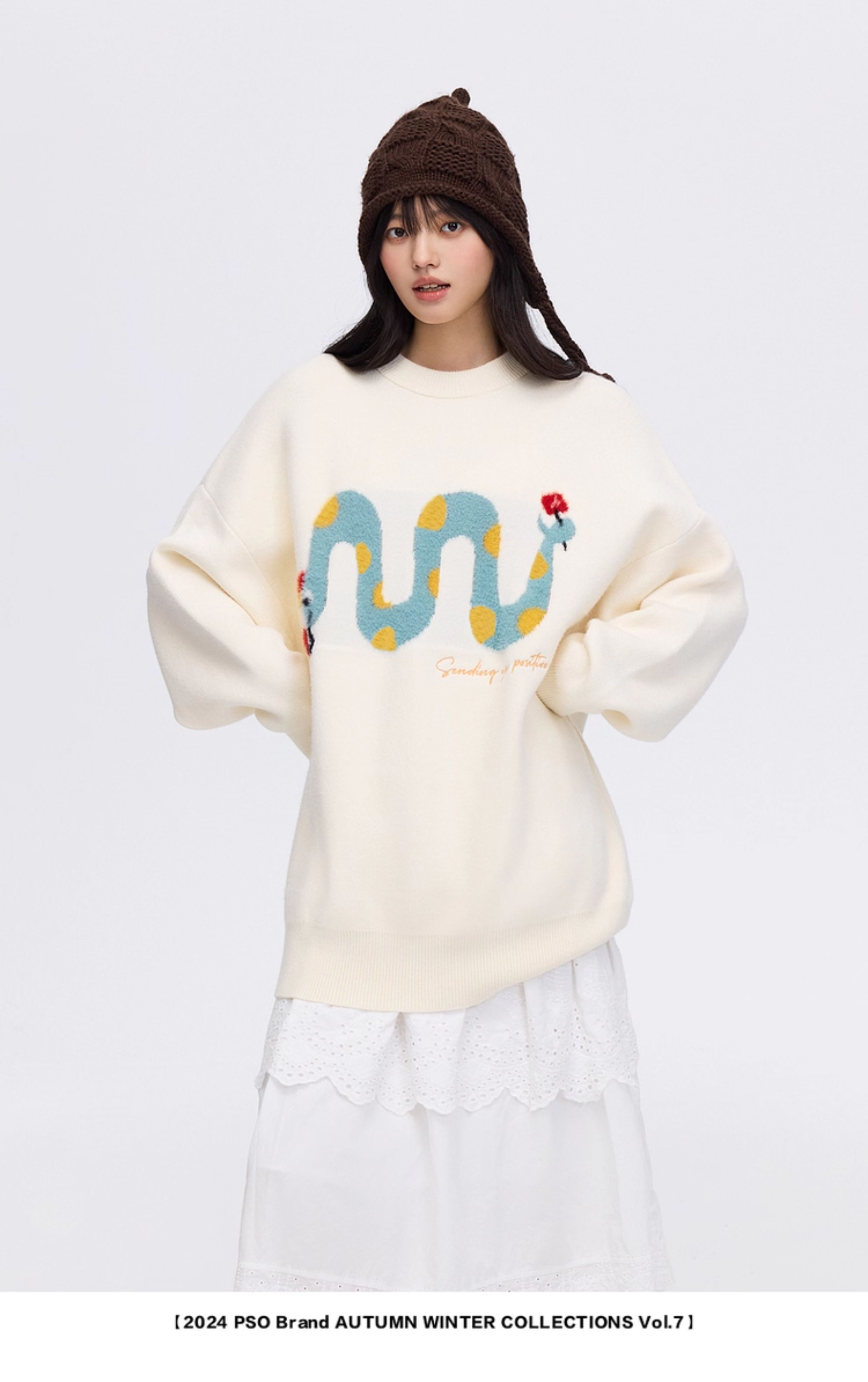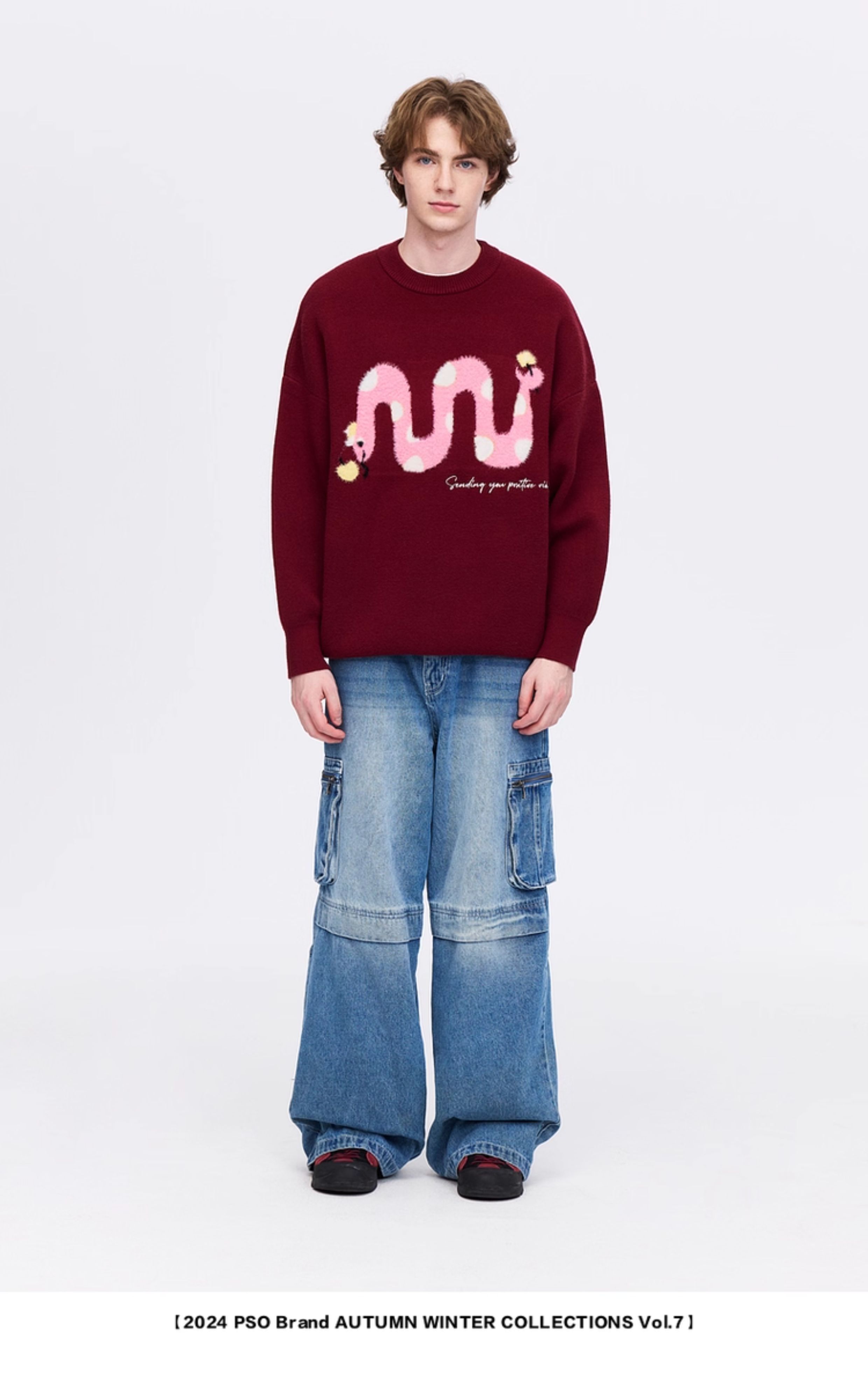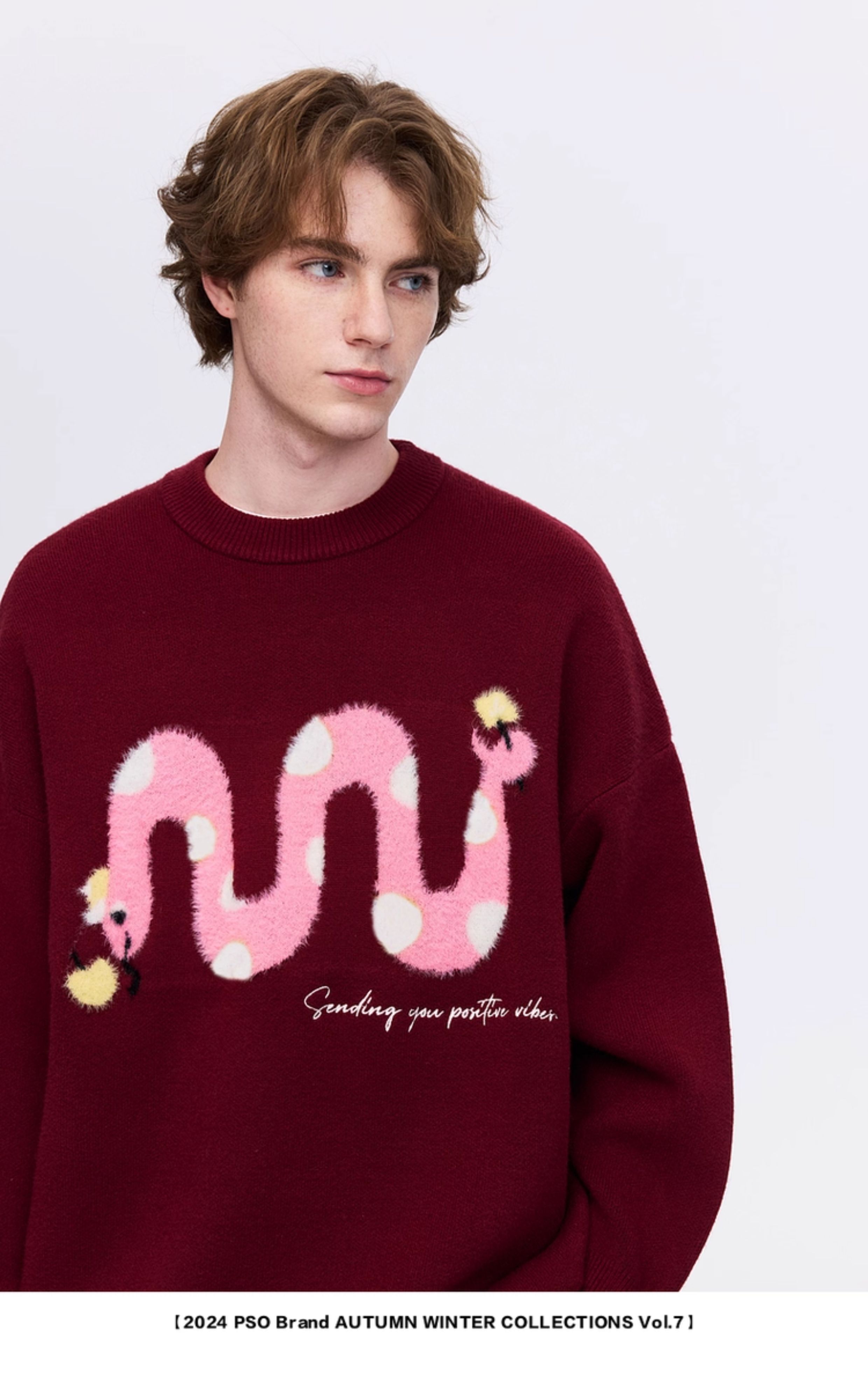 Pso Brand Men's and Women's Clothing, Snake Jacquard Sweater, Fun Red Knitwear, Autumn and Winter Base Layer Top