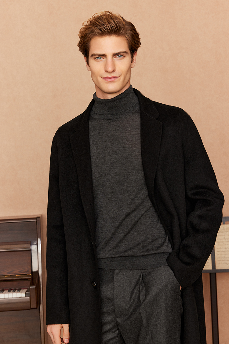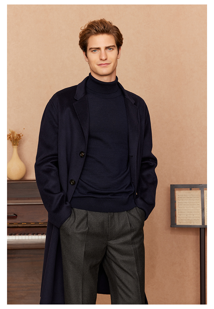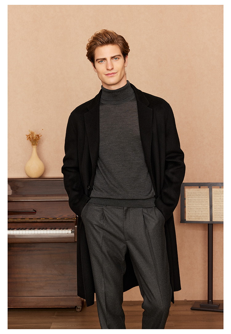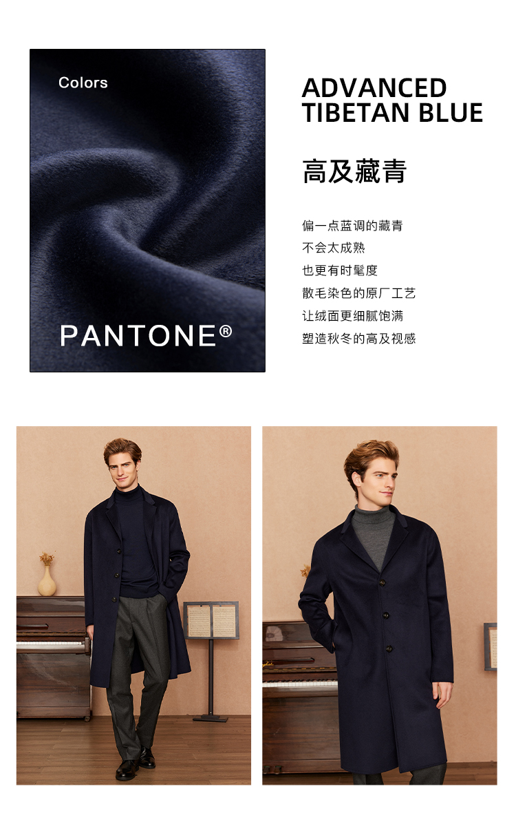 主推的10%嵿级羊绒大衣系列,面料采自YI线大衣的合作供应商,