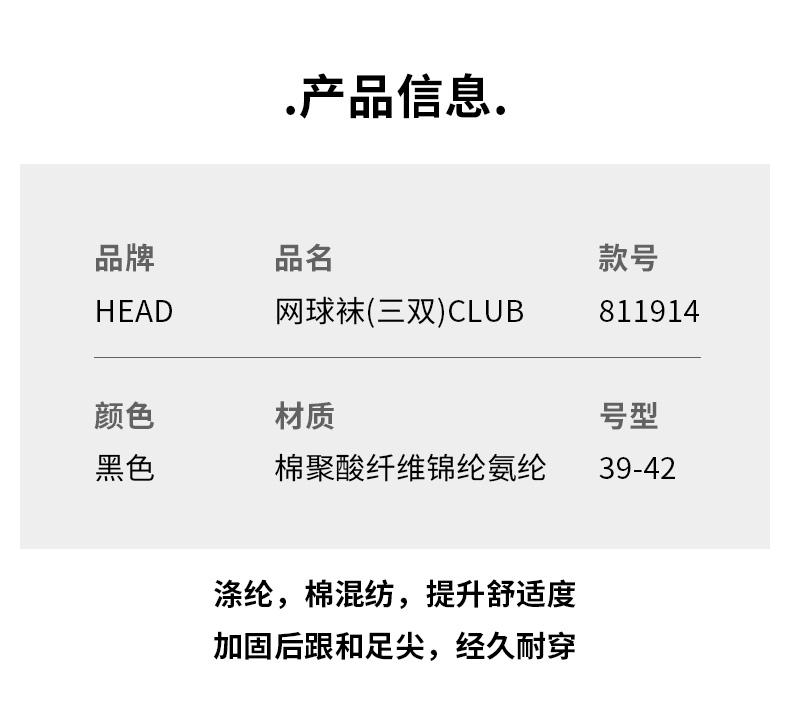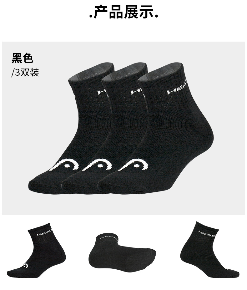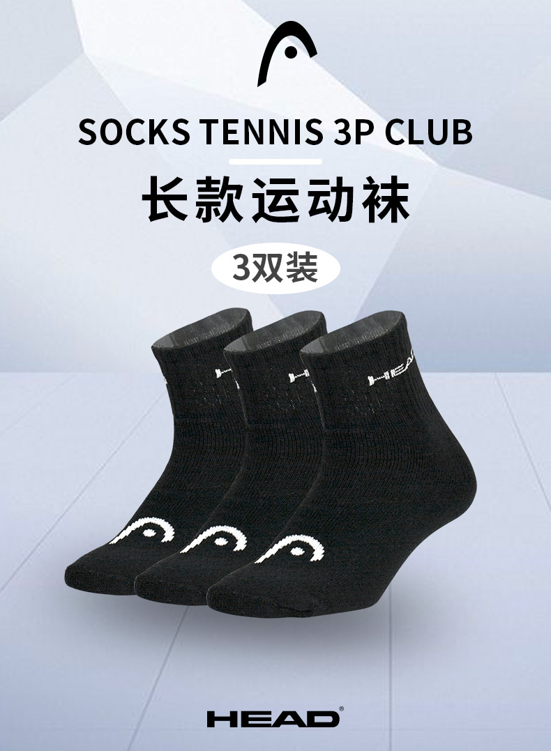 New Head Tennis Socks Mid-Calf Length Unisex Head Short Socks Sweat-Absorbent Professional Sports Socks Thickened