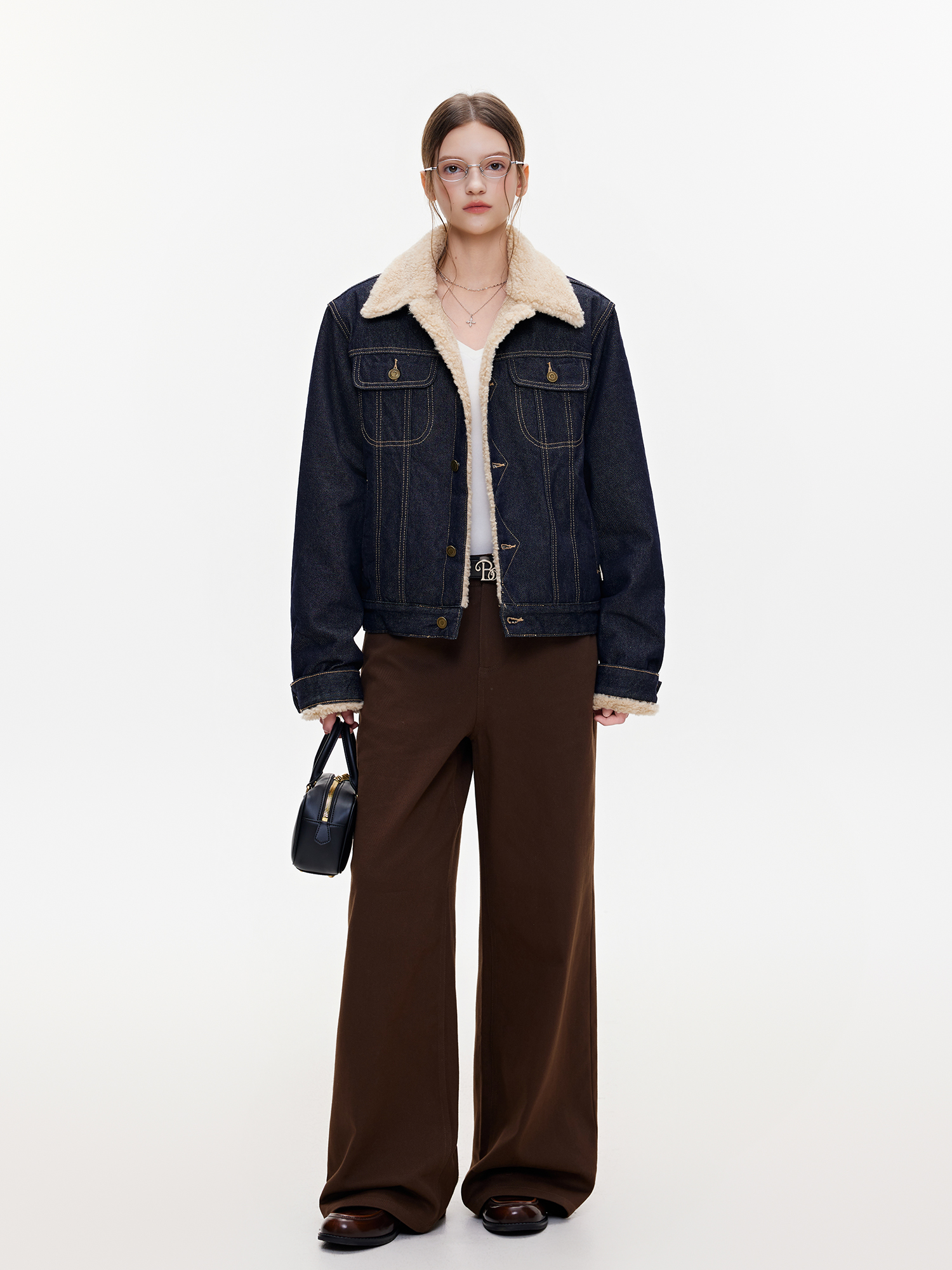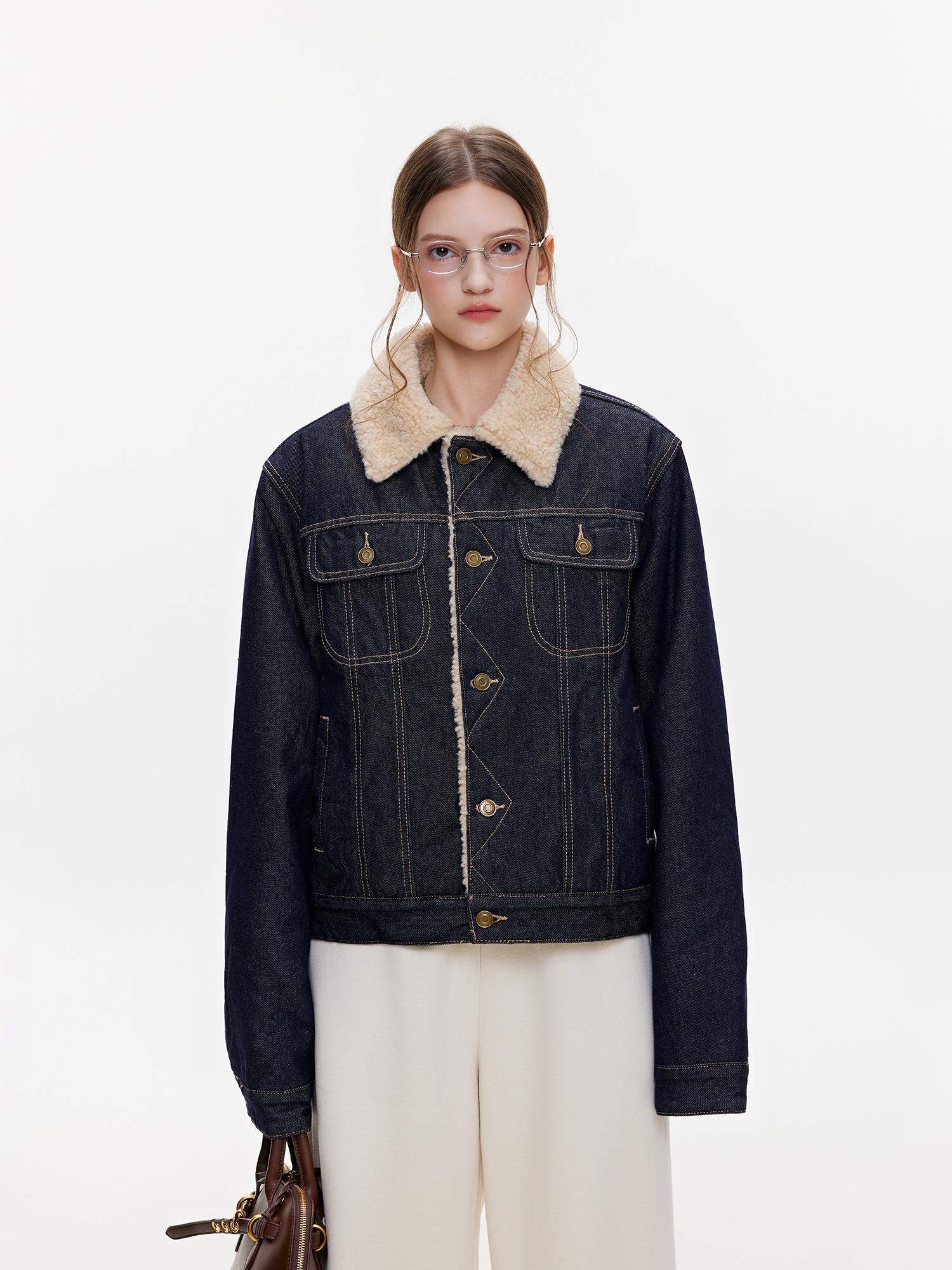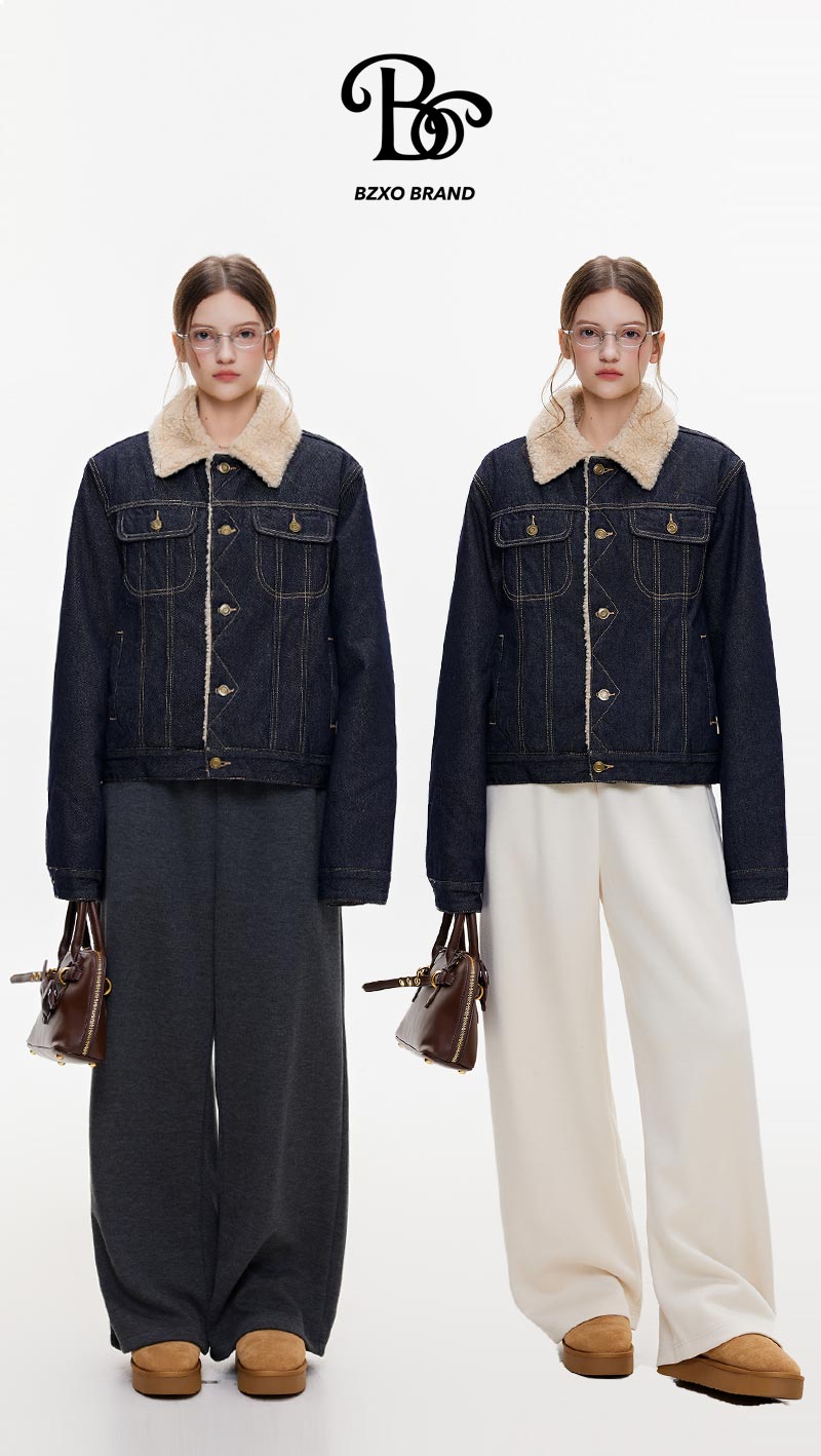 Bzxo High-End Denim Lamb Wool Jacket for Women, New Winter Style, Fleece-Lined, Thickened, Loose-Fitting, Slimming Jacket