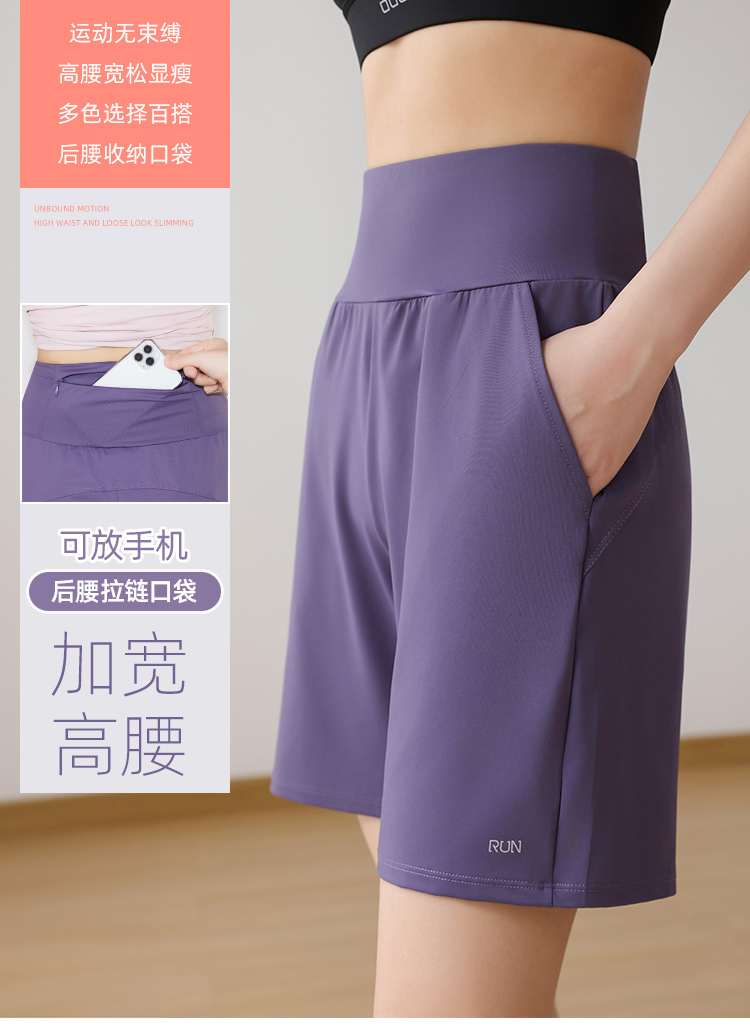 Women's Athletic Shorts with Pockets, Professional Fitness, Loose Fit, Morning Running, Quick-Drying, Mid-Length, High-Waisted Yoga Shorts, Summer