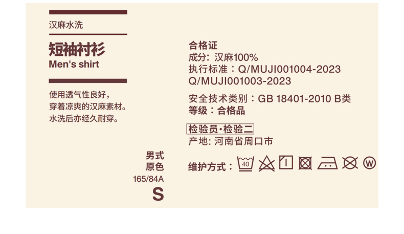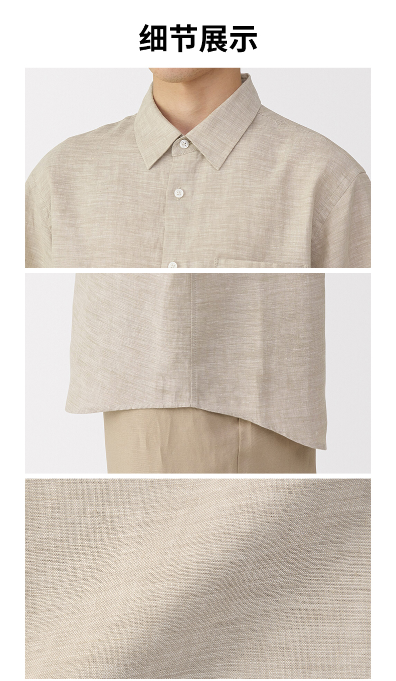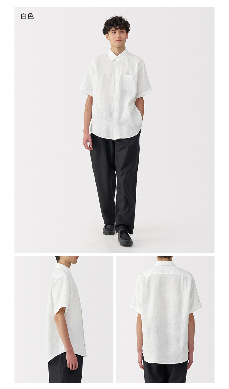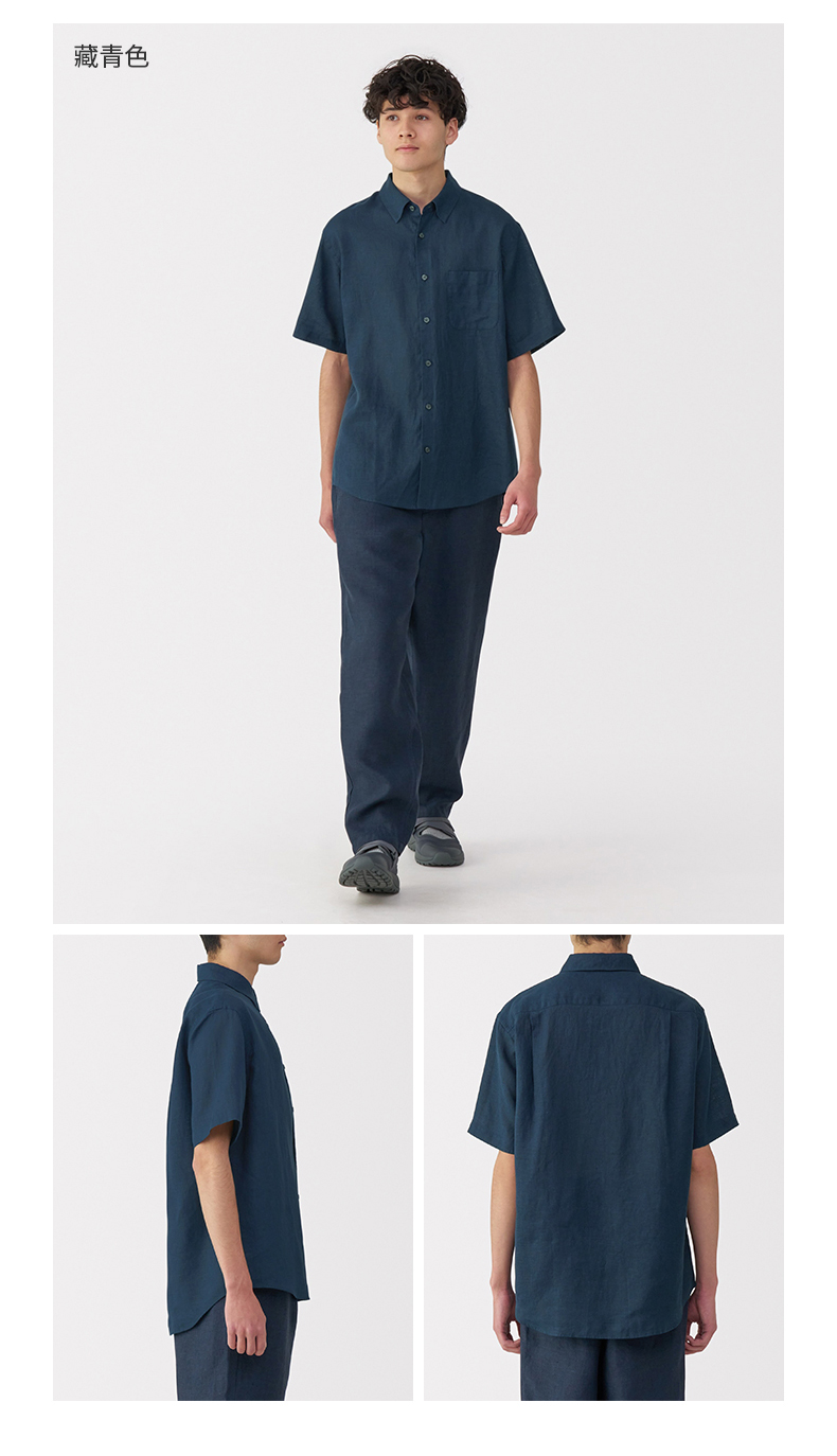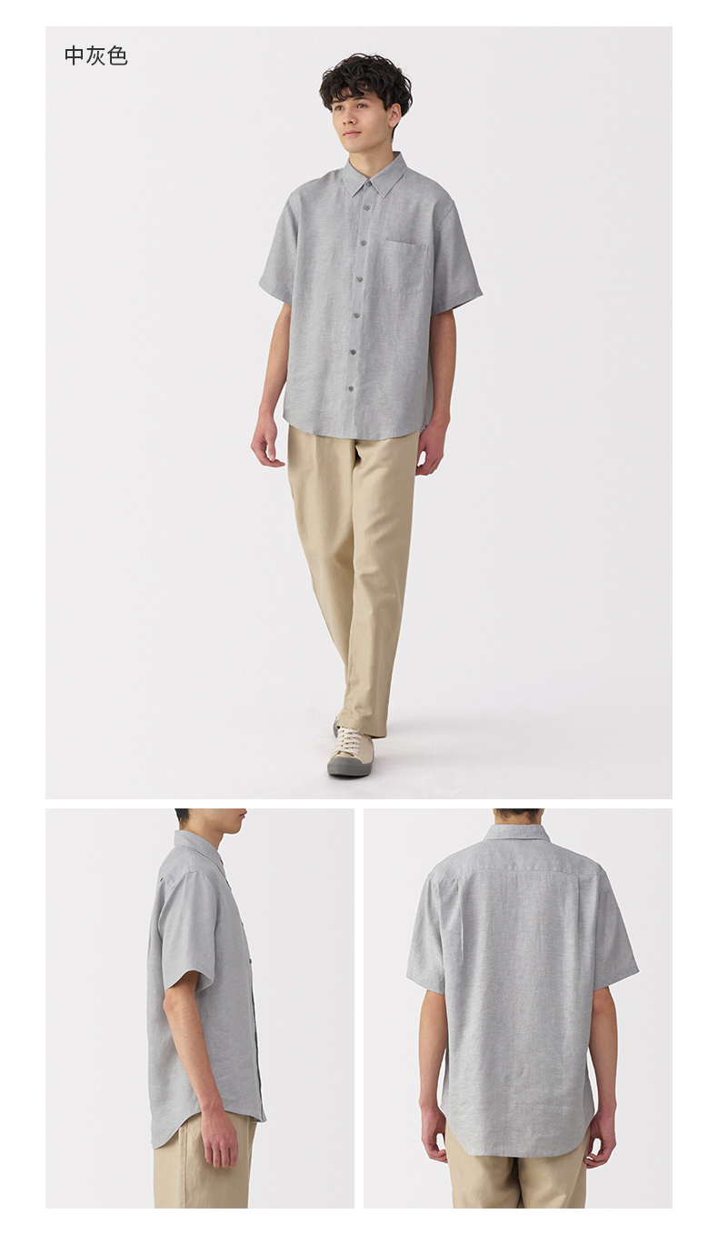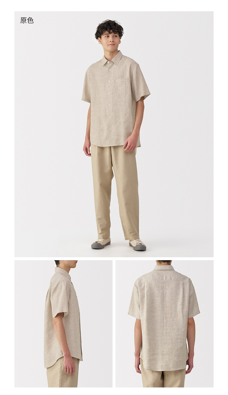 Muji Men's Hemp Washed Short-Sleeve Shirt Men's Shirt 25Th Summer Men's Top