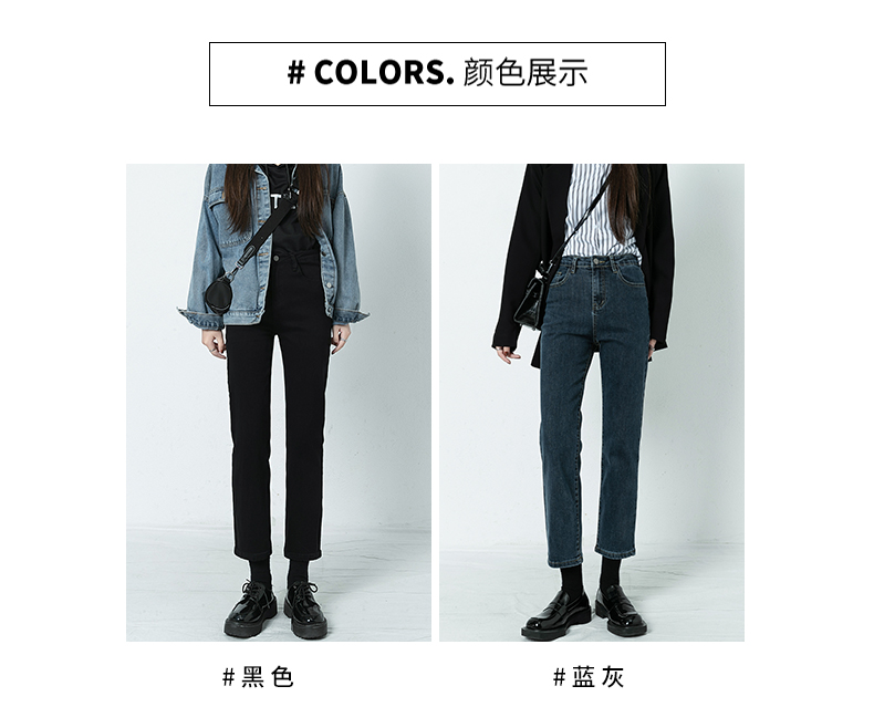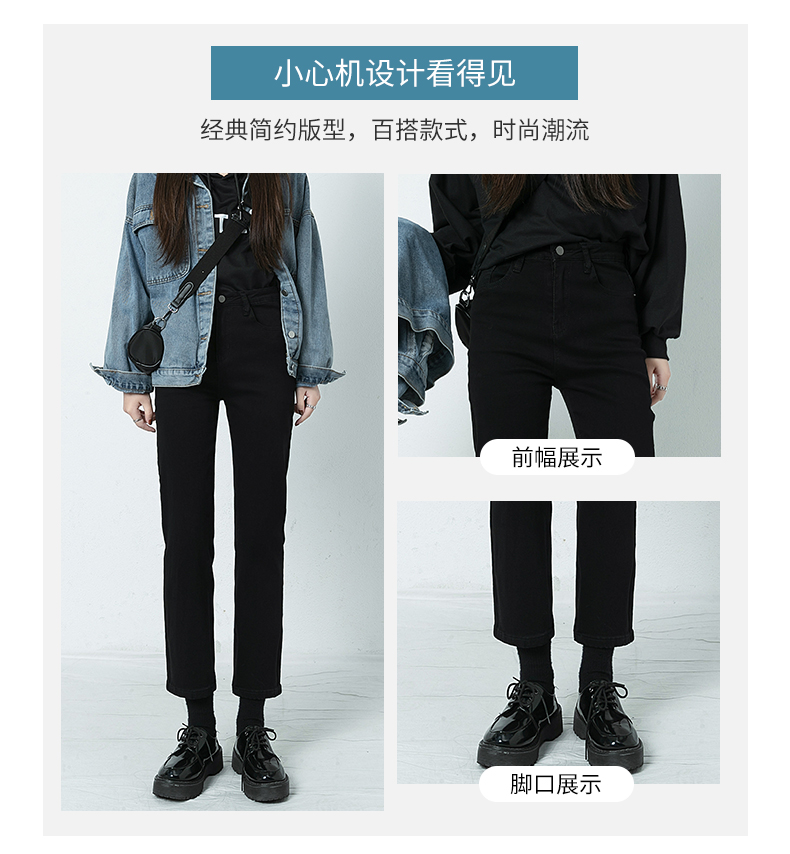 Black Cropped Straight-Leg Fleece-Lined Jeans for Women, 2025 Winter New Popular Style, Petite Slim-Fit Cigarette Pants