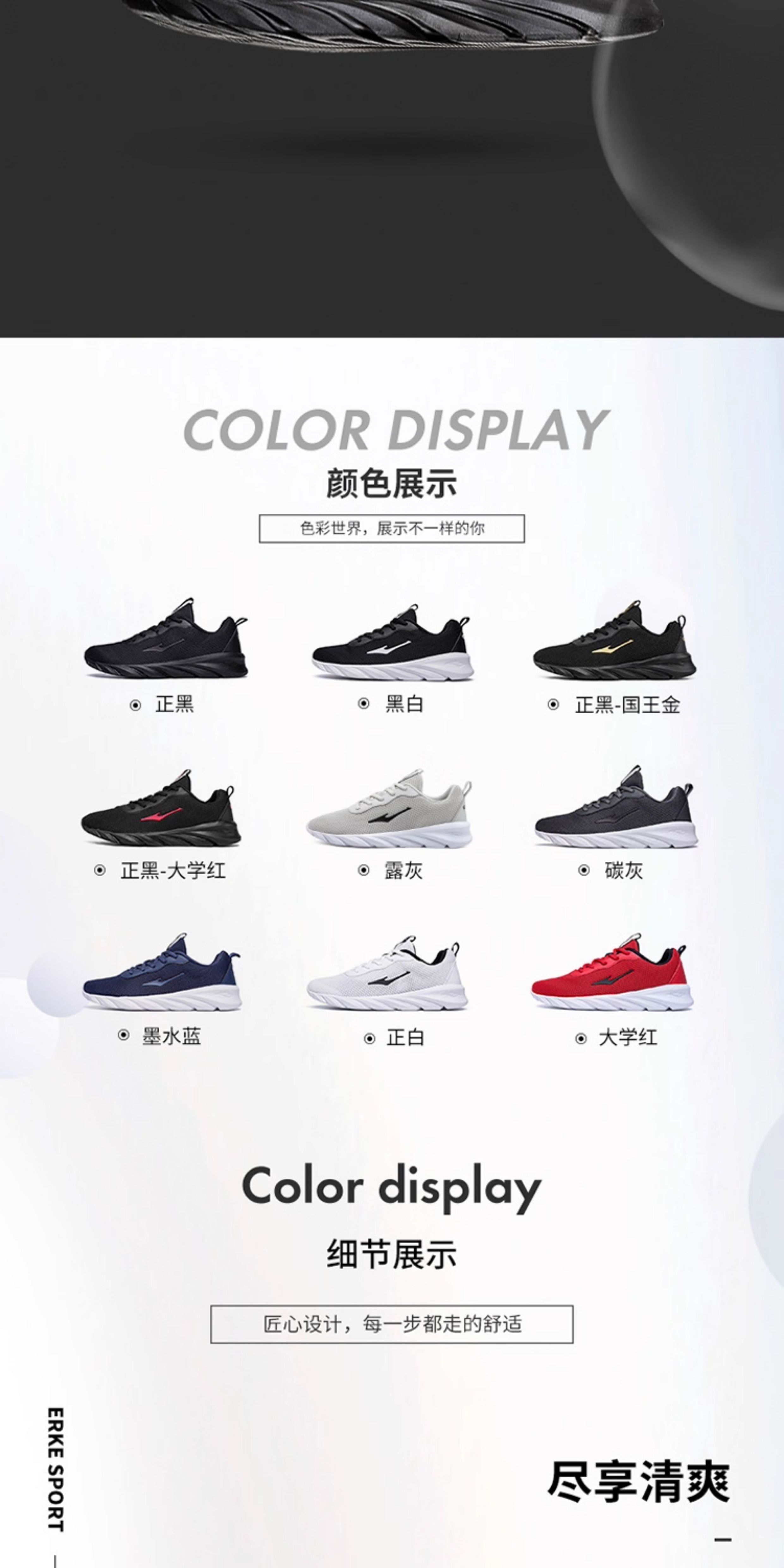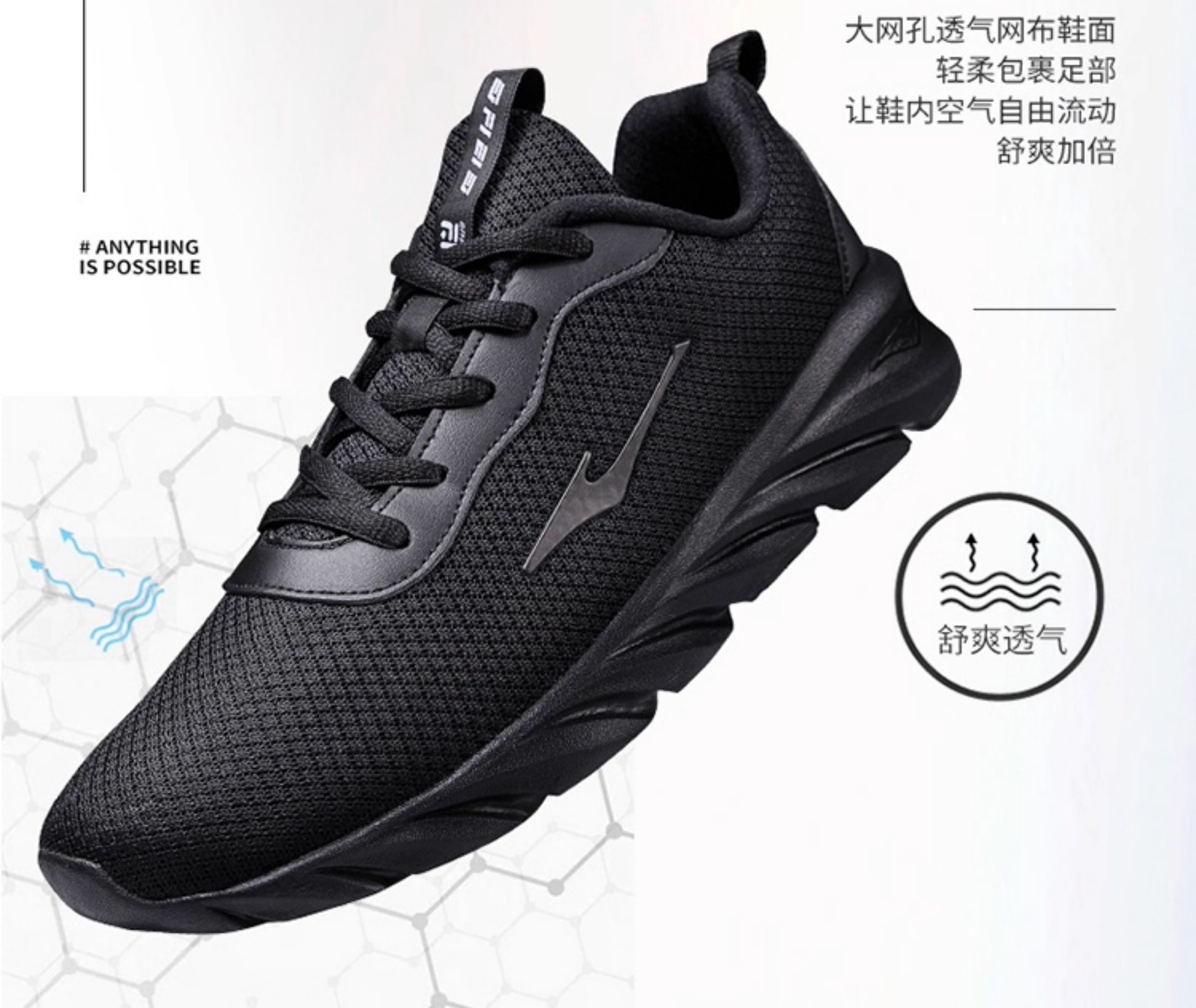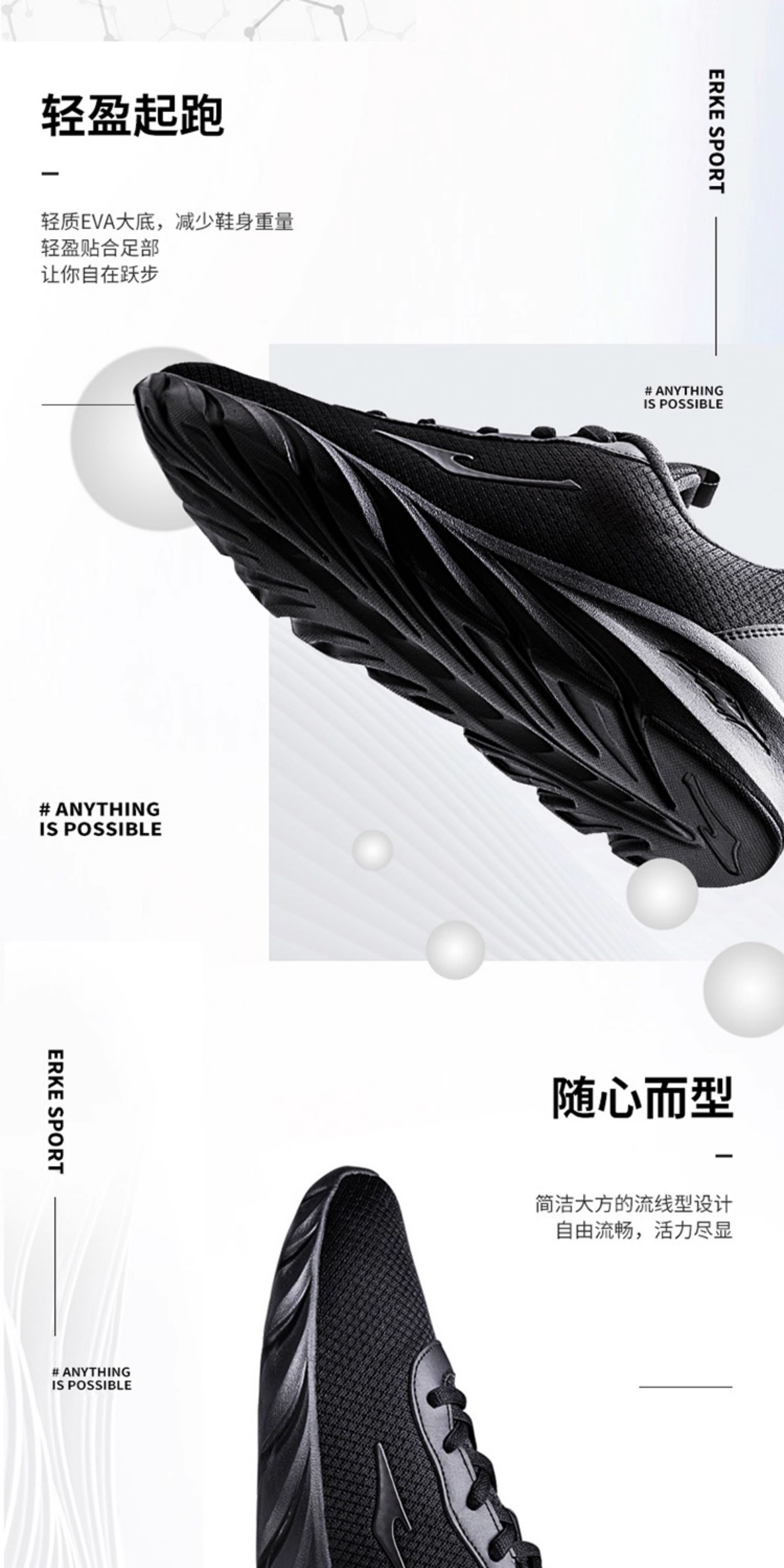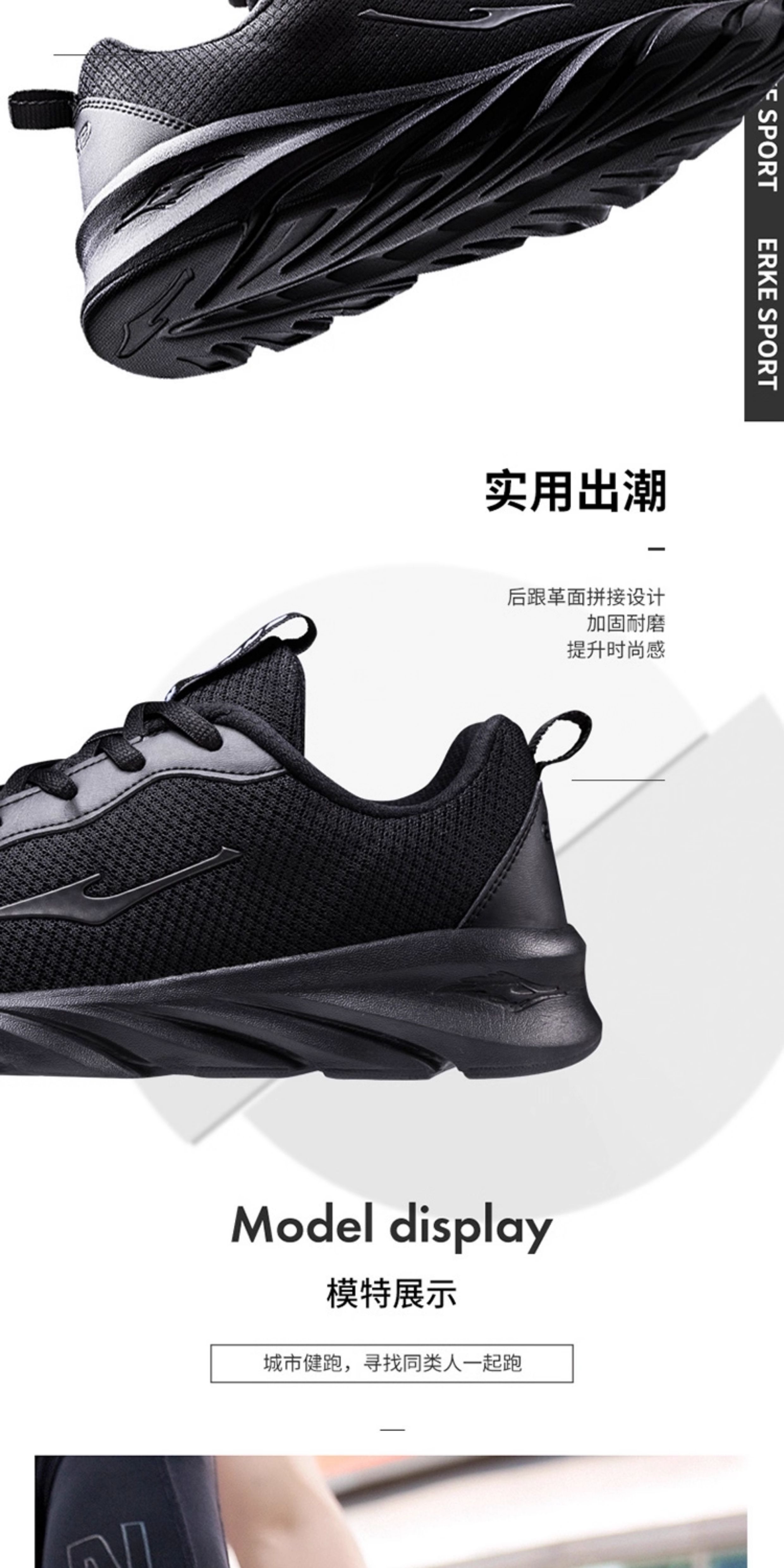 Hongxing Erke Men's Running Shoes, Autumn 2025 New Model, Mesh Breathable Black Casual Shoes, Men's Sports Shoes