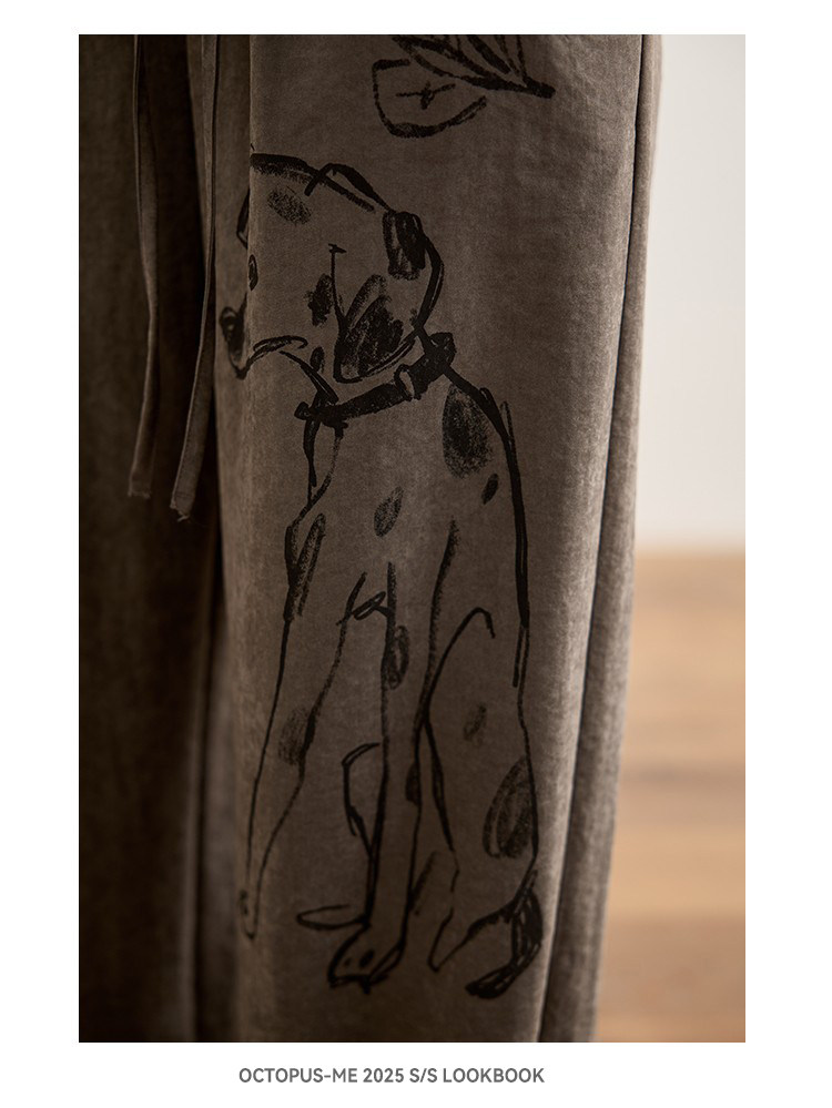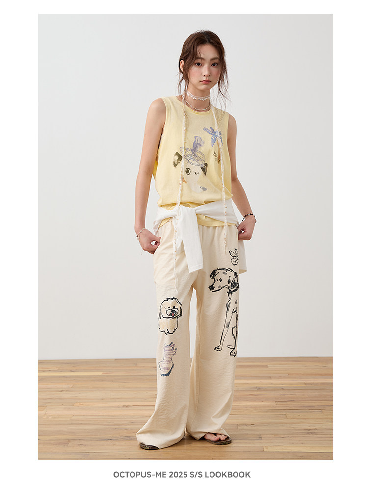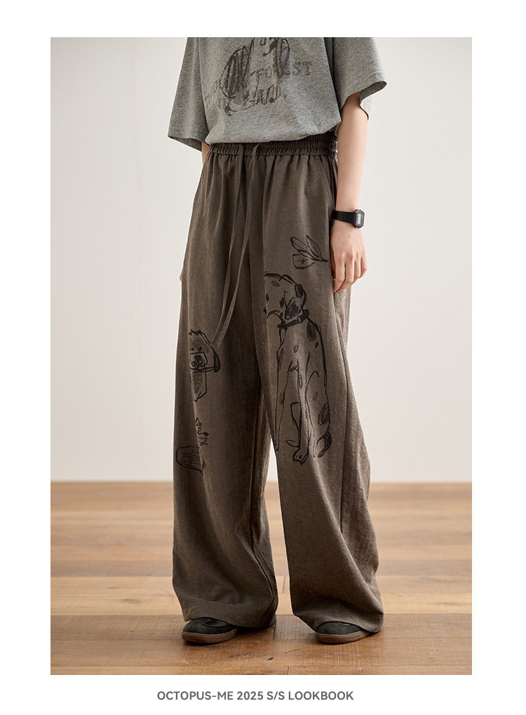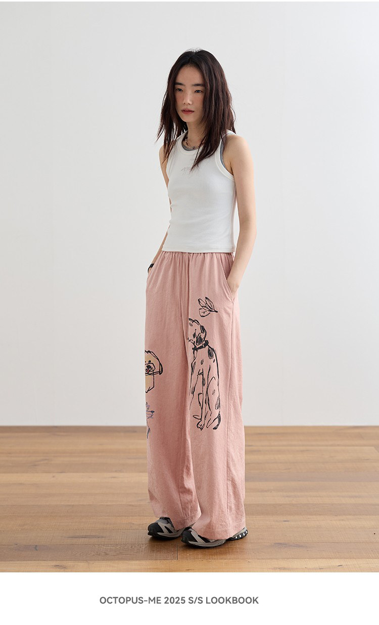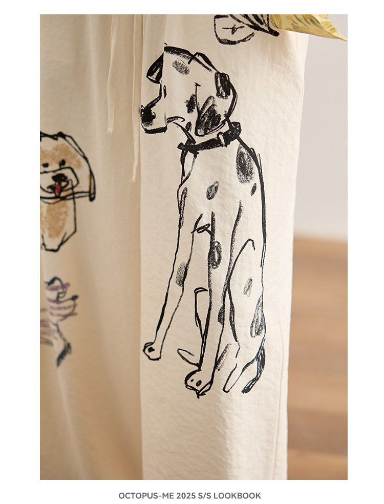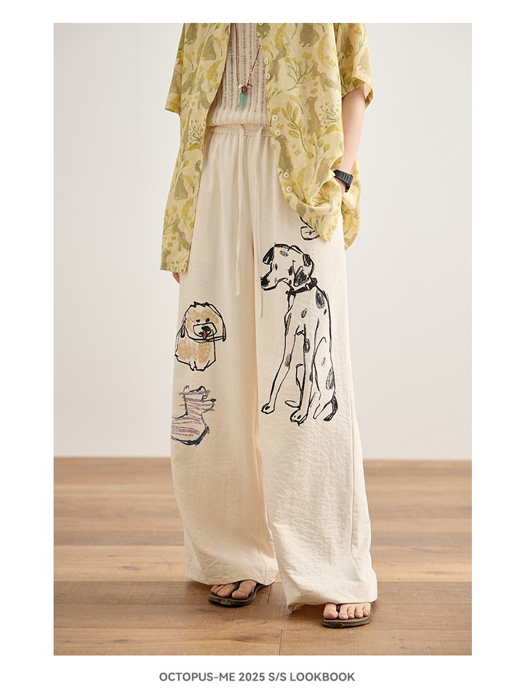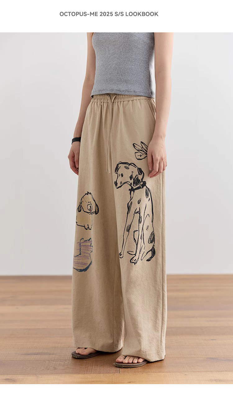 Octopusme Octopus Print Loose Casual Pants Yamamoto Pants White Lazy Relaxed Wide-Leg Pants Long Pants