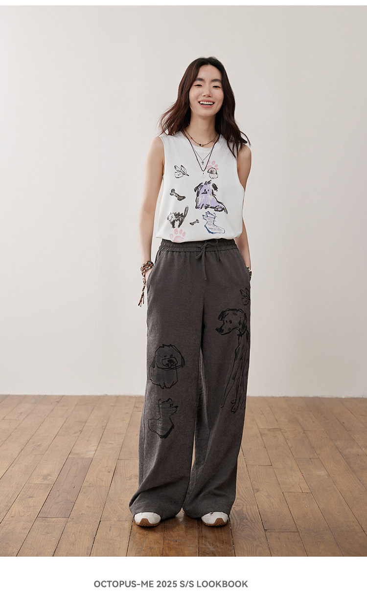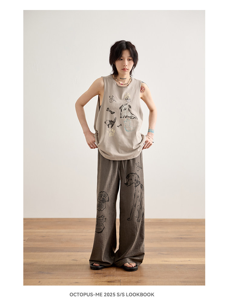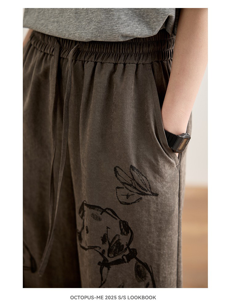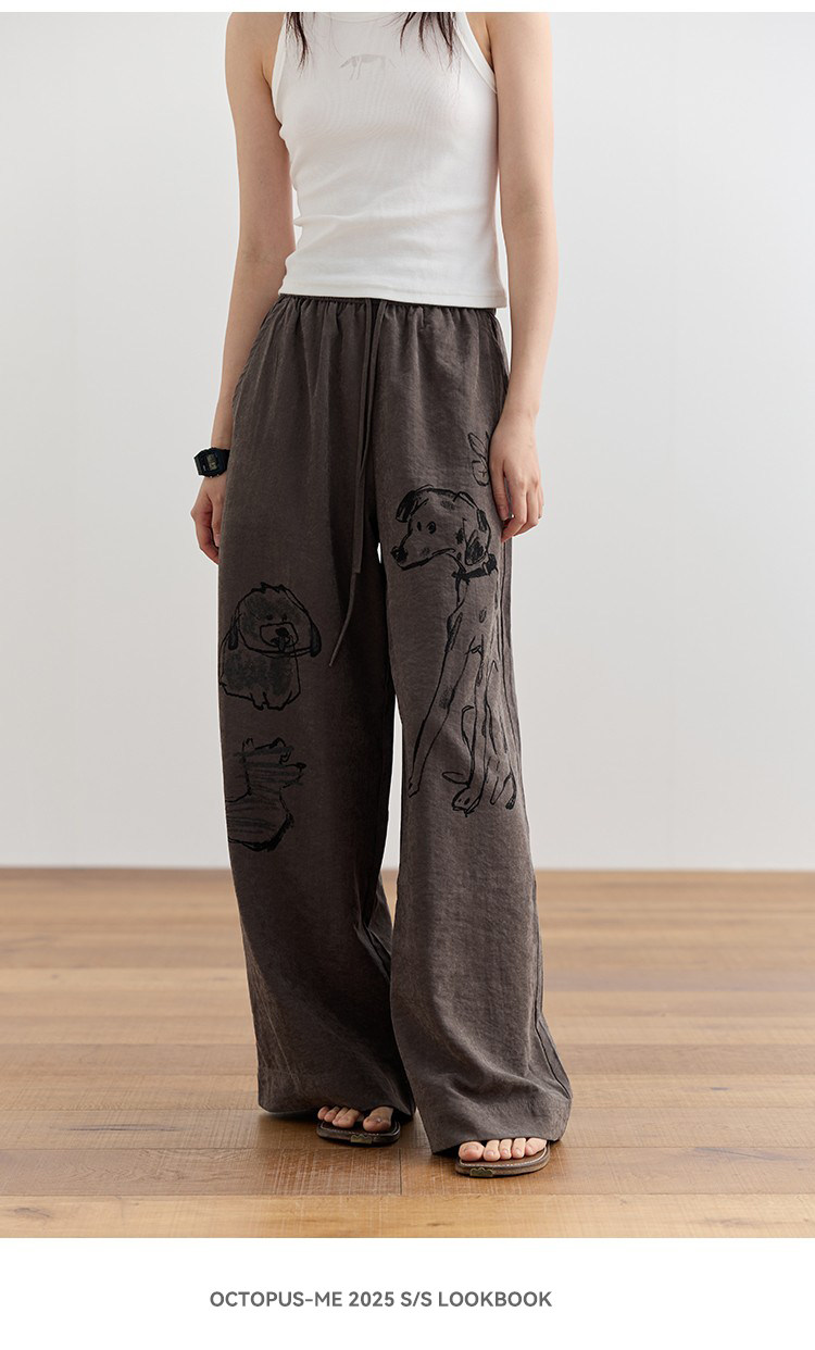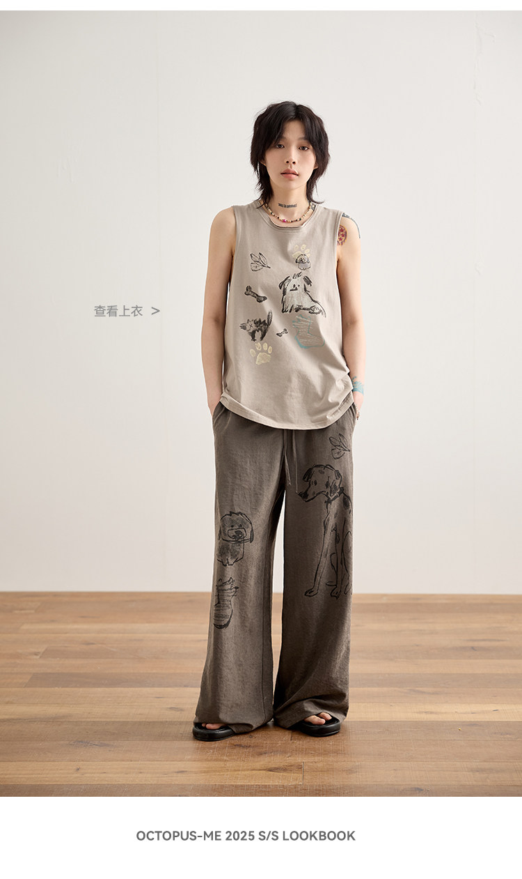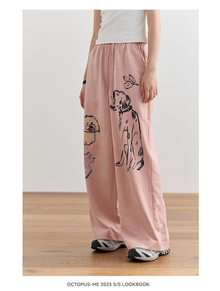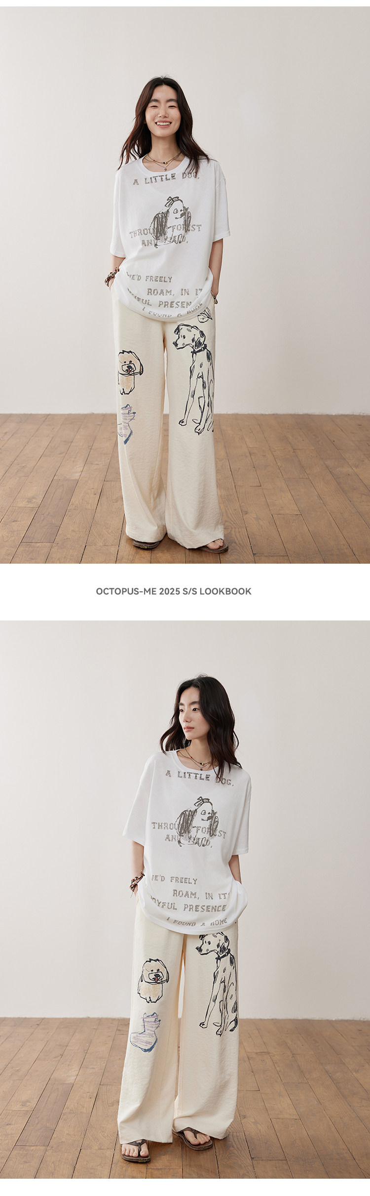 Octopusme Octopus Print Loose Casual Pants Yamamoto Pants White Lazy Relaxed Wide-Leg Pants Long Pants