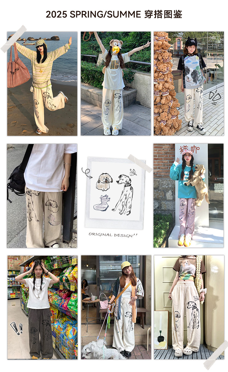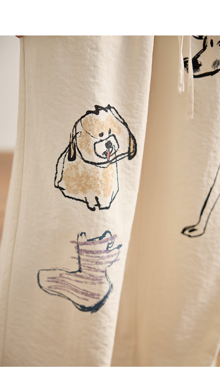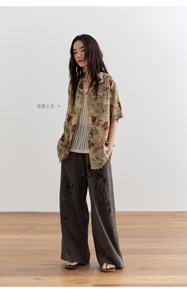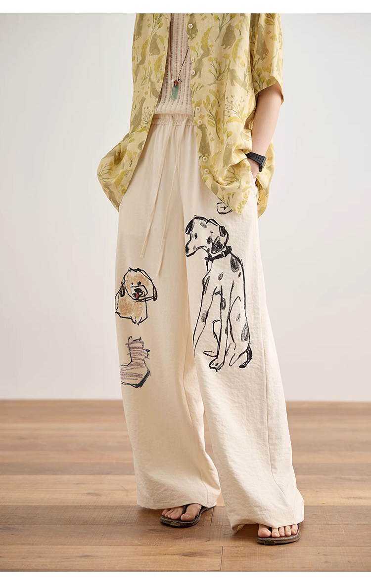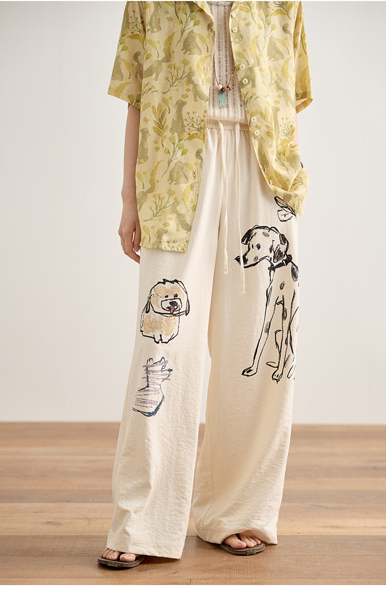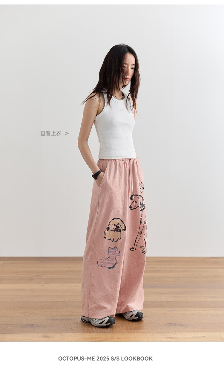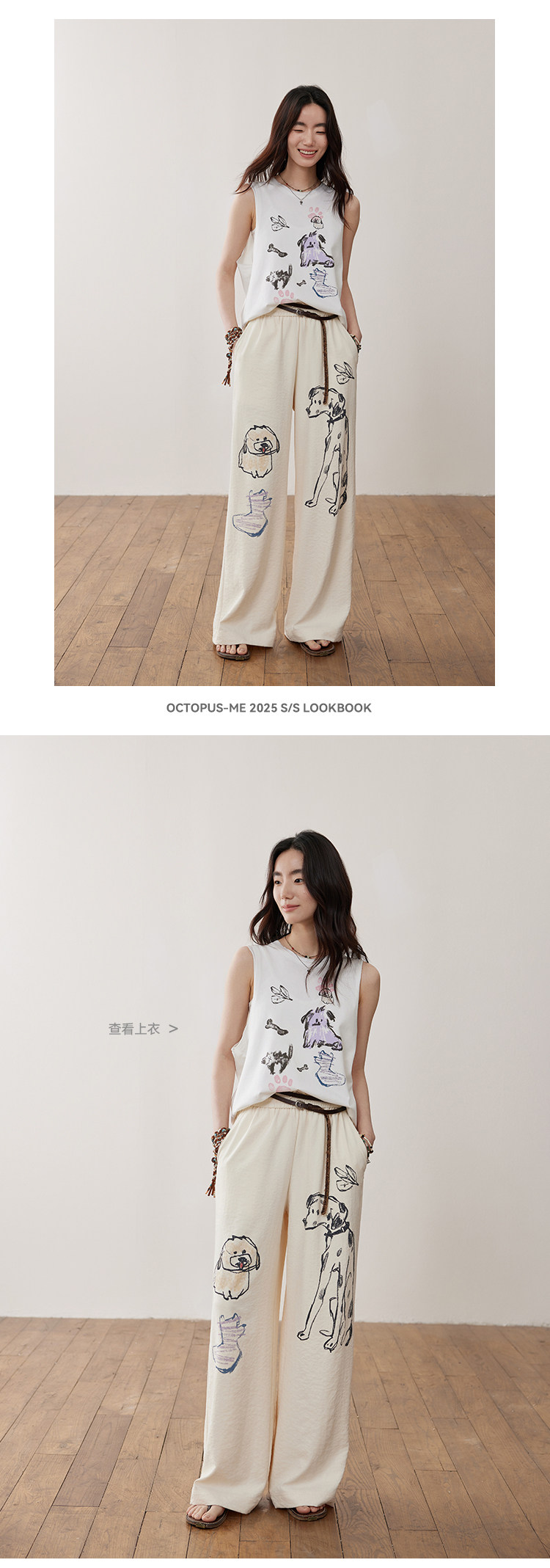 Octopusme Octopus Print Loose Casual Pants Yamamoto Pants White Lazy Relaxed Wide-Leg Pants Long Pants
