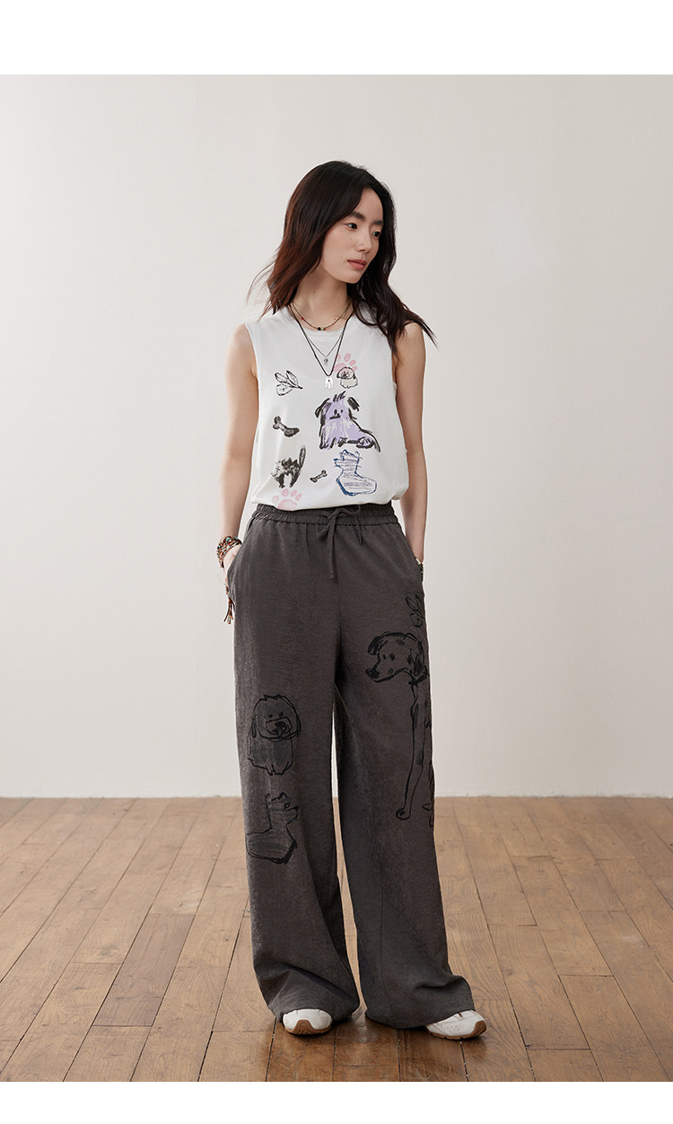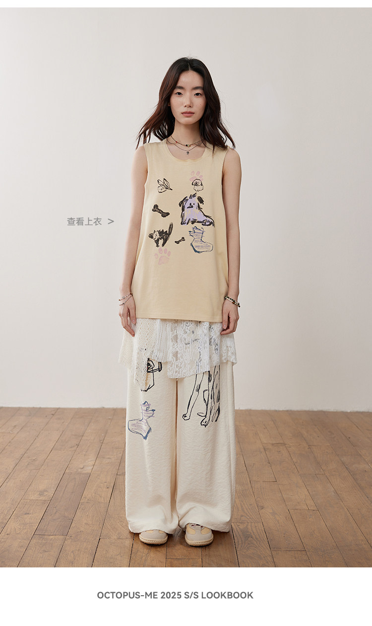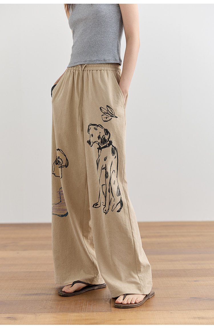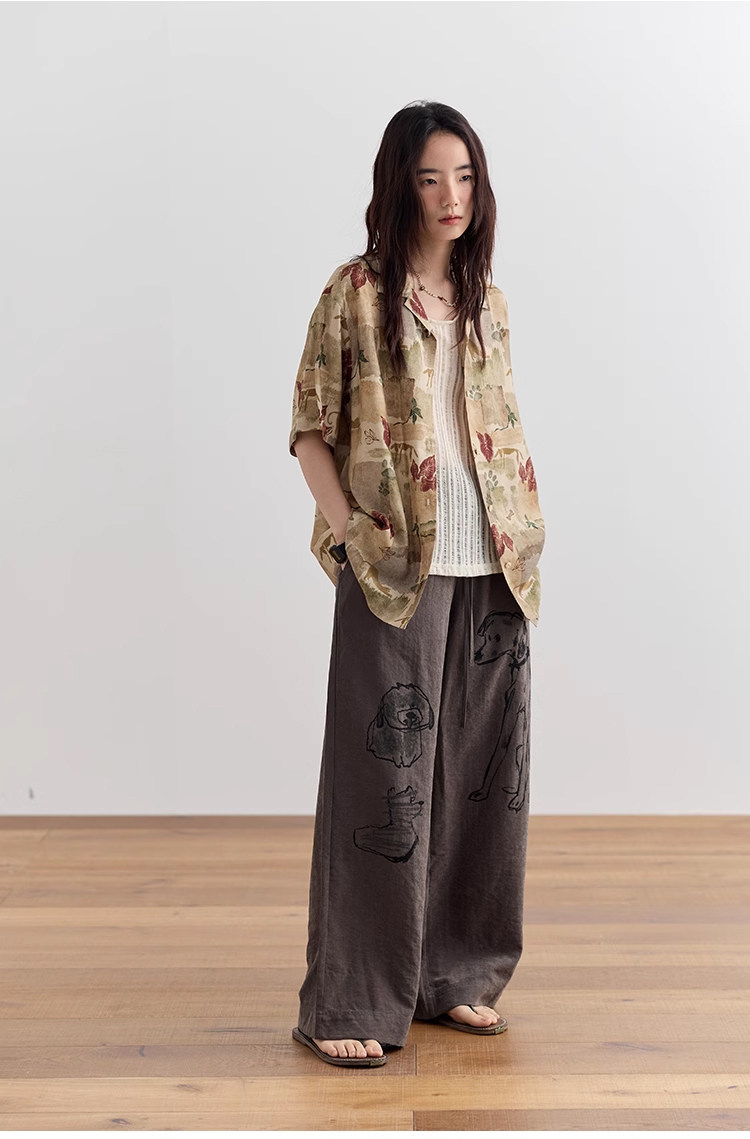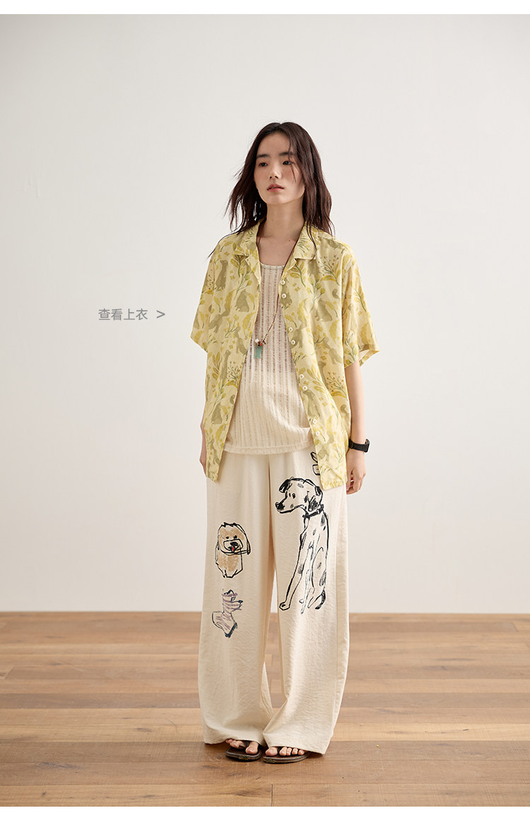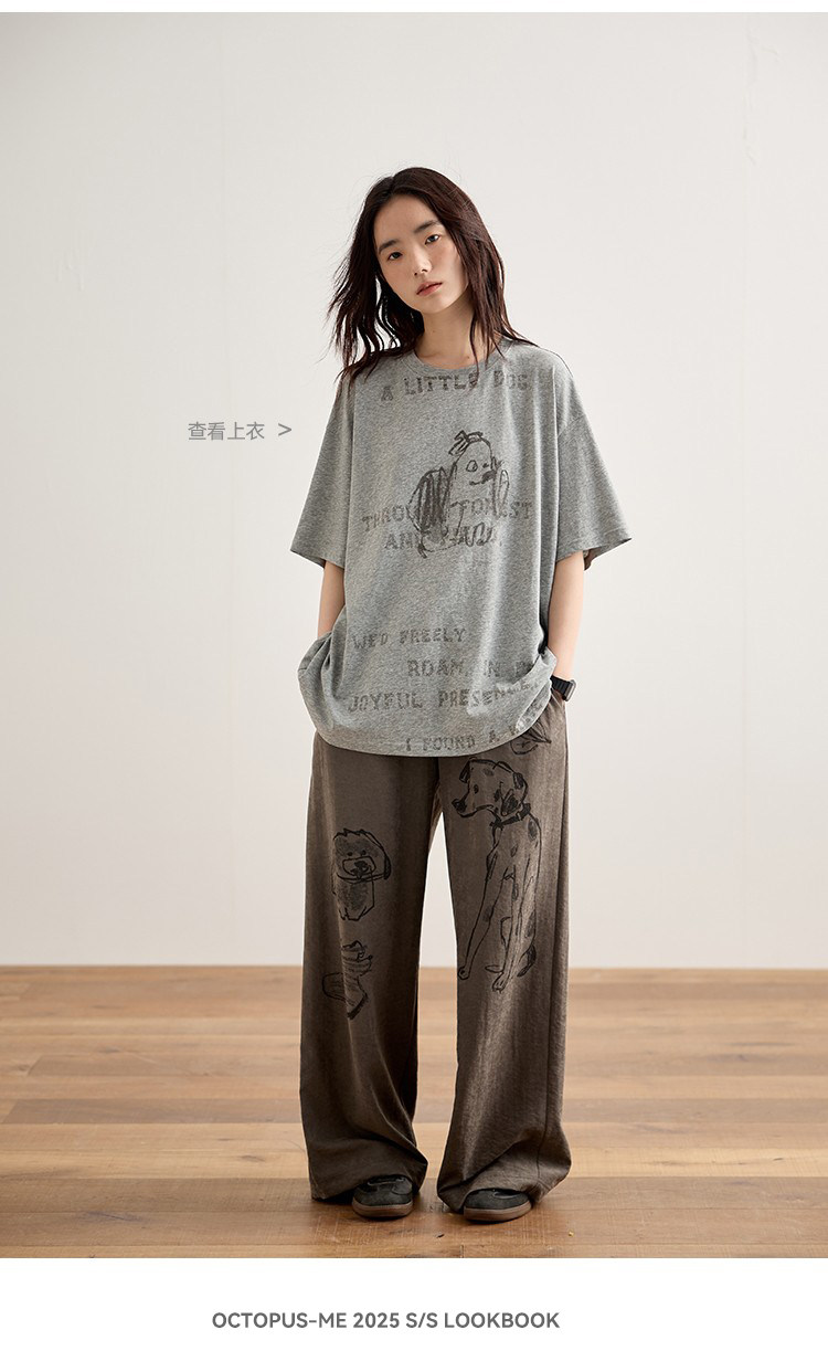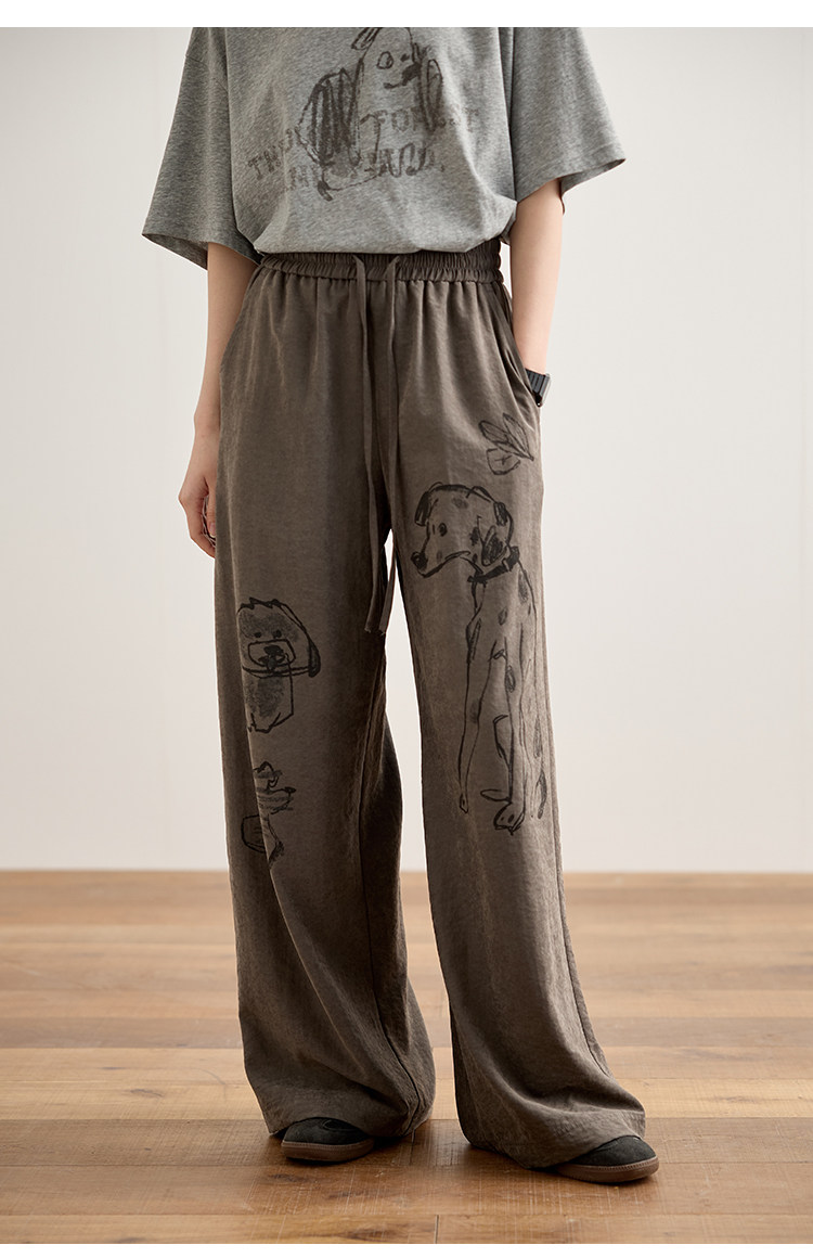 Octopusme Octopus Print Loose Casual Pants Yamamoto Pants White Lazy Relaxed Wide-Leg Pants Long Pants