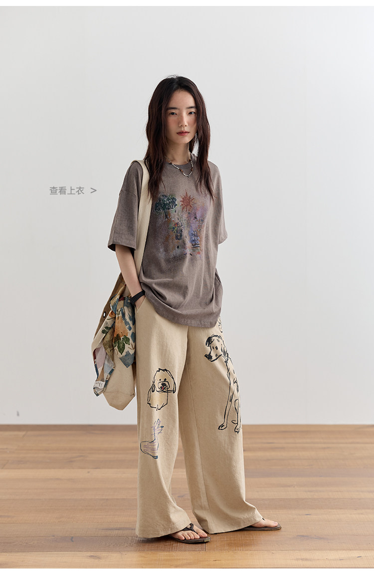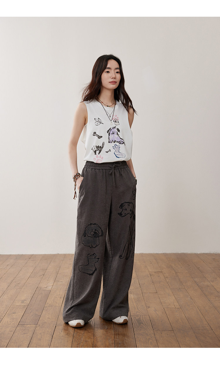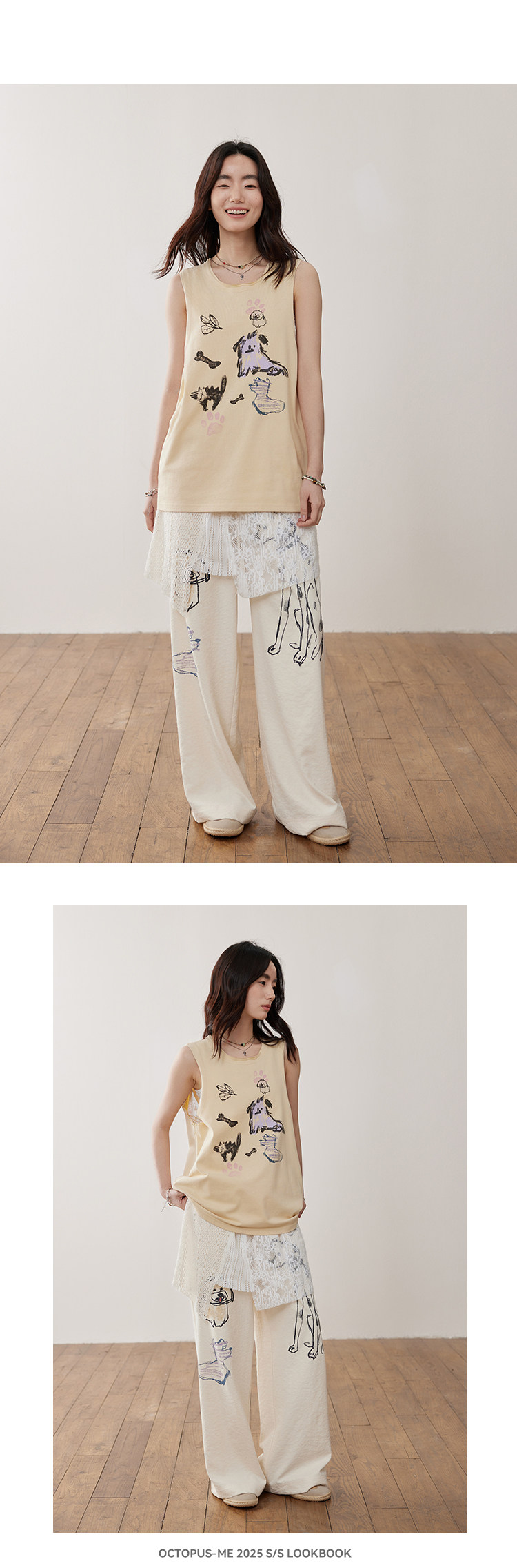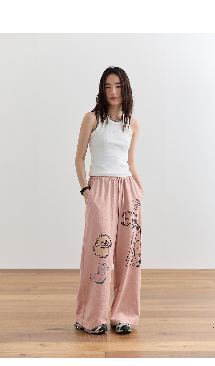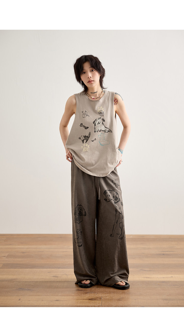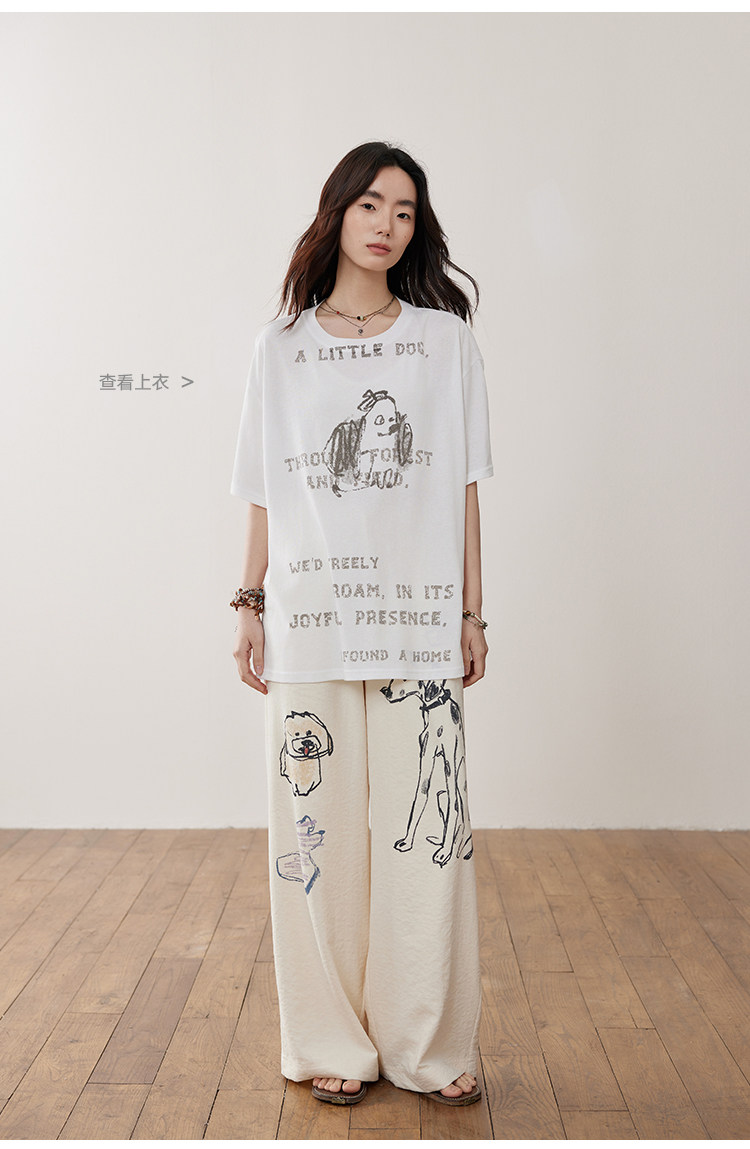 Octopusme Octopus Print Loose Casual Pants Yamamoto Pants White Lazy Relaxed Wide-Leg Pants Long Pants