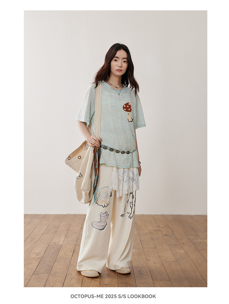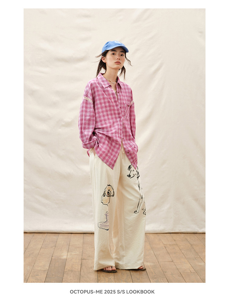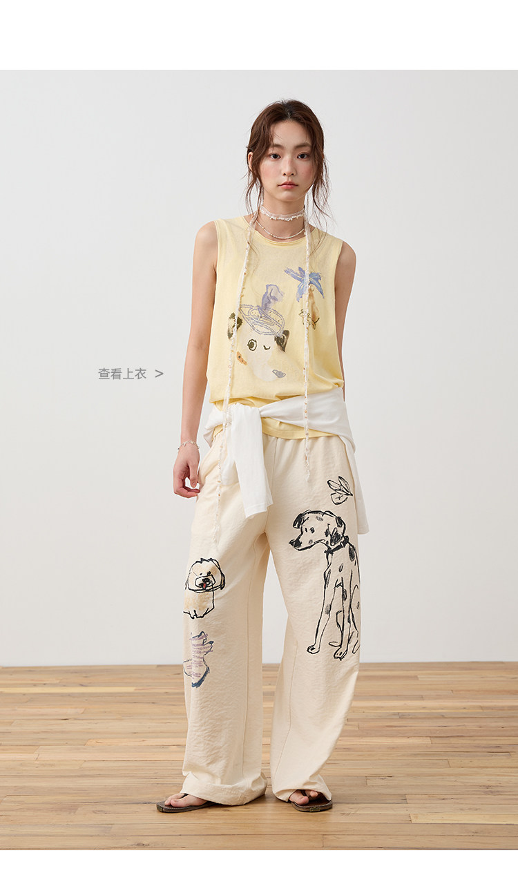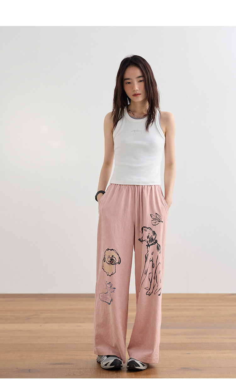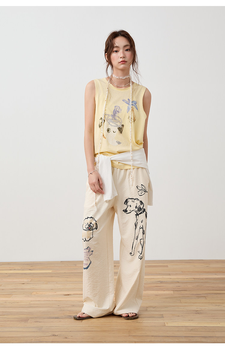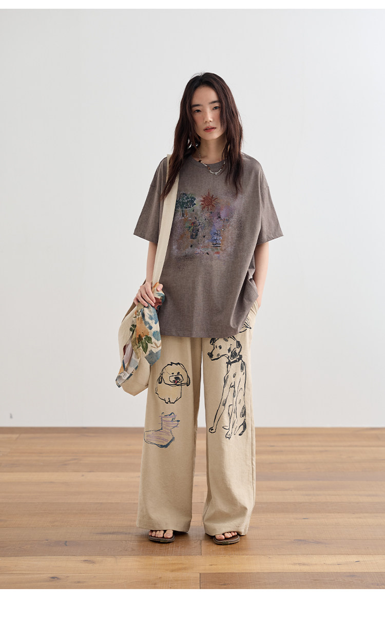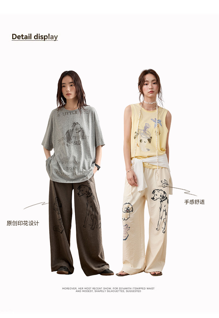 Octopusme Octopus Print Loose Casual Pants Yamamoto Pants White Lazy Relaxed Wide-Leg Pants Long Pants