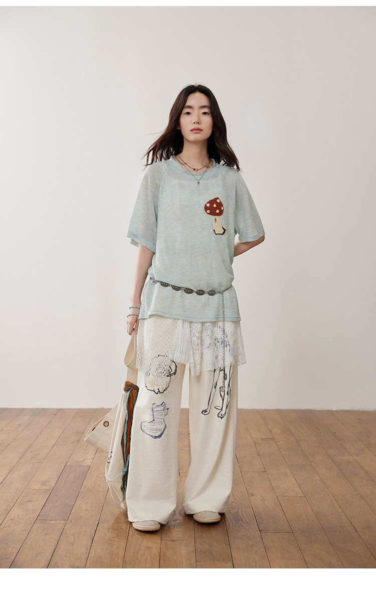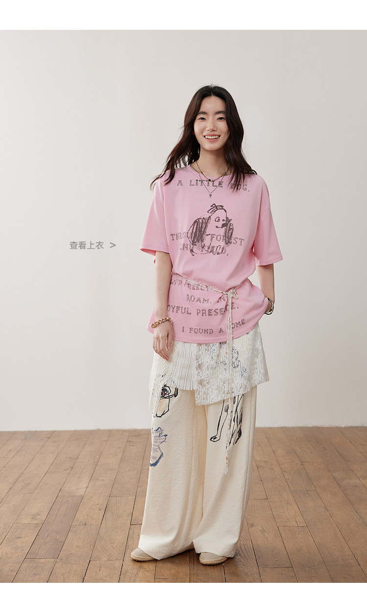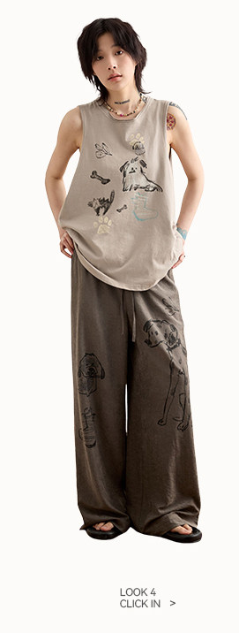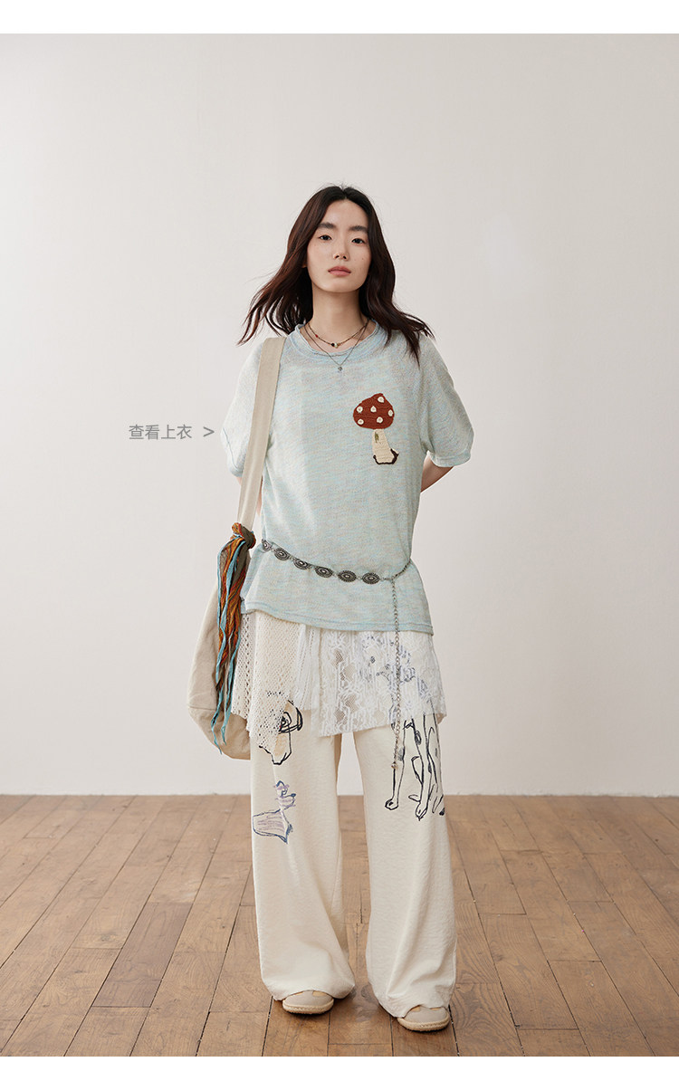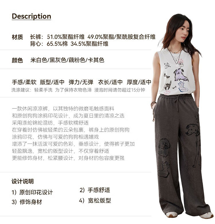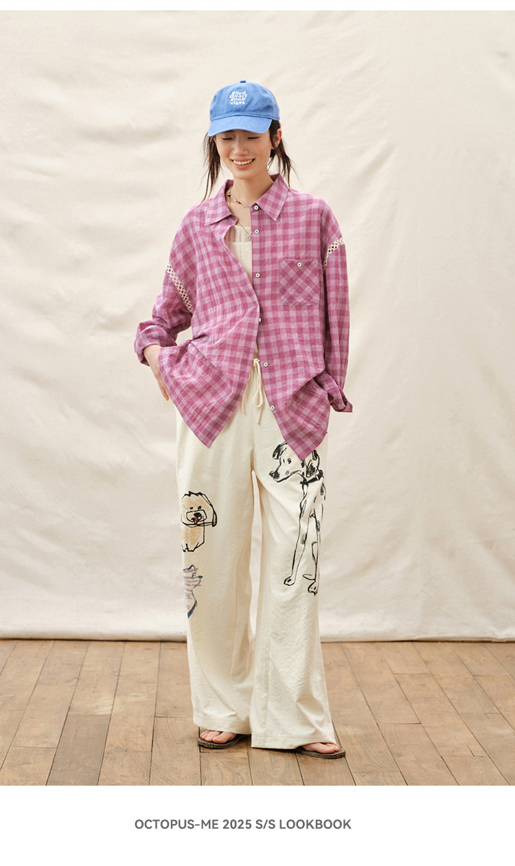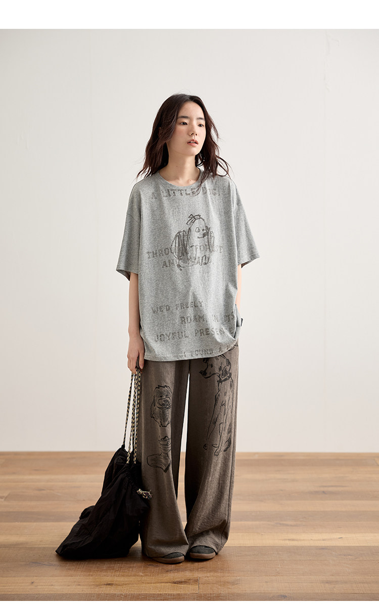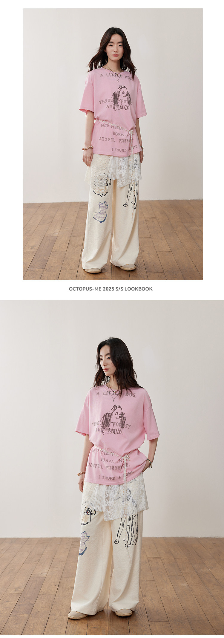 Octopusme Octopus Print Loose Casual Pants Yamamoto Pants White Lazy Relaxed Wide-Leg Pants Long Pants