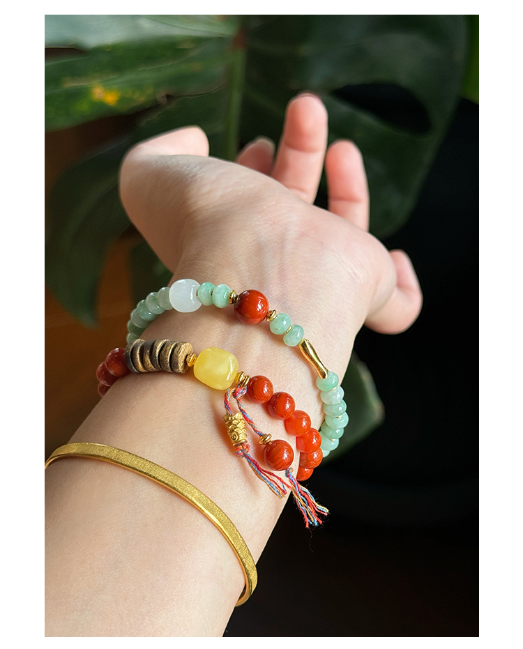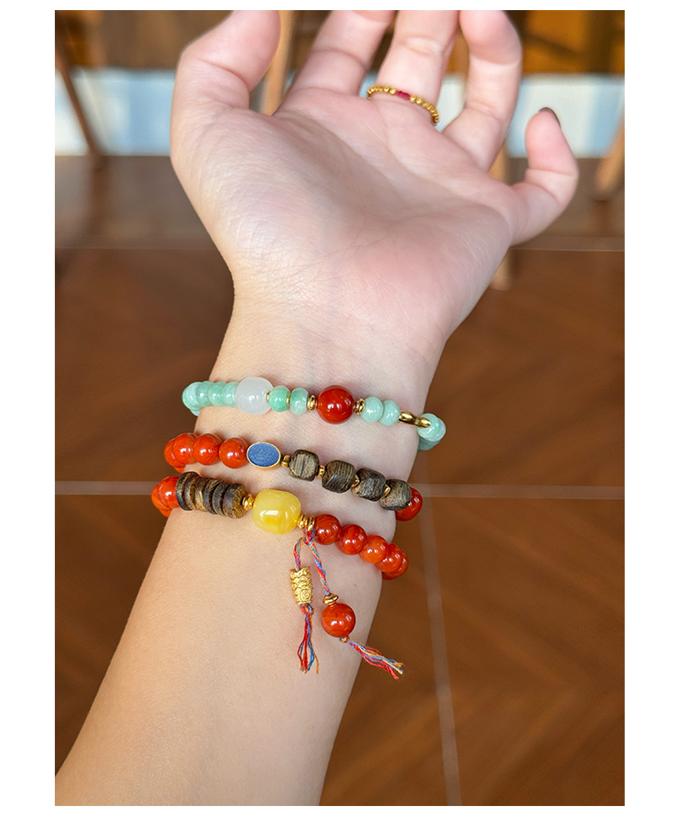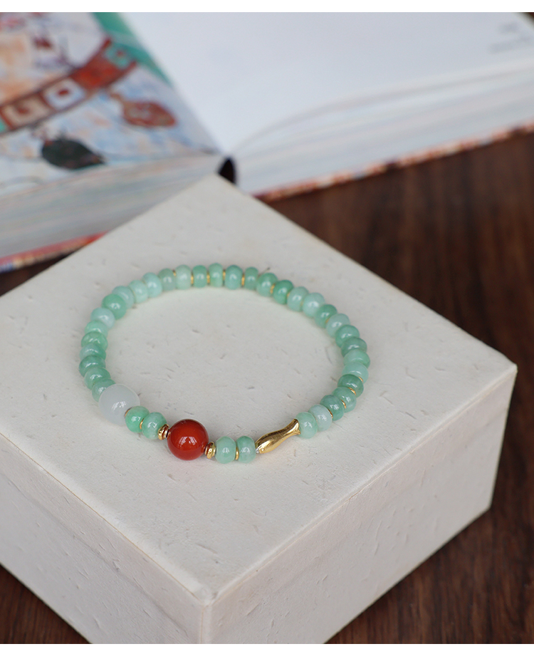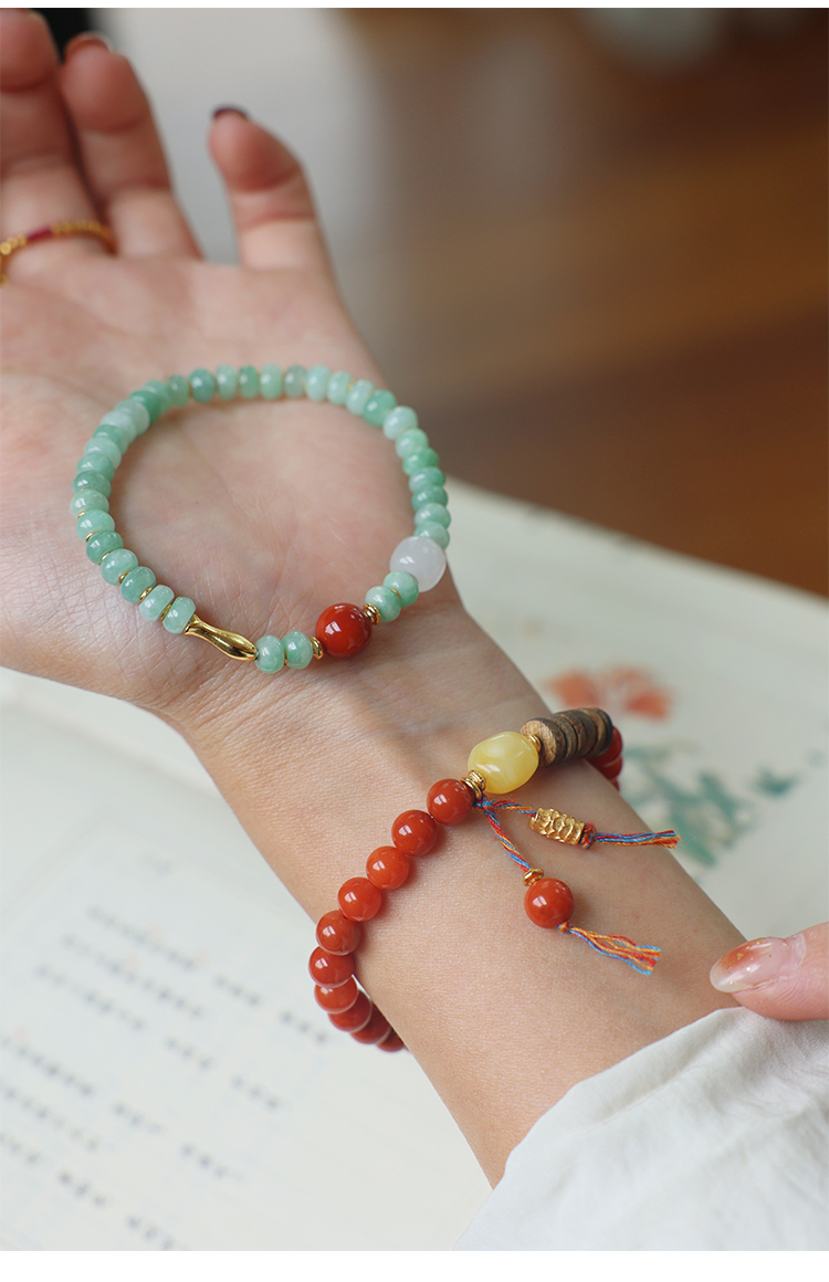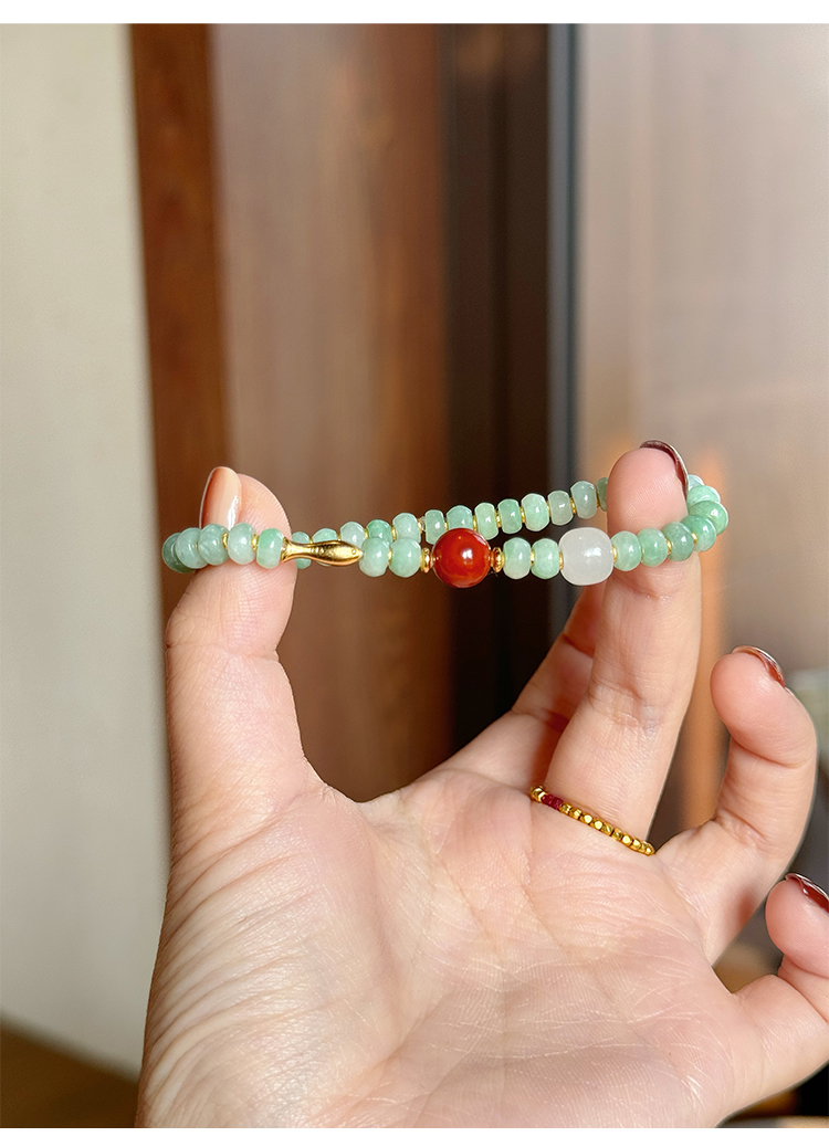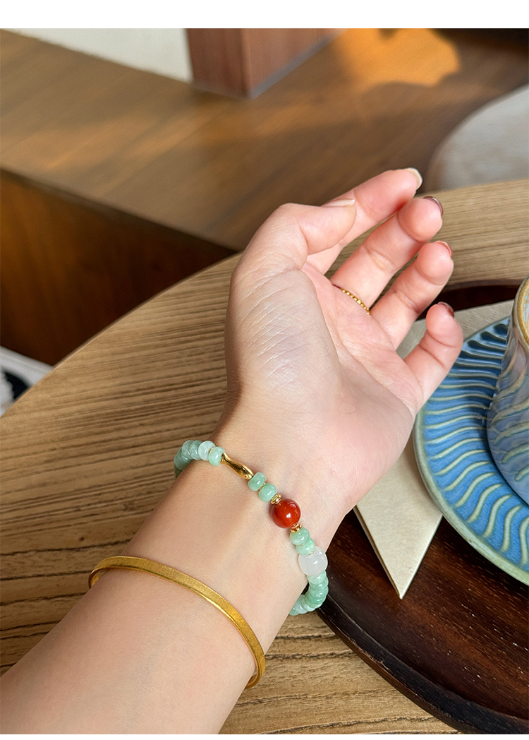 Feilengcui Original New Chinese Style Natural Jade and Southern Red Agate Bracelet New Year Lucky Gift National Style Bracelet