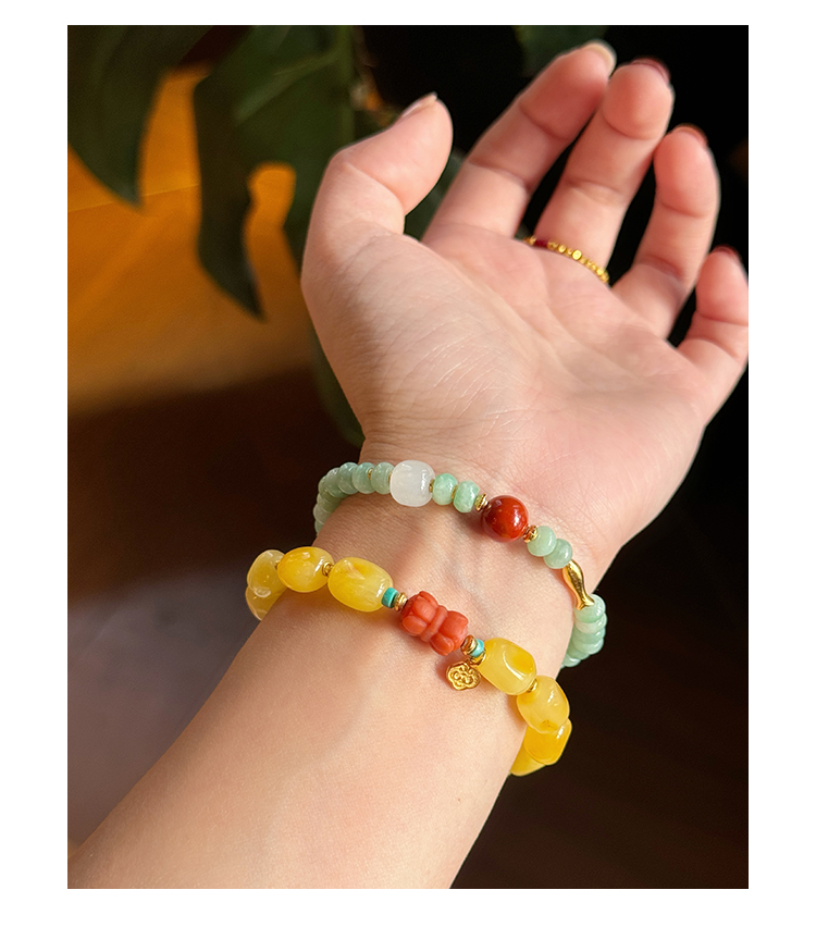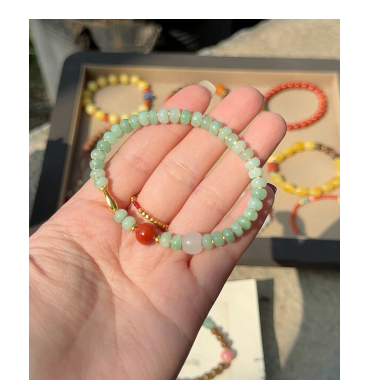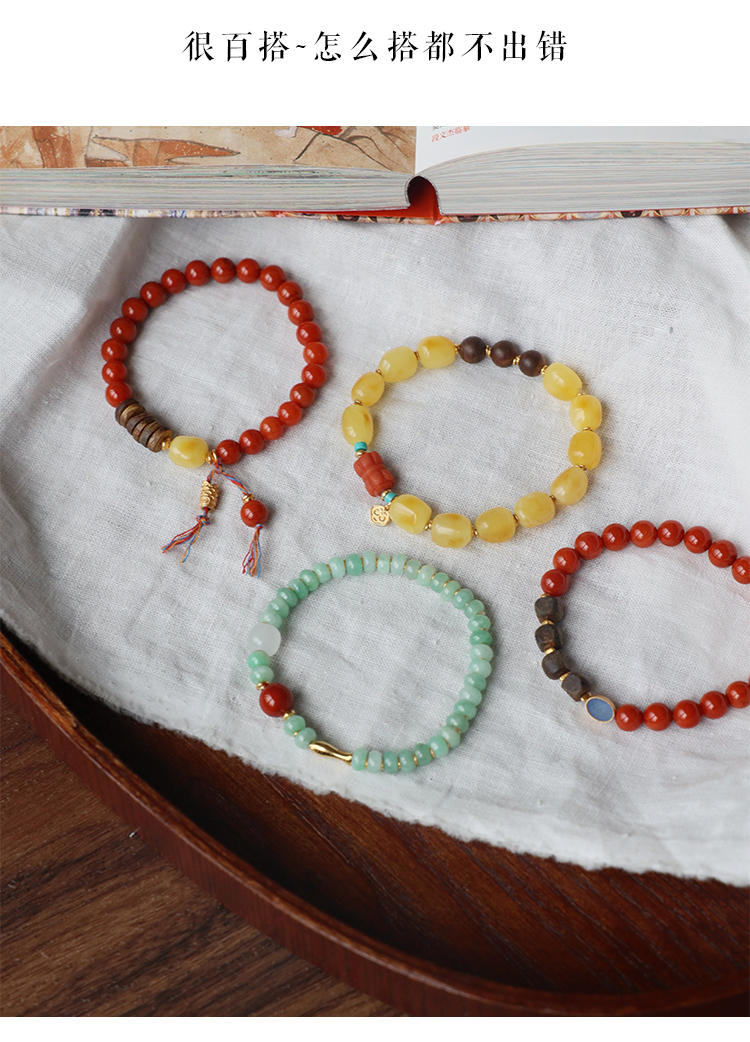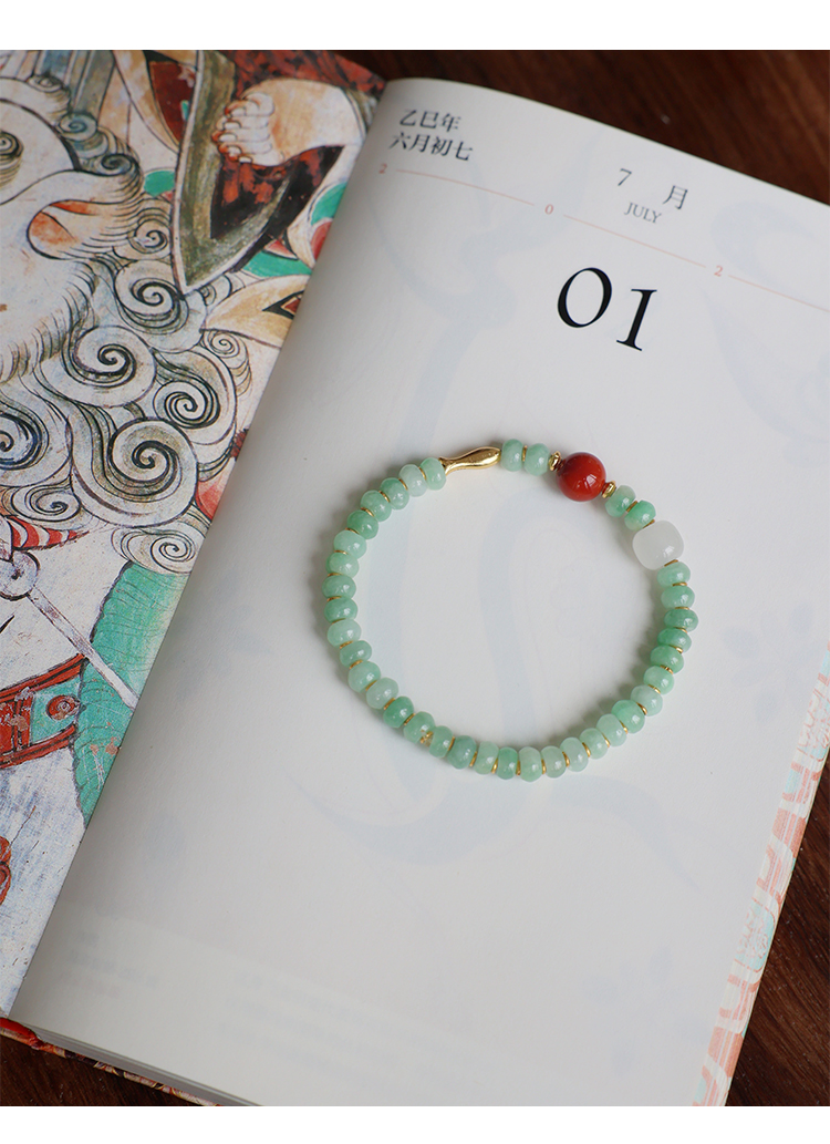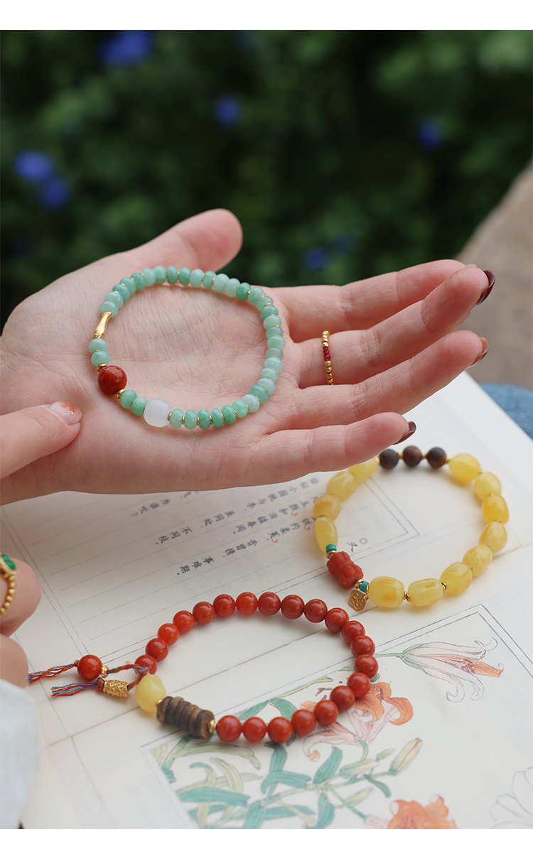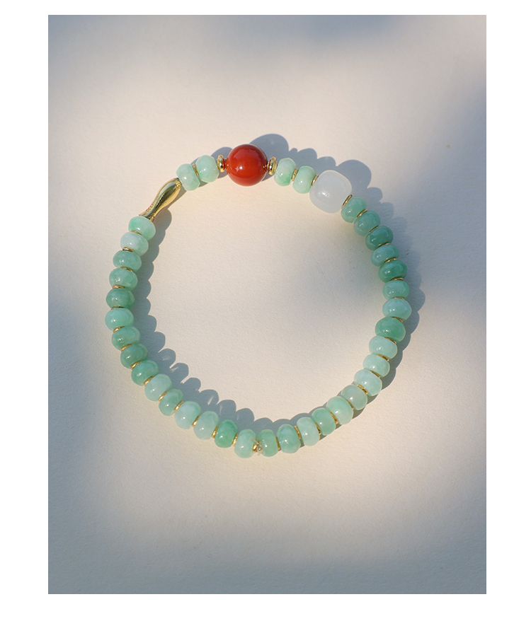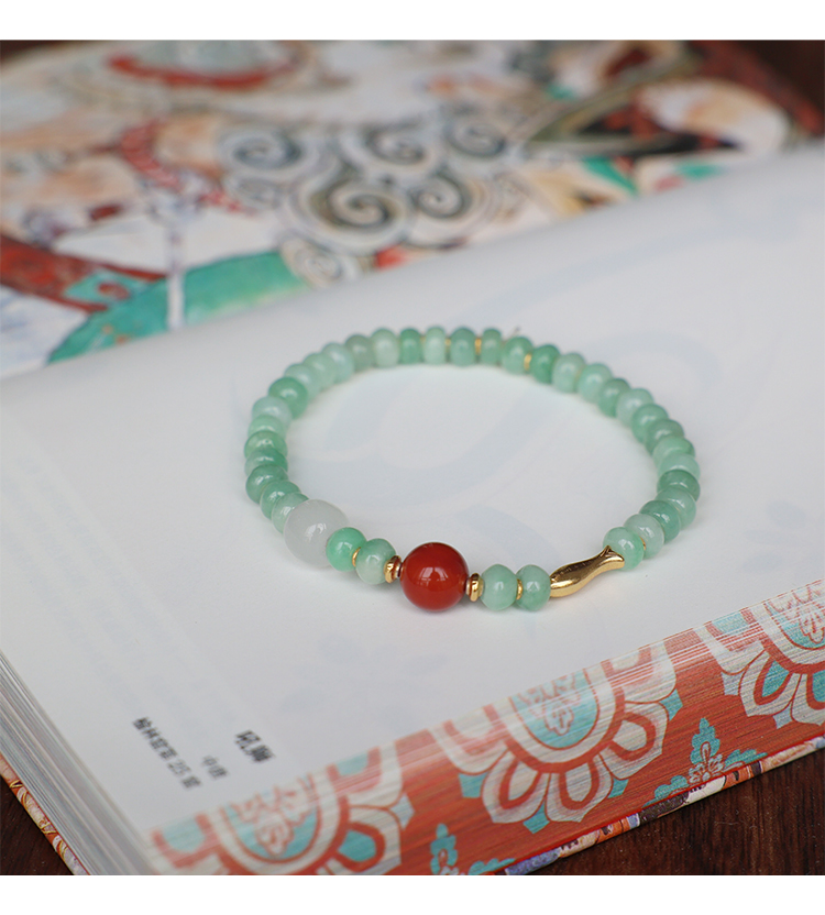 Feilengcui Original New Chinese Style Natural Jade and Southern Red Agate Bracelet New Year Lucky Gift National Style Bracelet
