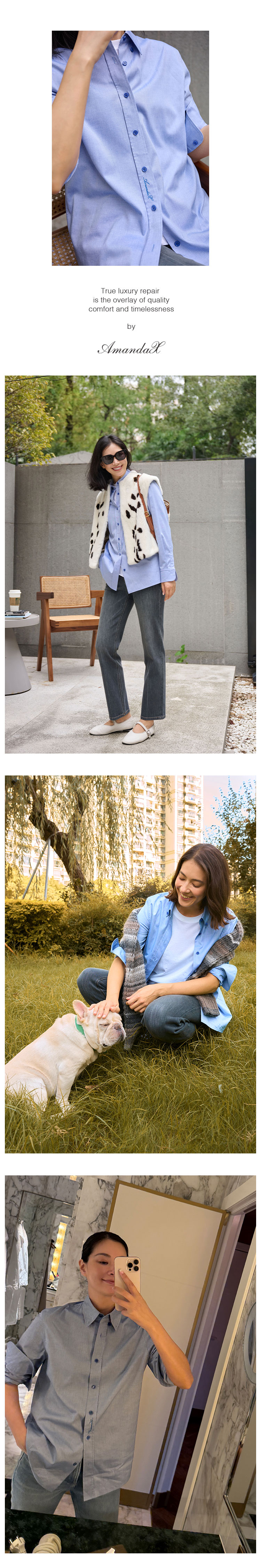 Amandax "Elegant Intellectuals" Series 100% High-Count Cotton Stand-Up Collar Shirt Top