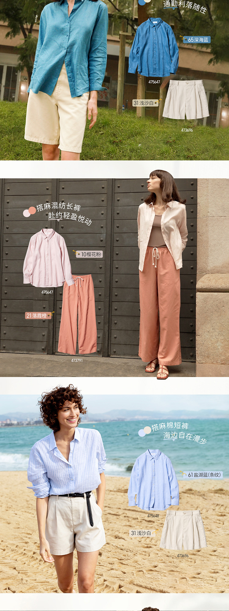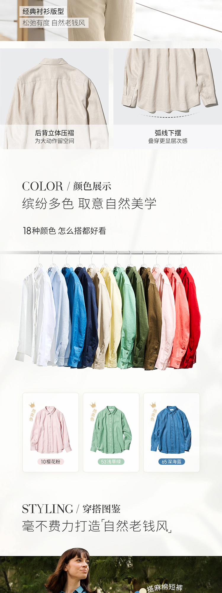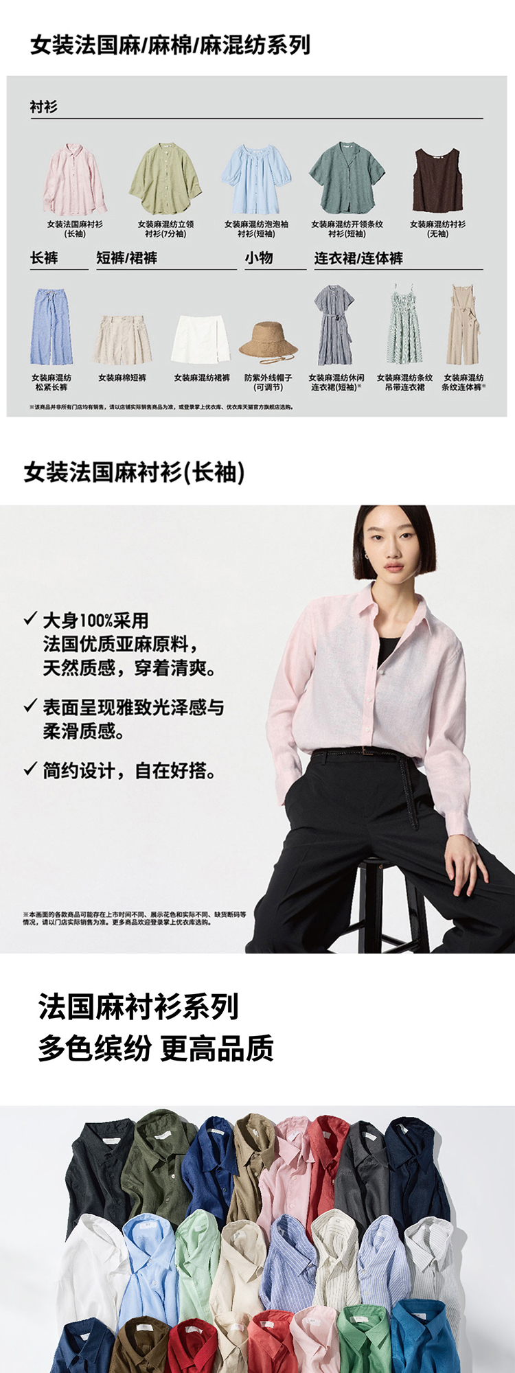 Uniqlo Women's French Linen Shirt Long-Sleeved Shirt Top Air-Conditioning Shirt Thin Jacket 475647