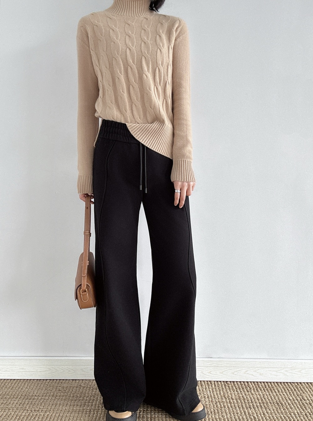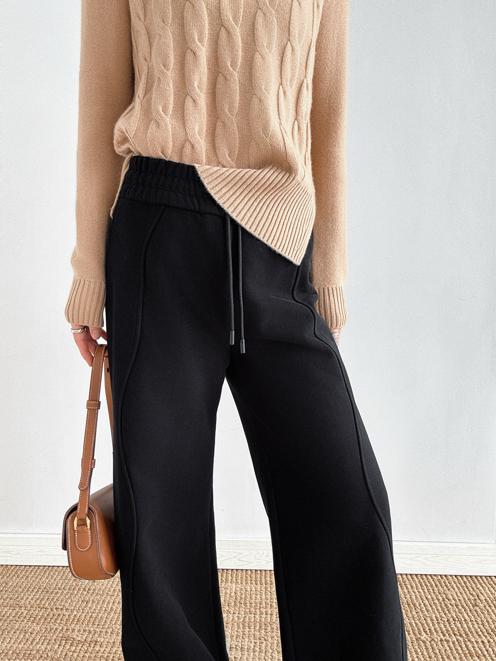 Exclusive Luxury Brand|Save 2K|Fleece-Lined Three-Dimensional Structure Slimming and Height-Enhancing Flared Sweatpants|Black Sweatpants