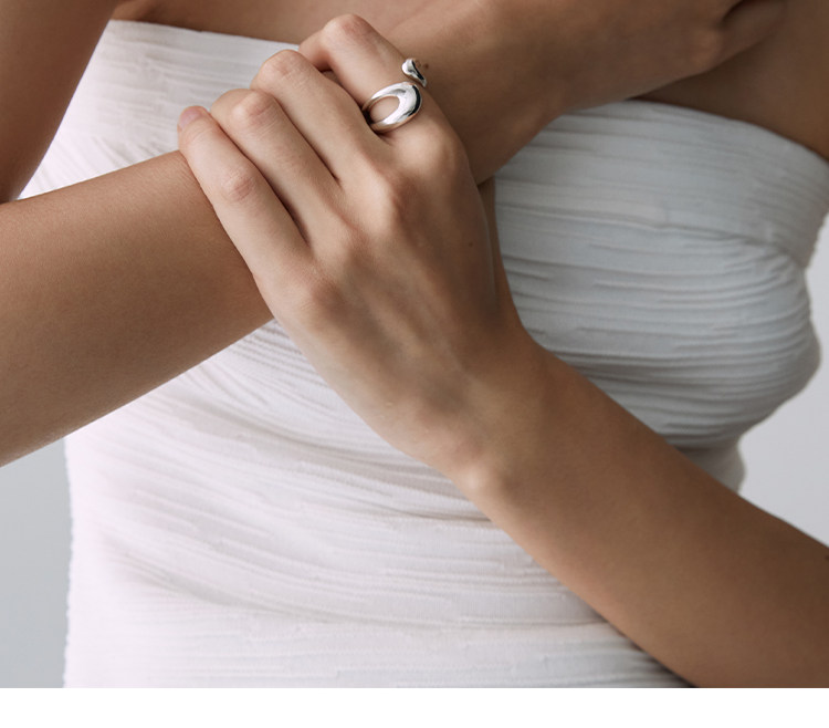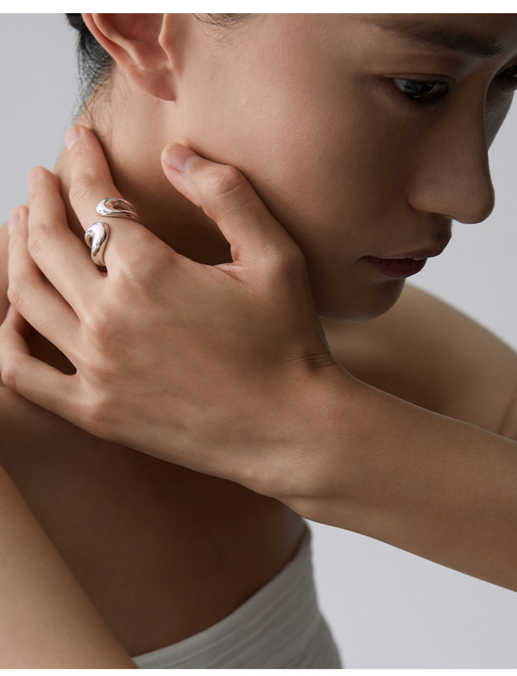 Ewest Niche Double-Layer Design Sterling Silver Ring for Women, Plain Open-Ended Tail Ring, Pinky Ring, Index Finger Ring, Middle Finger Ring