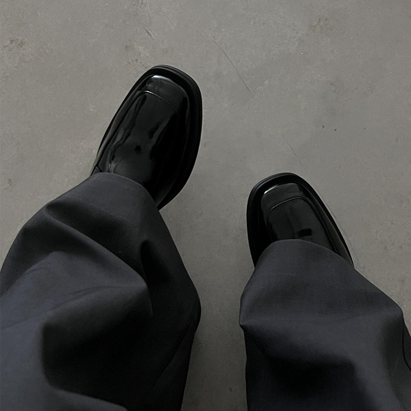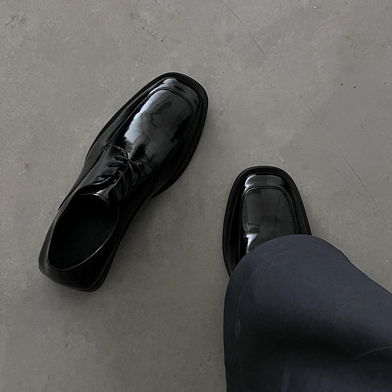 Derby Shoes Square Toe Leather Shoes Men's Black Thick-Soled Height-Increasing Casual British Style Commuting Cleanfit Shoes Men