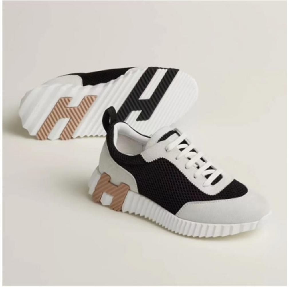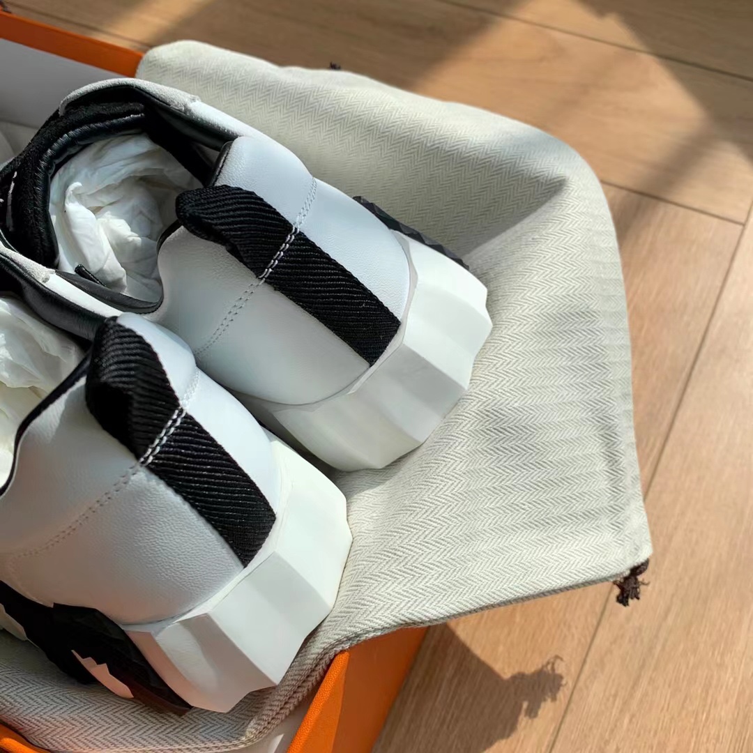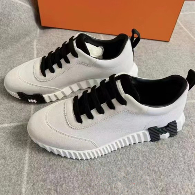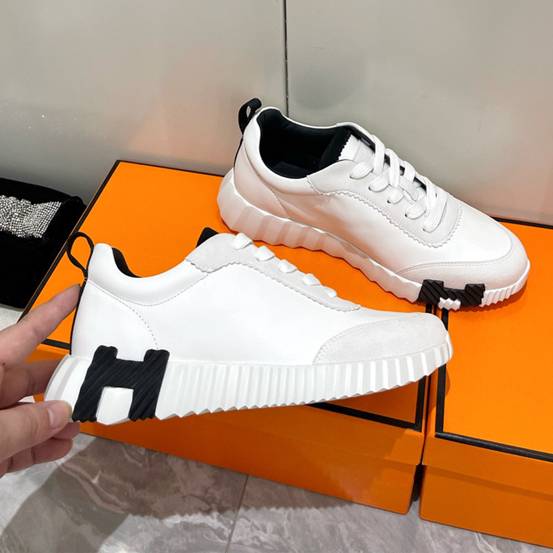 New H Brand Casual Sneakers for Women, Genuine Leather White Shoes, Thick-Soled Couple Panda Shoes, Flat Breathable H Running Shoes for Men